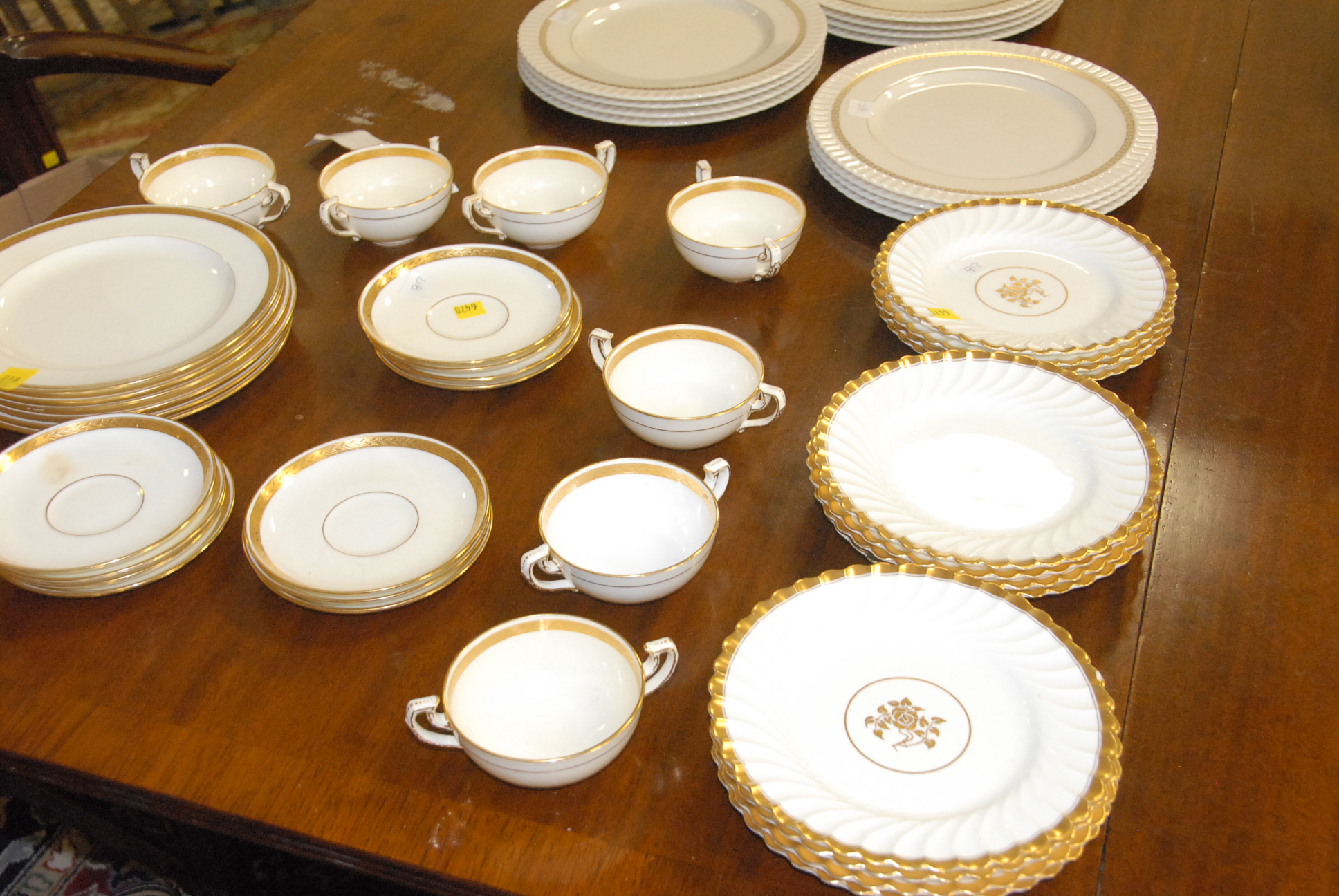 Group of Minton plates, cups, and saucers along with dessert plates.
