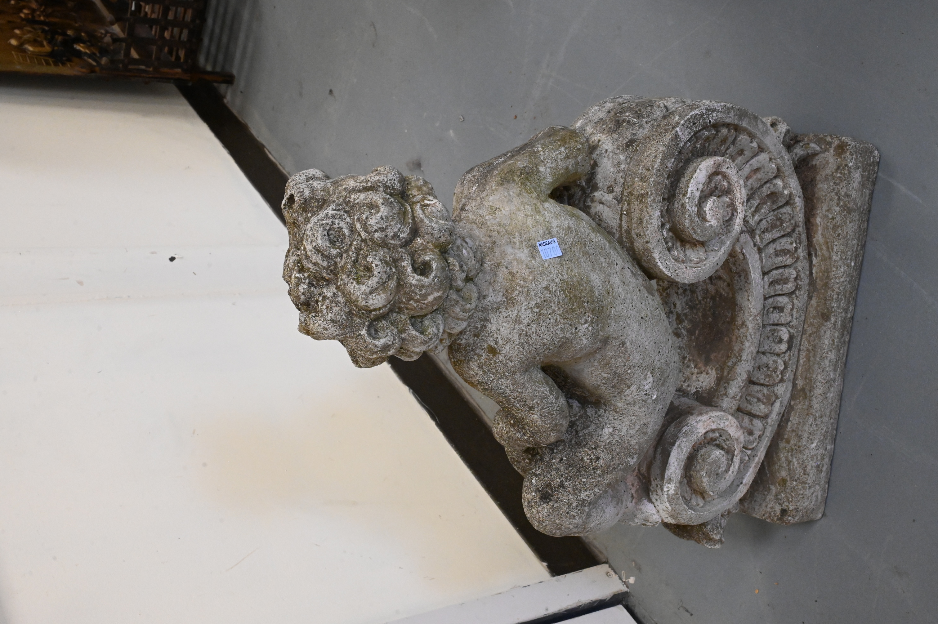 Lot 218: Pair of Cast Stone Allegorical Garden Putti