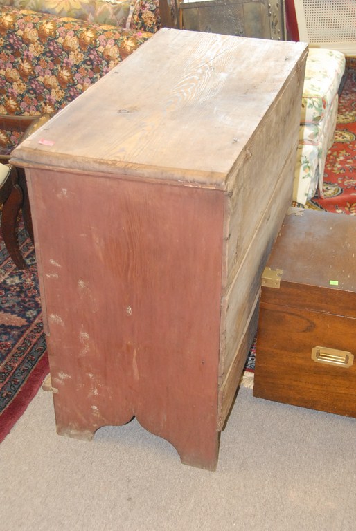 Primitive blanket chest with lift top and one drawer retaining some red paint.