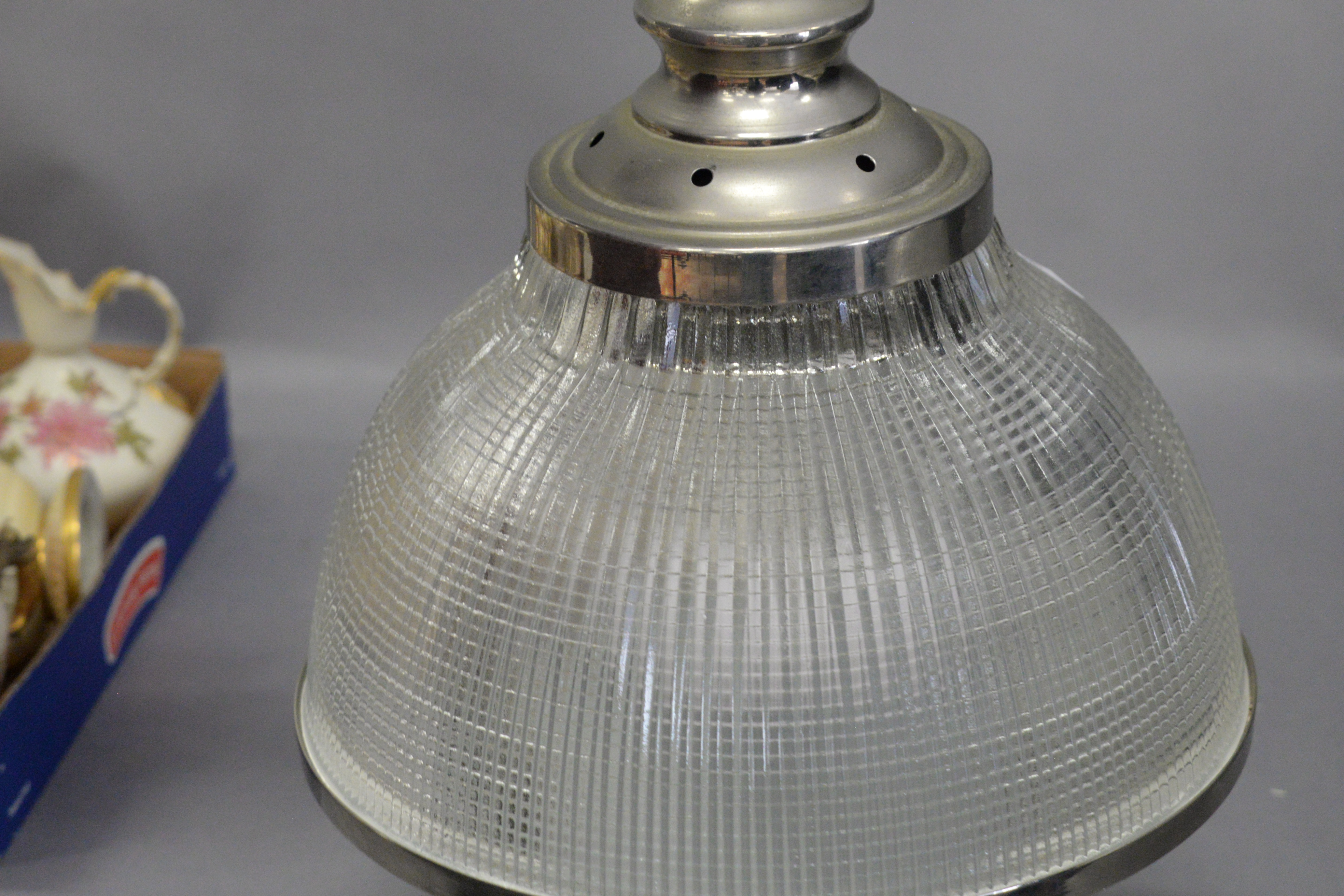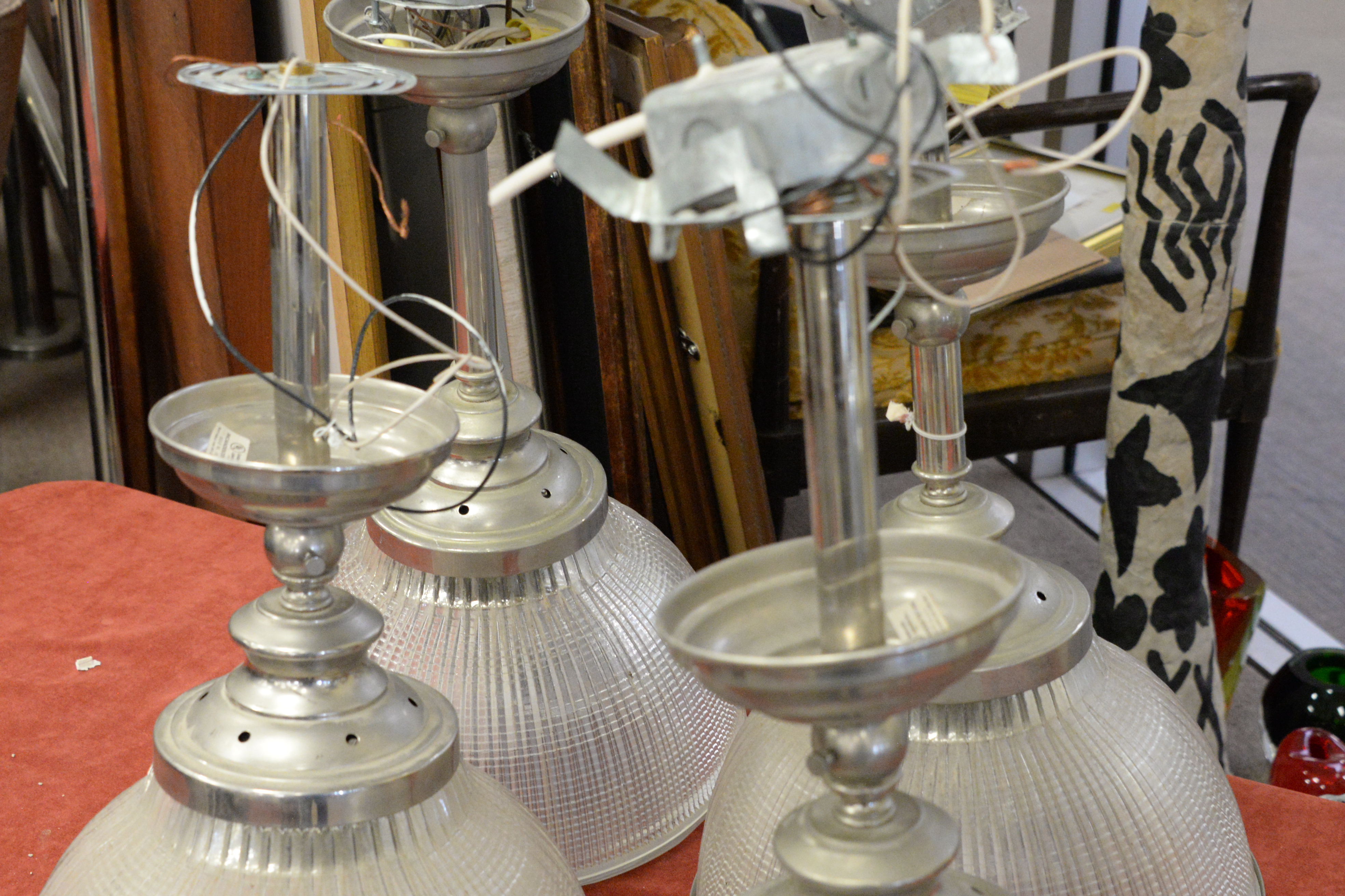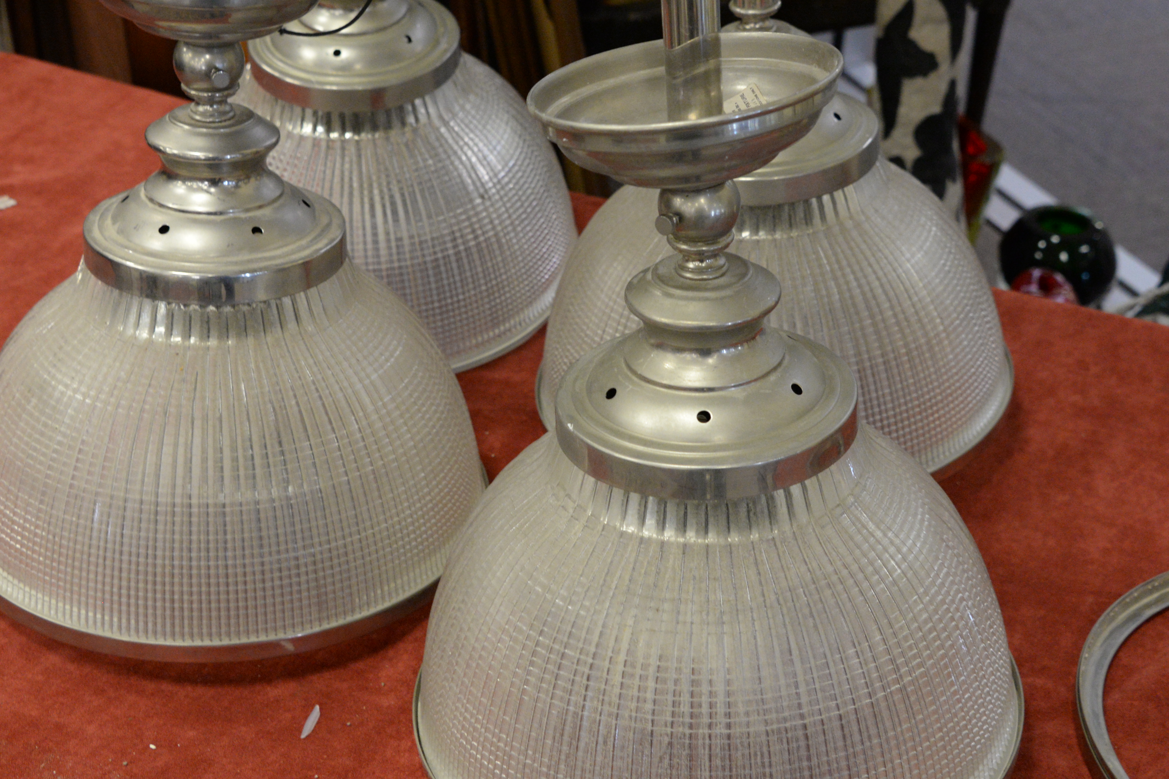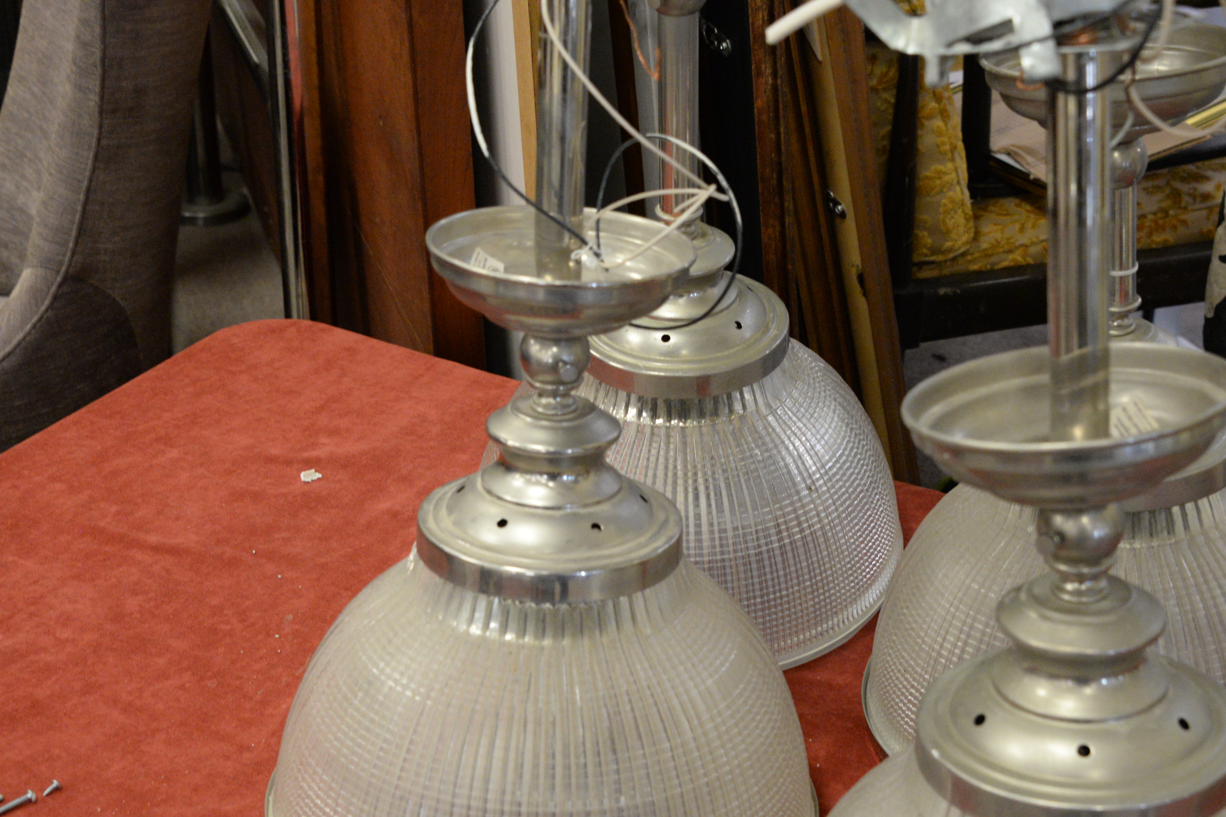 Lot 218: Set of Six Contemporary Industrial Style Chrome and Glass Ceiling Lights