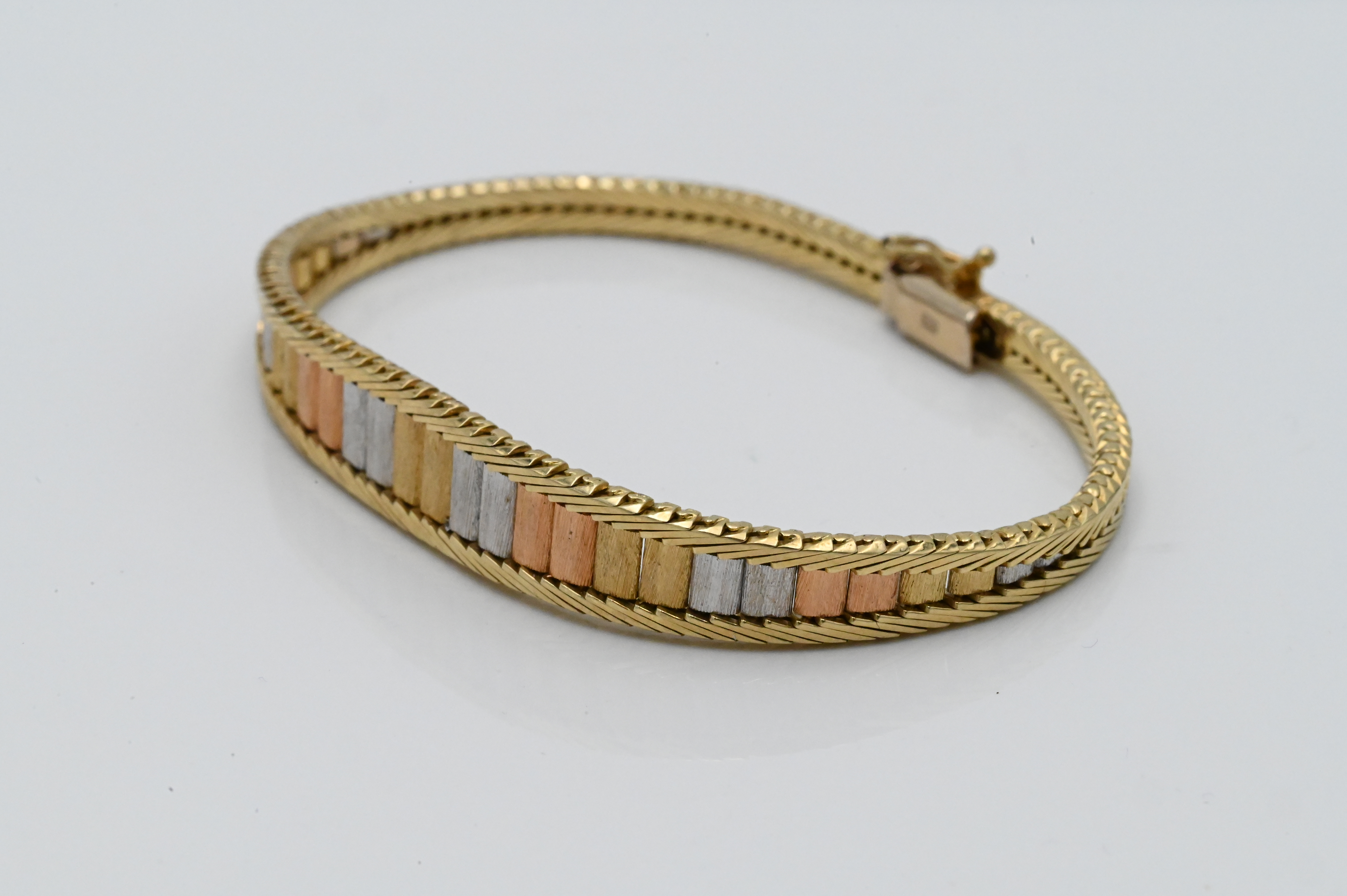Lot 219: 14 Karat Multi Color Gold Bracelet