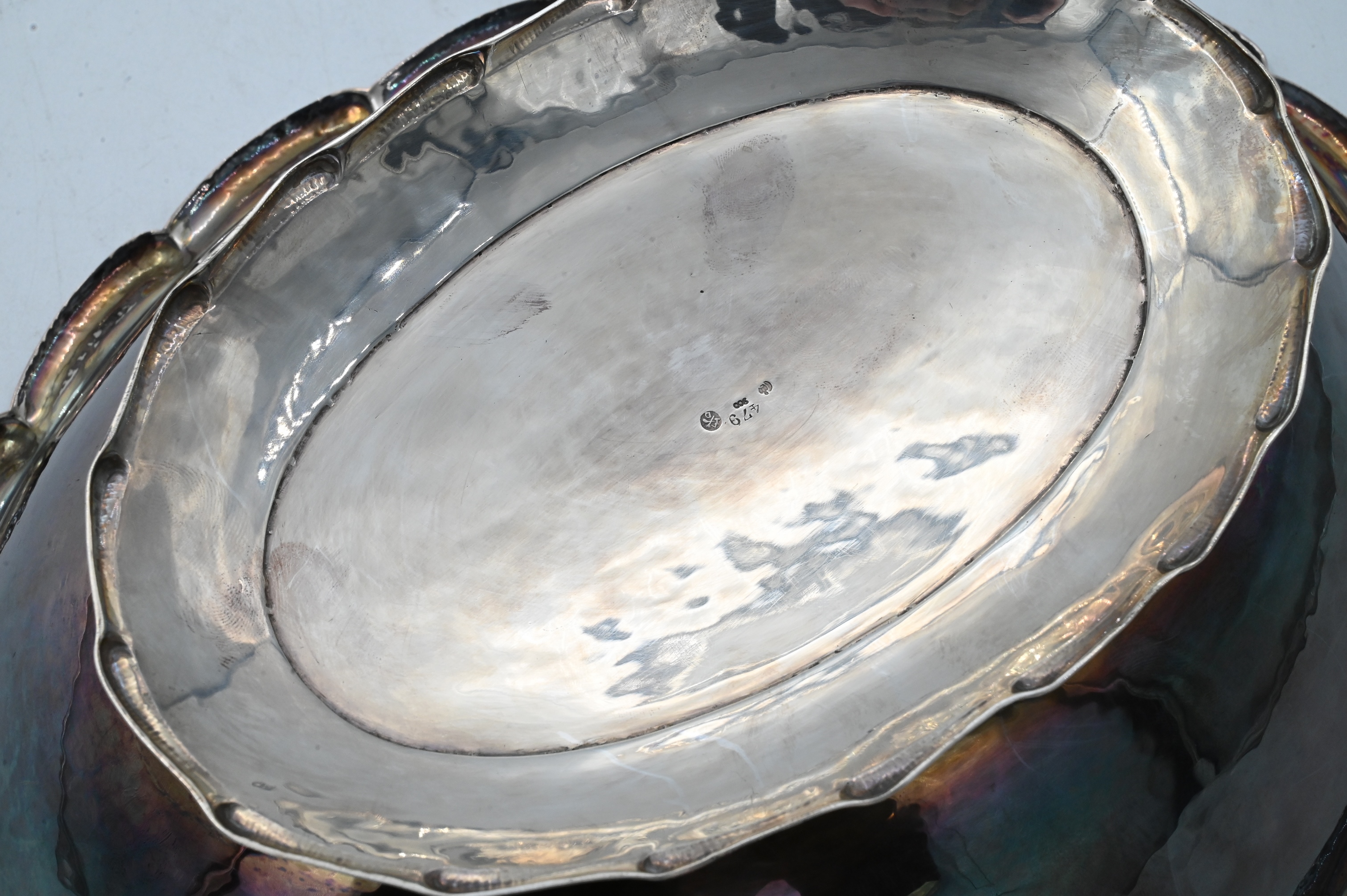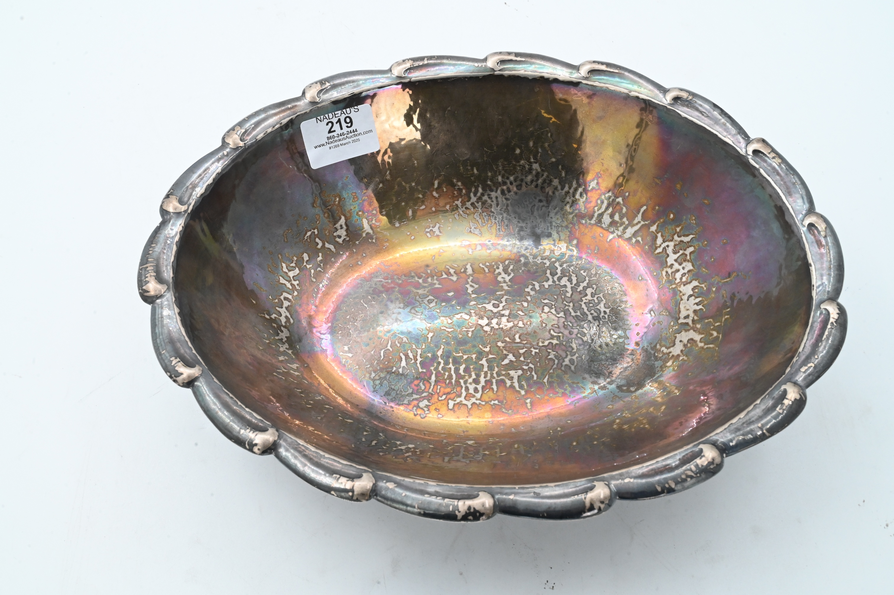 Lot 219: Continental Silver Oval Hand Hammered Bowl