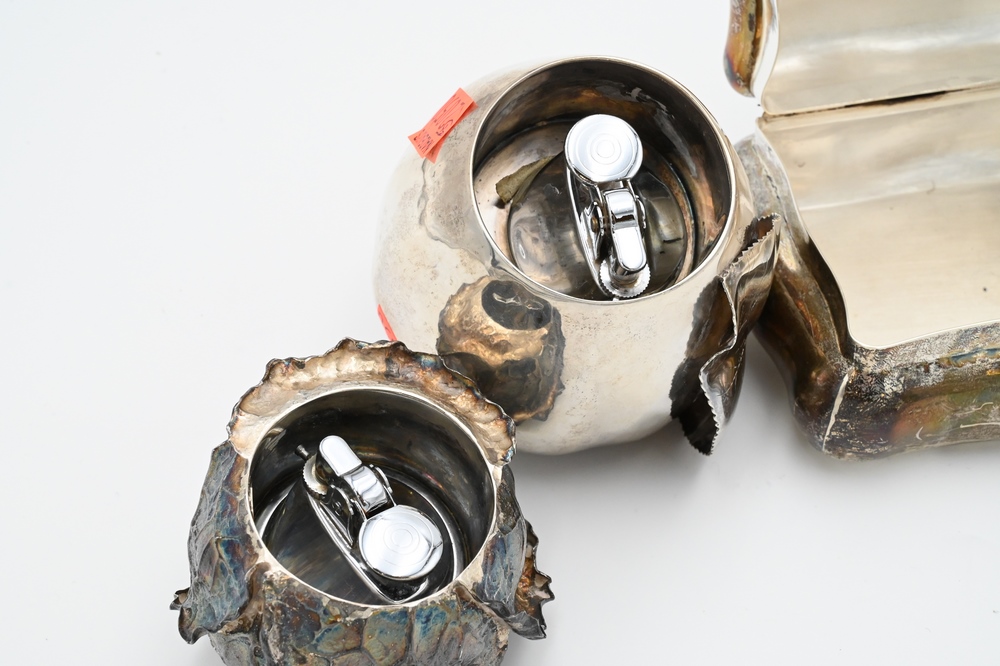 Lot 219: Five Piece Group of Buccellati Sterling Silver, to include apple, grapes, and pear from fruit lighters; a cabbage shaped lighter; al…