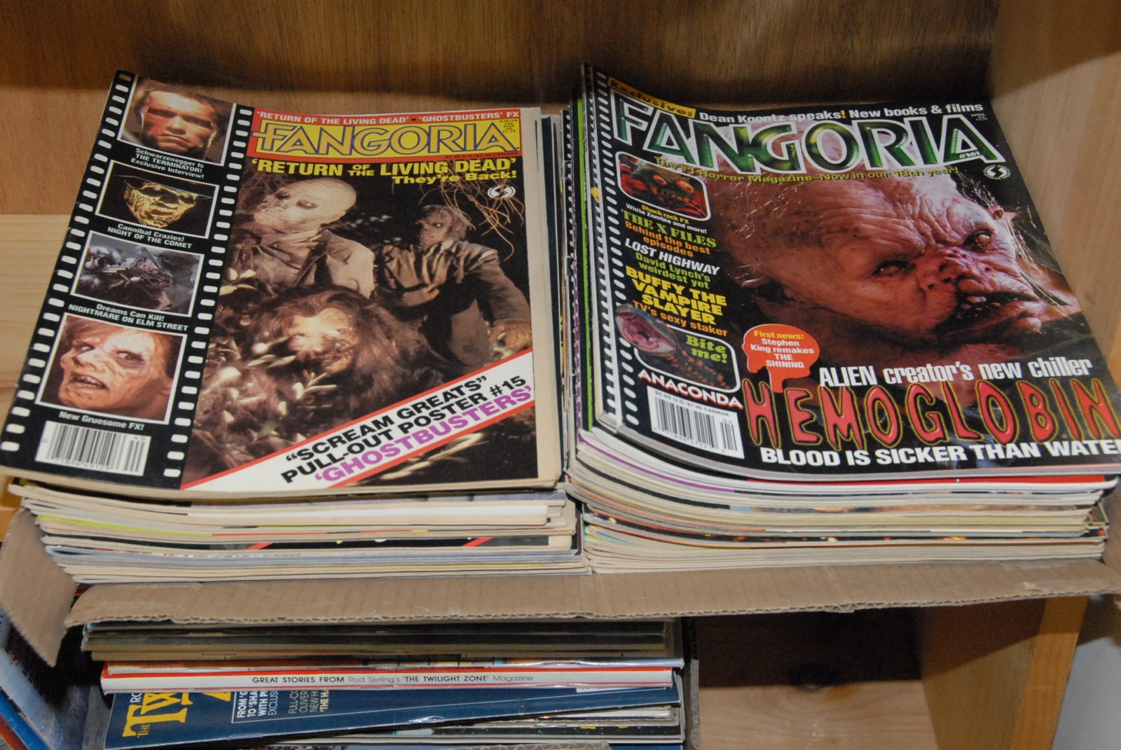 Group of magazines, mostly Fangoria, Gore Zone, Film Facts, Scarlet Street, etc
