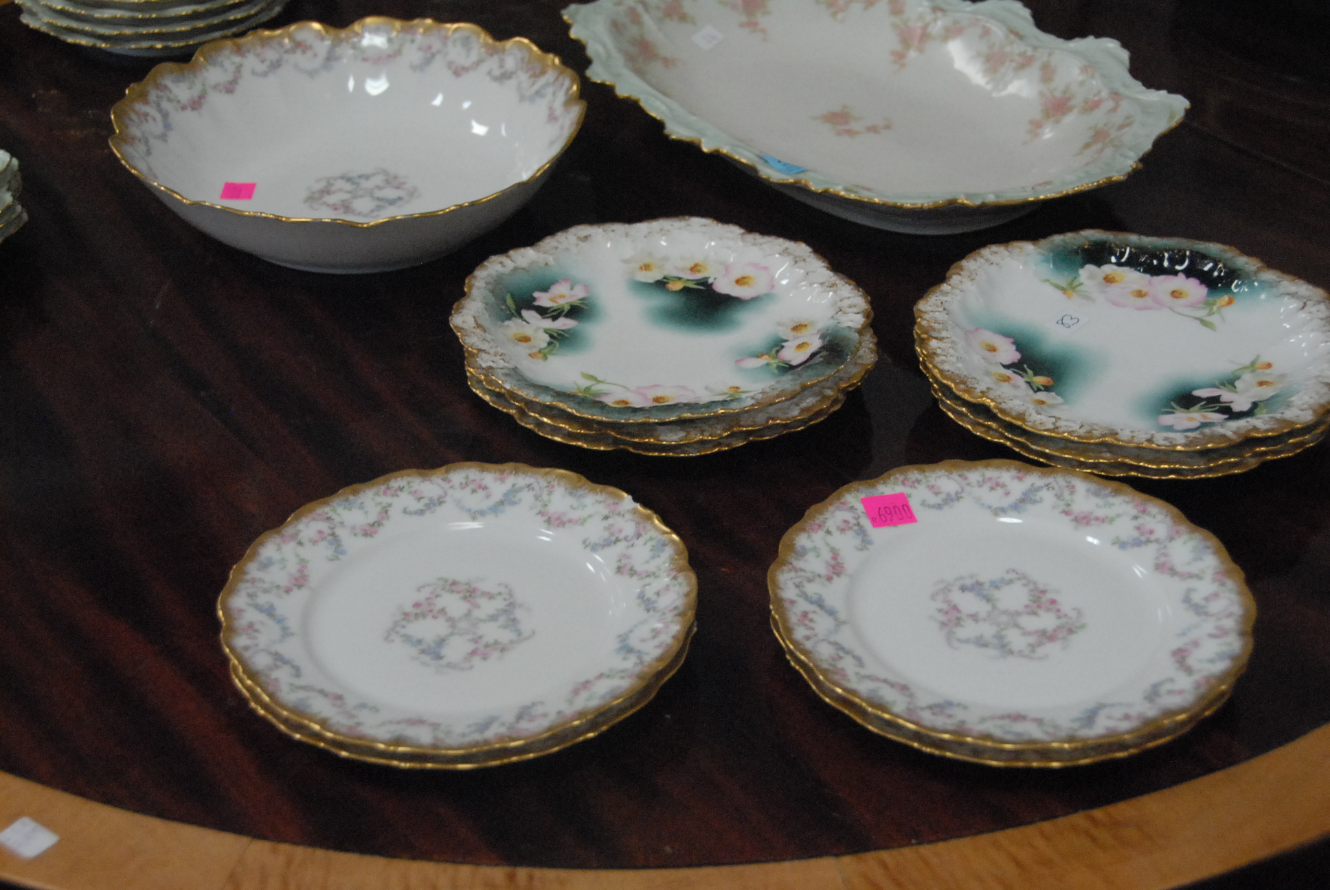 Grouping of Limoges plates, bowls, and platter various patterns.