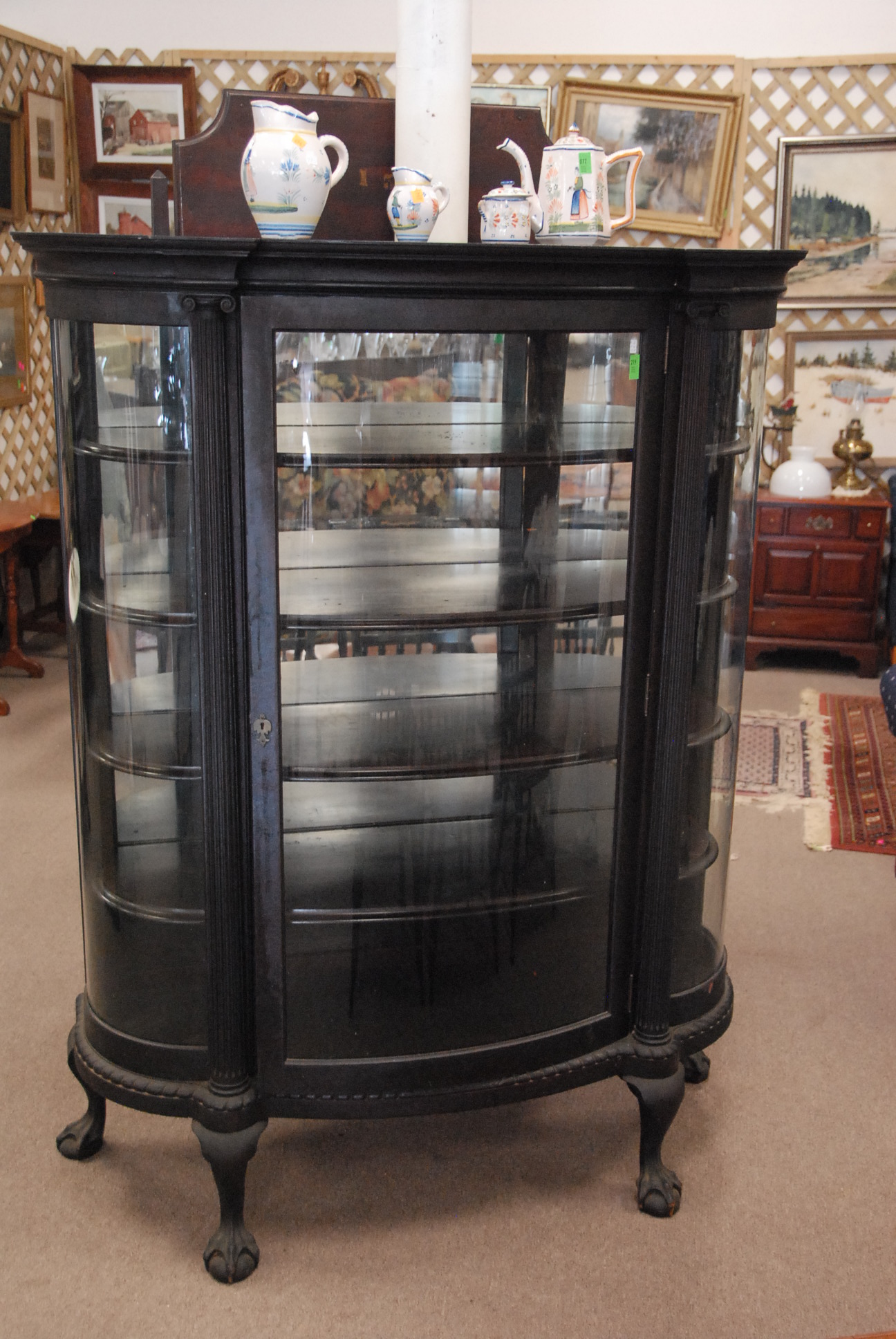 Large mahogany bow glass china cabinet with ball and claw feet, ht. 65in. wd. 50in. dp. 19in.