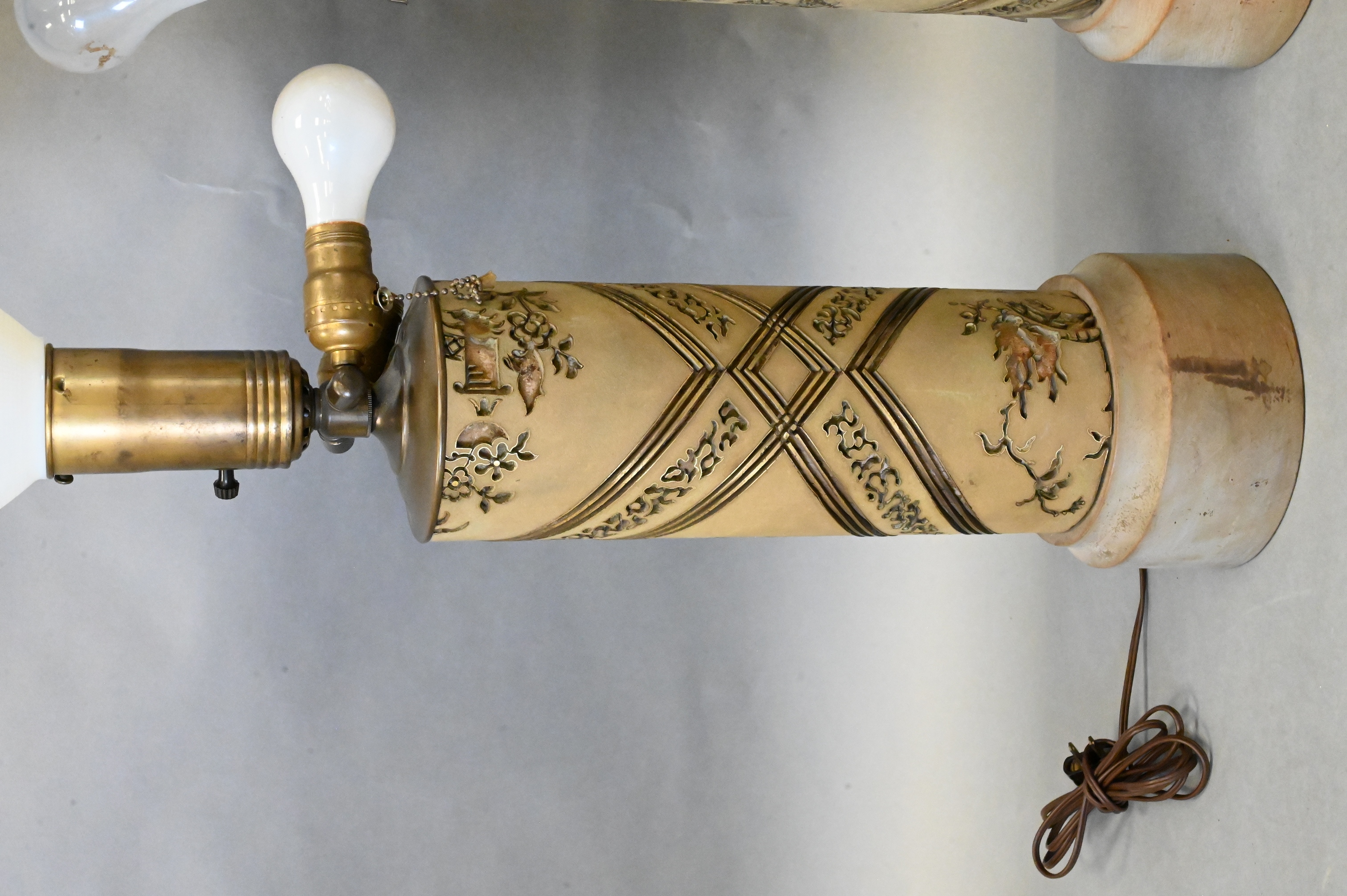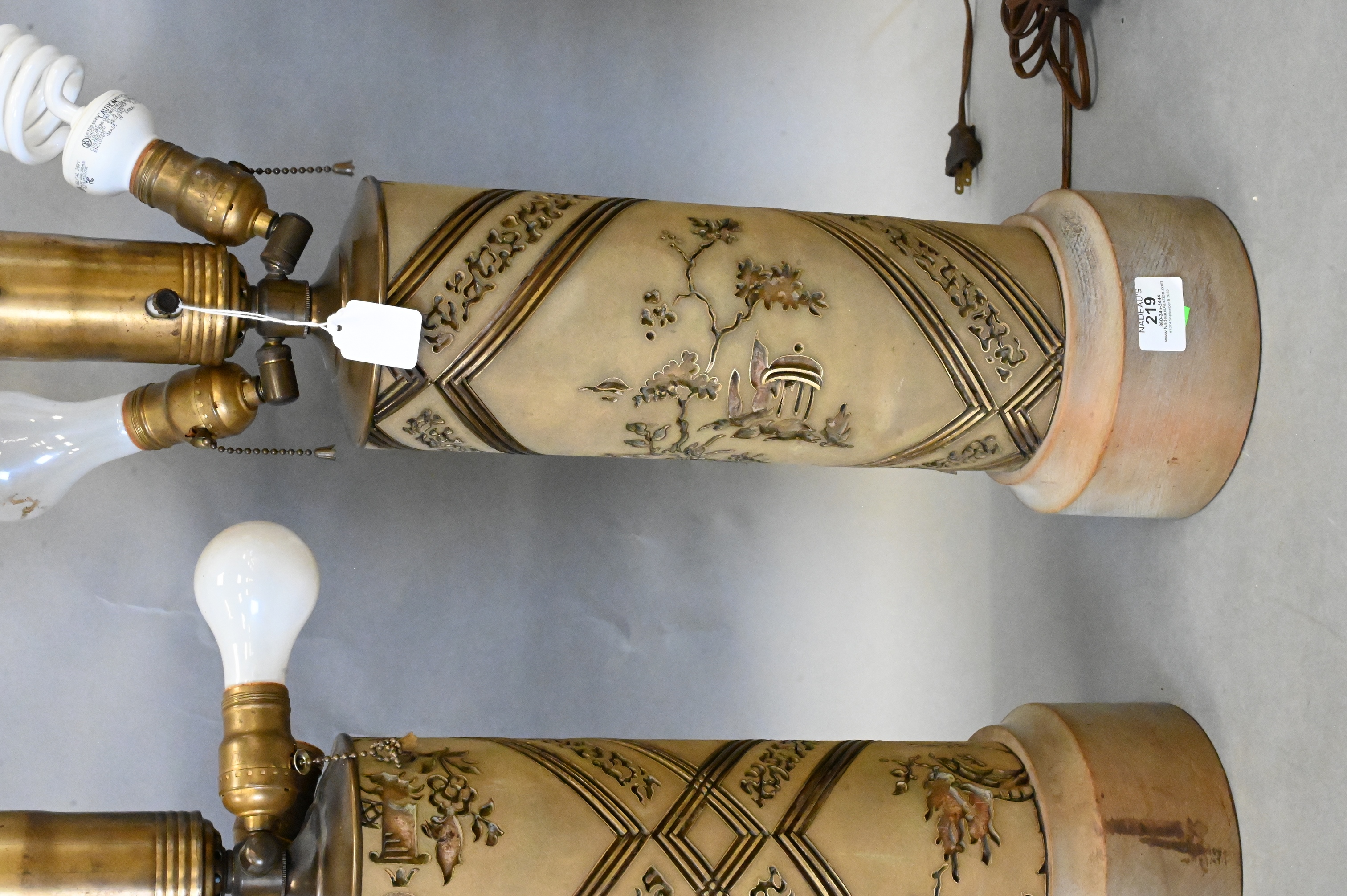 Lot 219: Pair of Wallpaper Printing Roll Table Lamps