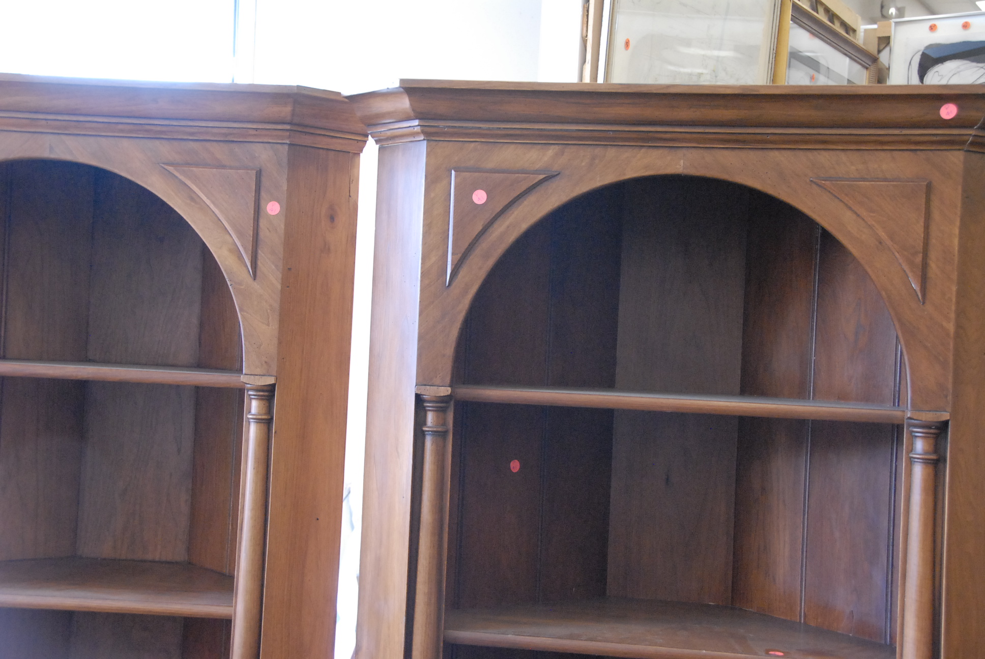 Pair of walnut corner cabinets.