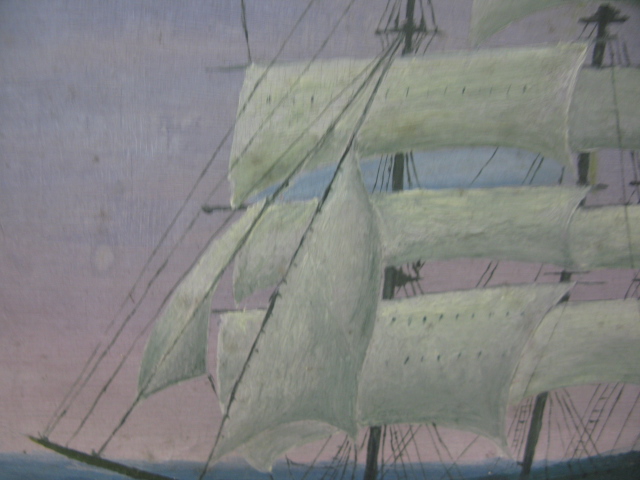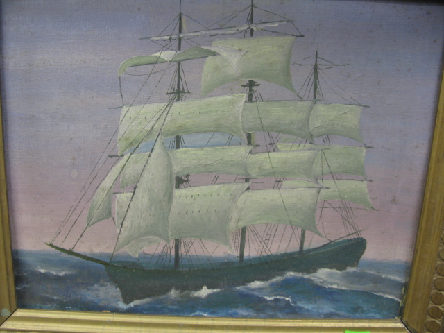 Primitive oil on board painting in a Victorian frame.