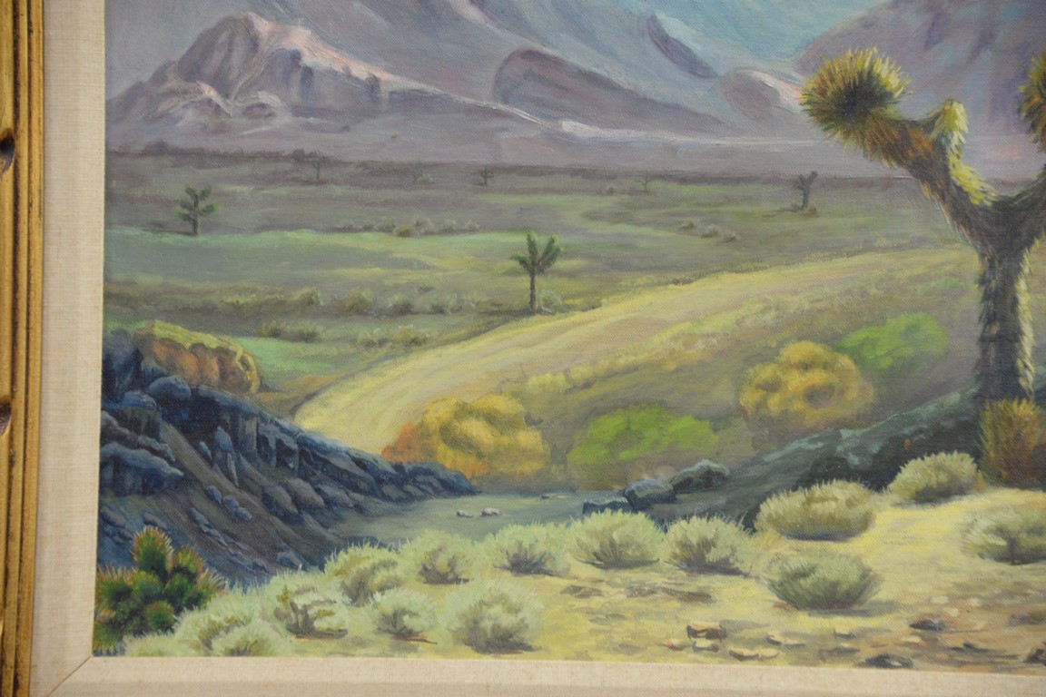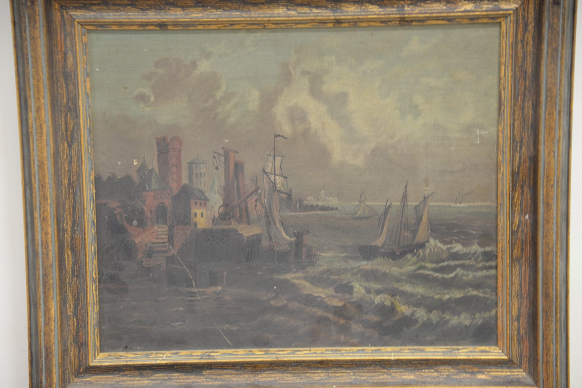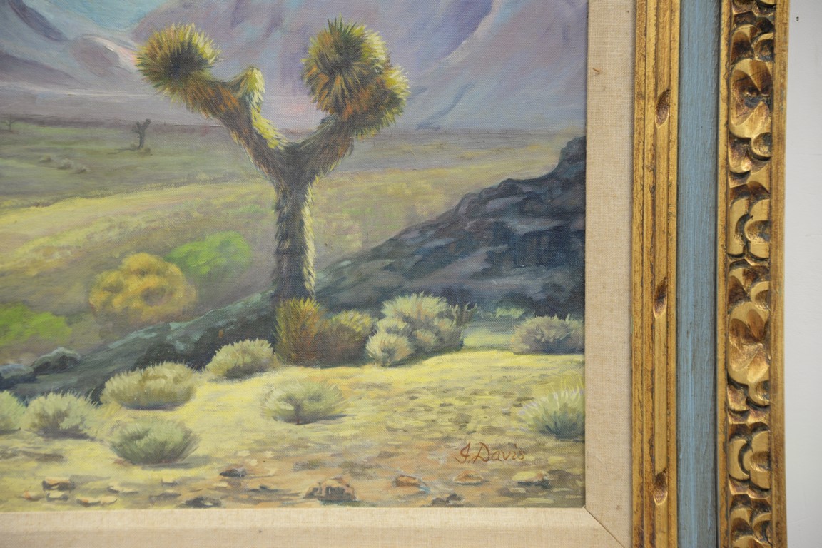 Lot 219: Three piece group to include California landscape by J. Davis 20 x 24, small oil on canvas of rough seas tower’s edge 10 x 12…