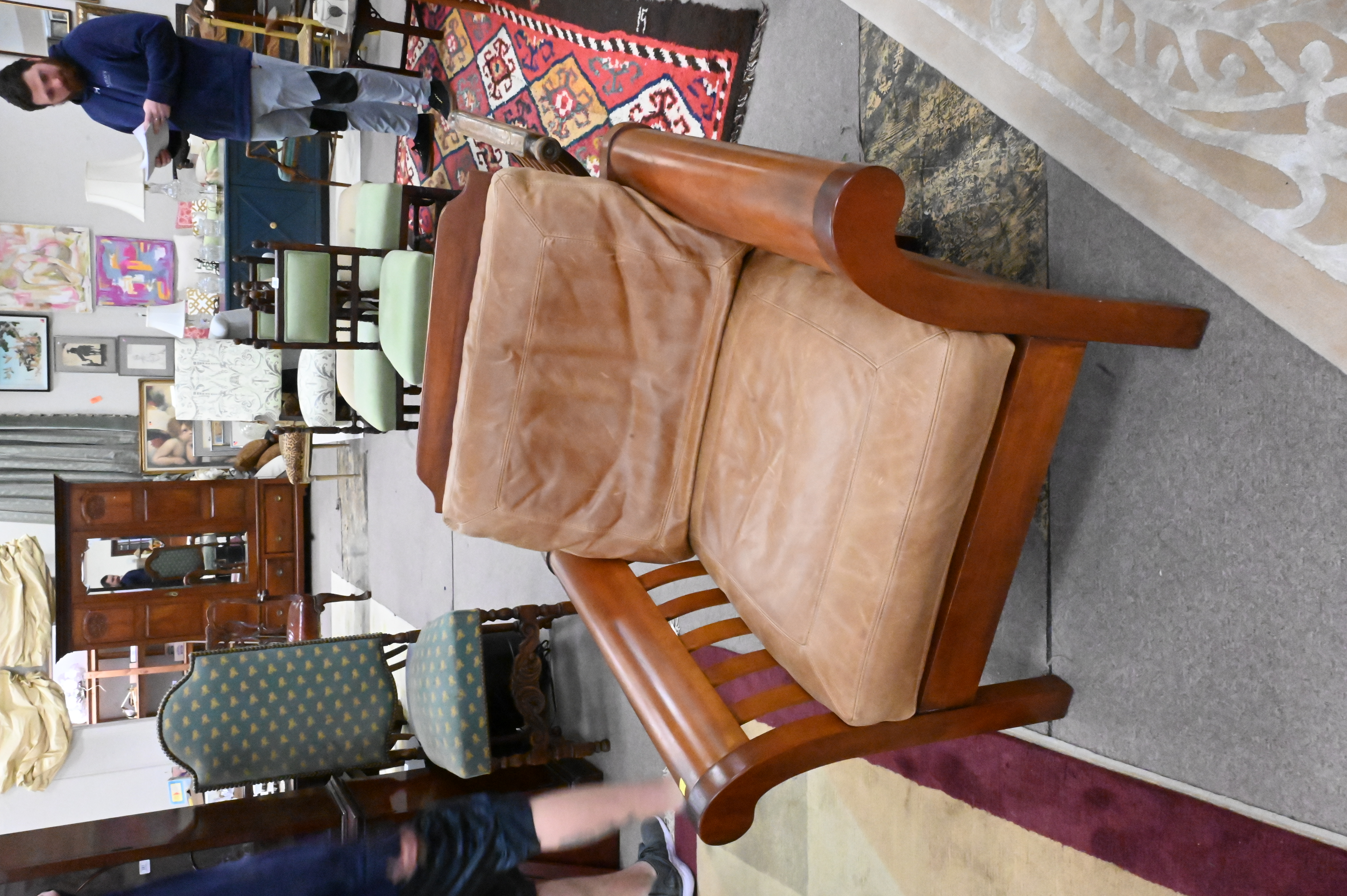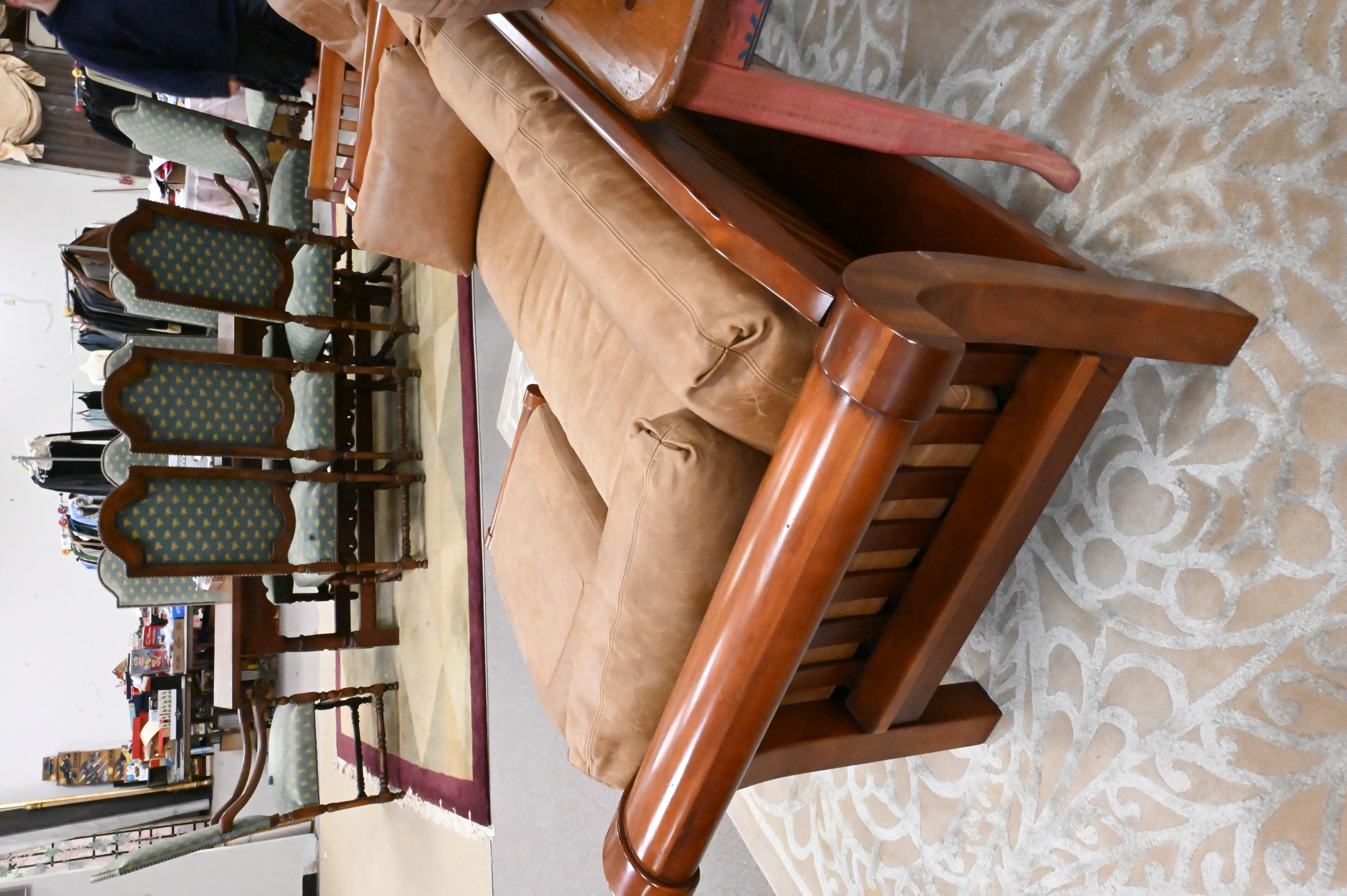 Lot 219: Three Piece Mission Style Cherry and Leather Group