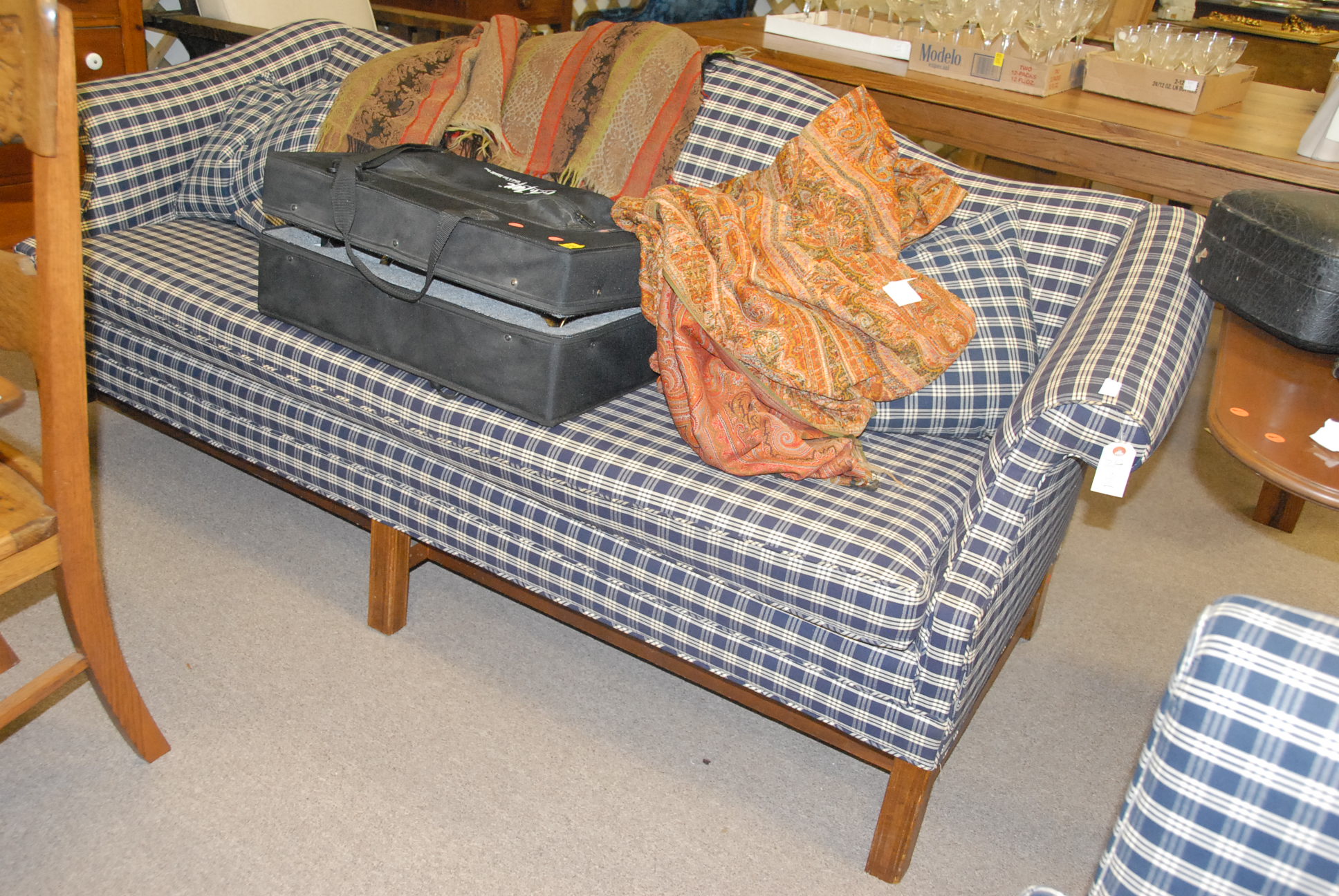 Two sofas country style sofa and Chippendale style camelback sofa.