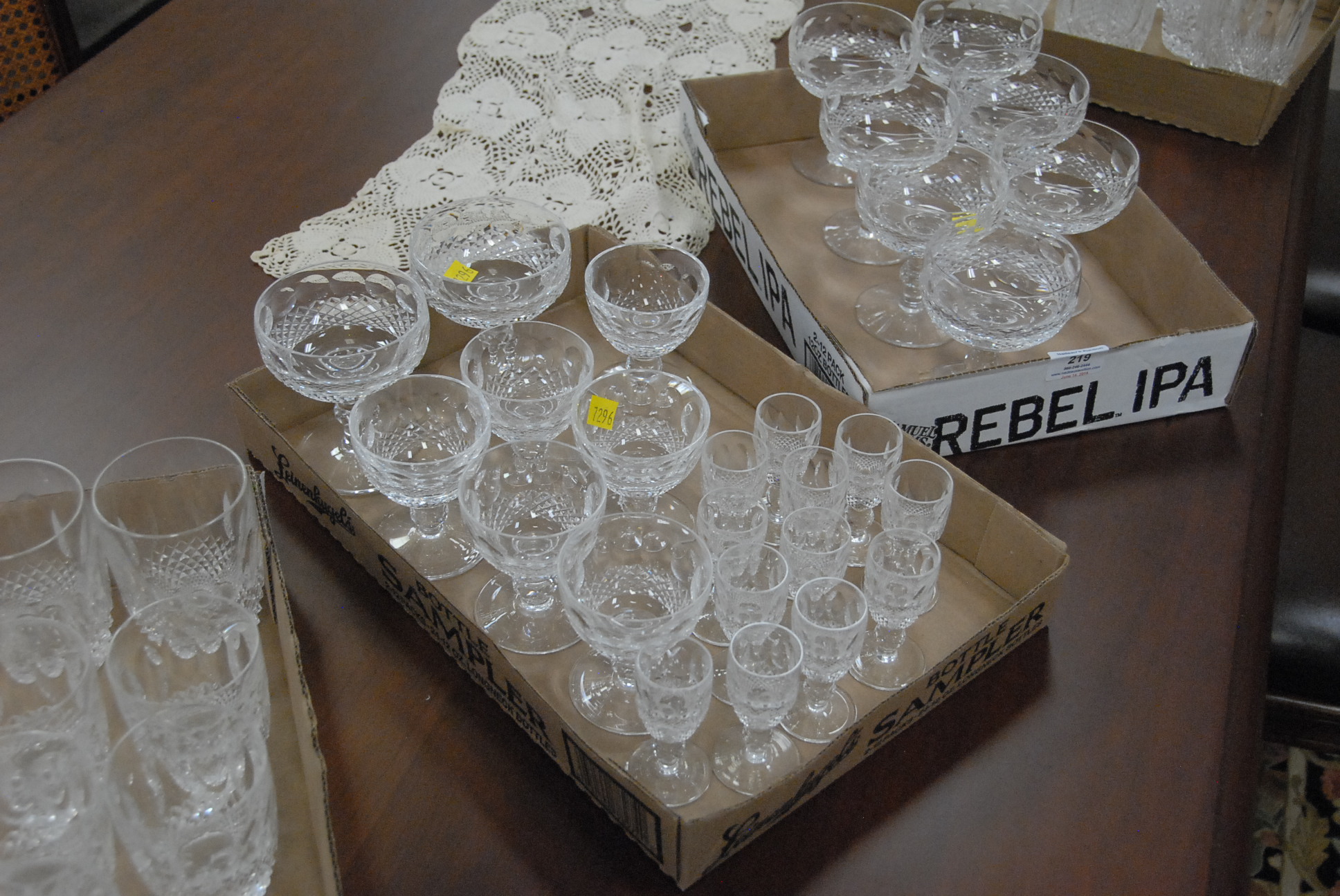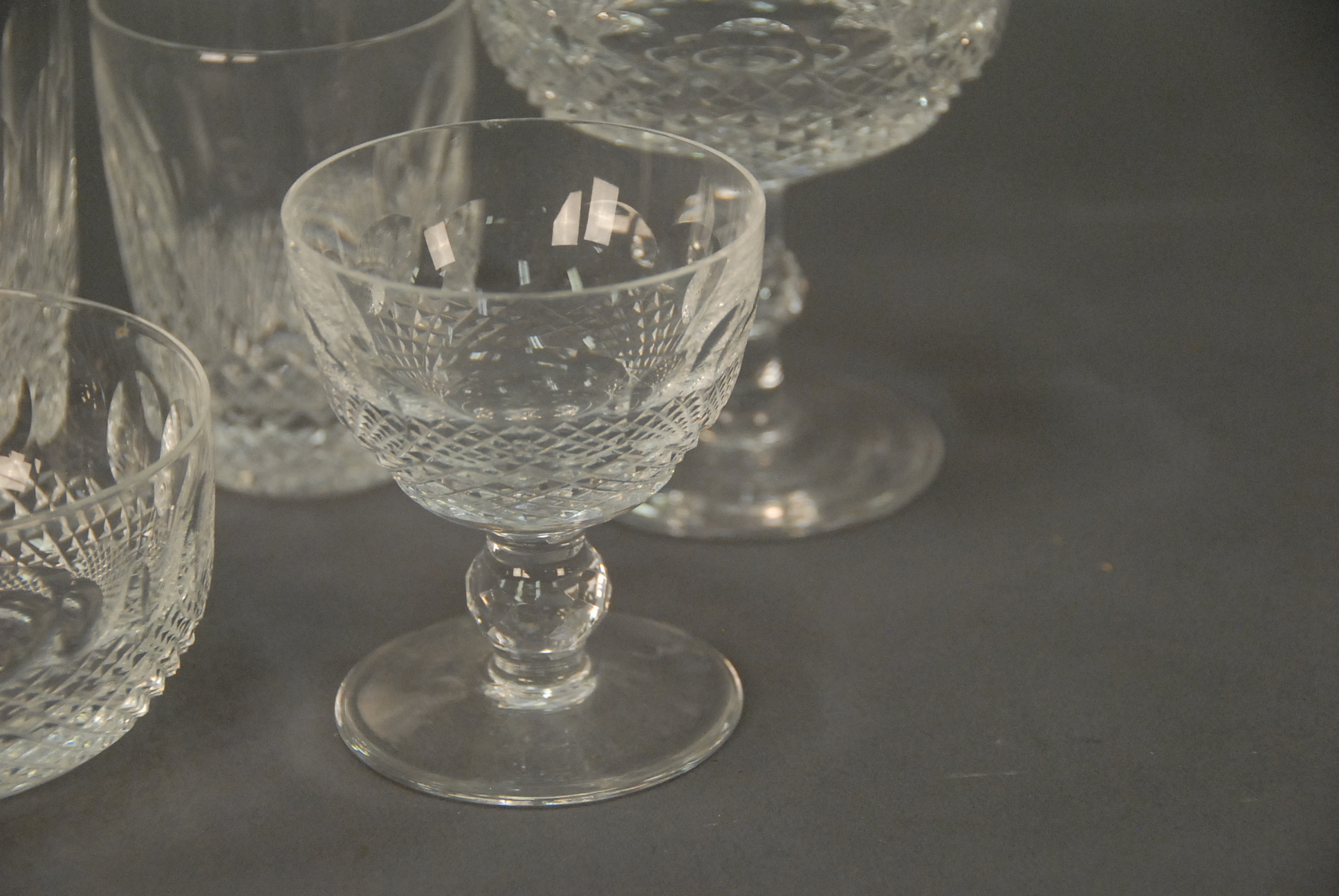 Lot 219: Waterford crystal 64 piece set in seven sizes including 6 large goblets, 10 medium goblets, 11 small goblets, 10 large stems, 7 smal…