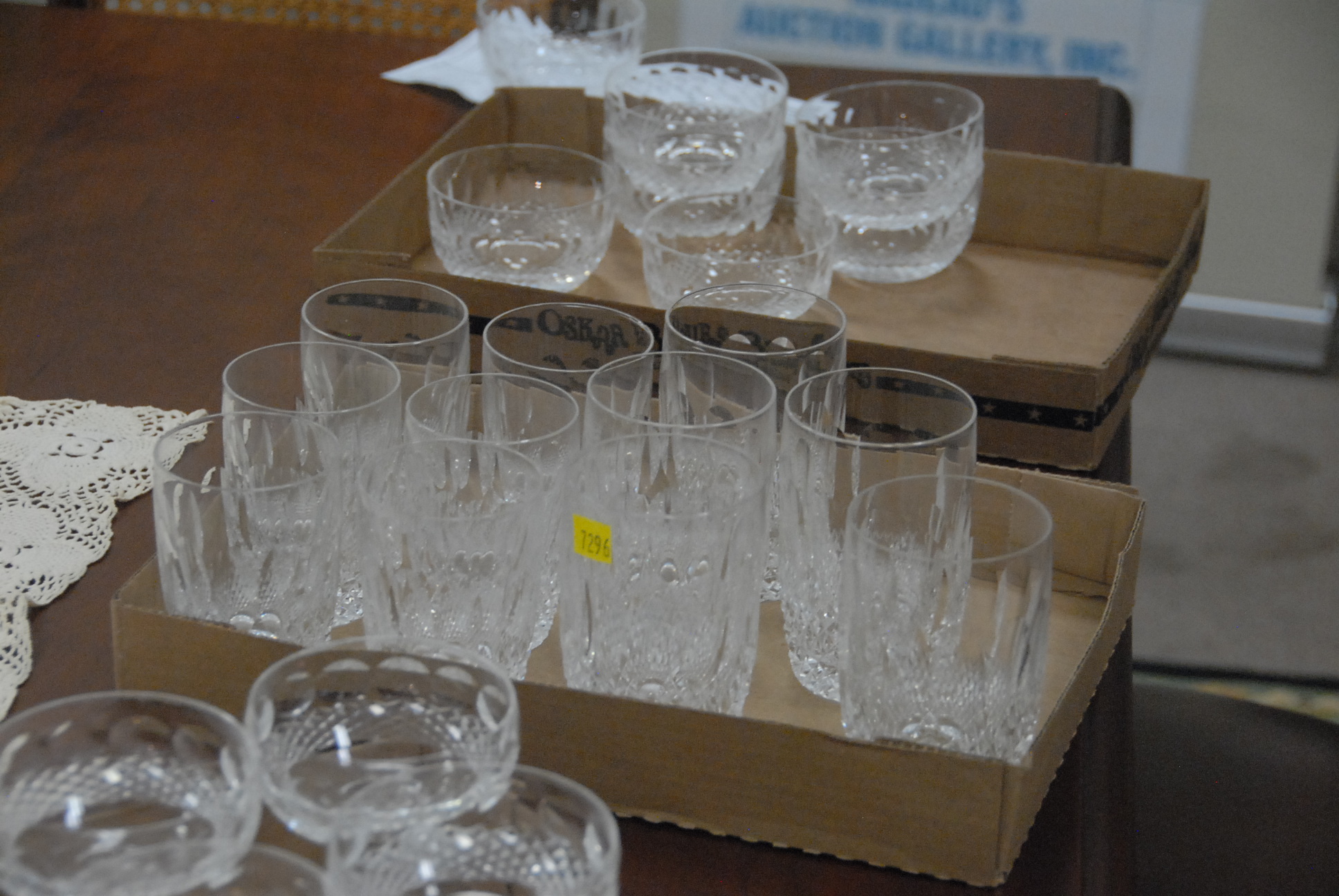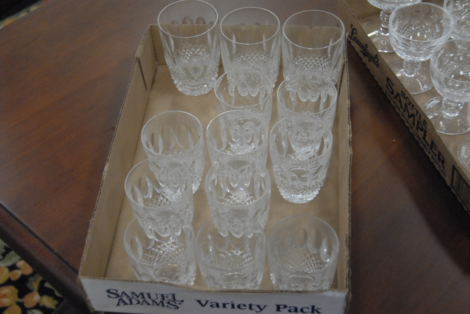 Waterford crystal 64 piece set in seven sizes including 6 large goblets, 10 medium goblets, 11 small goblets, 10 large stems, 7 small stems, 13 cordials, and 7 berry bowls.