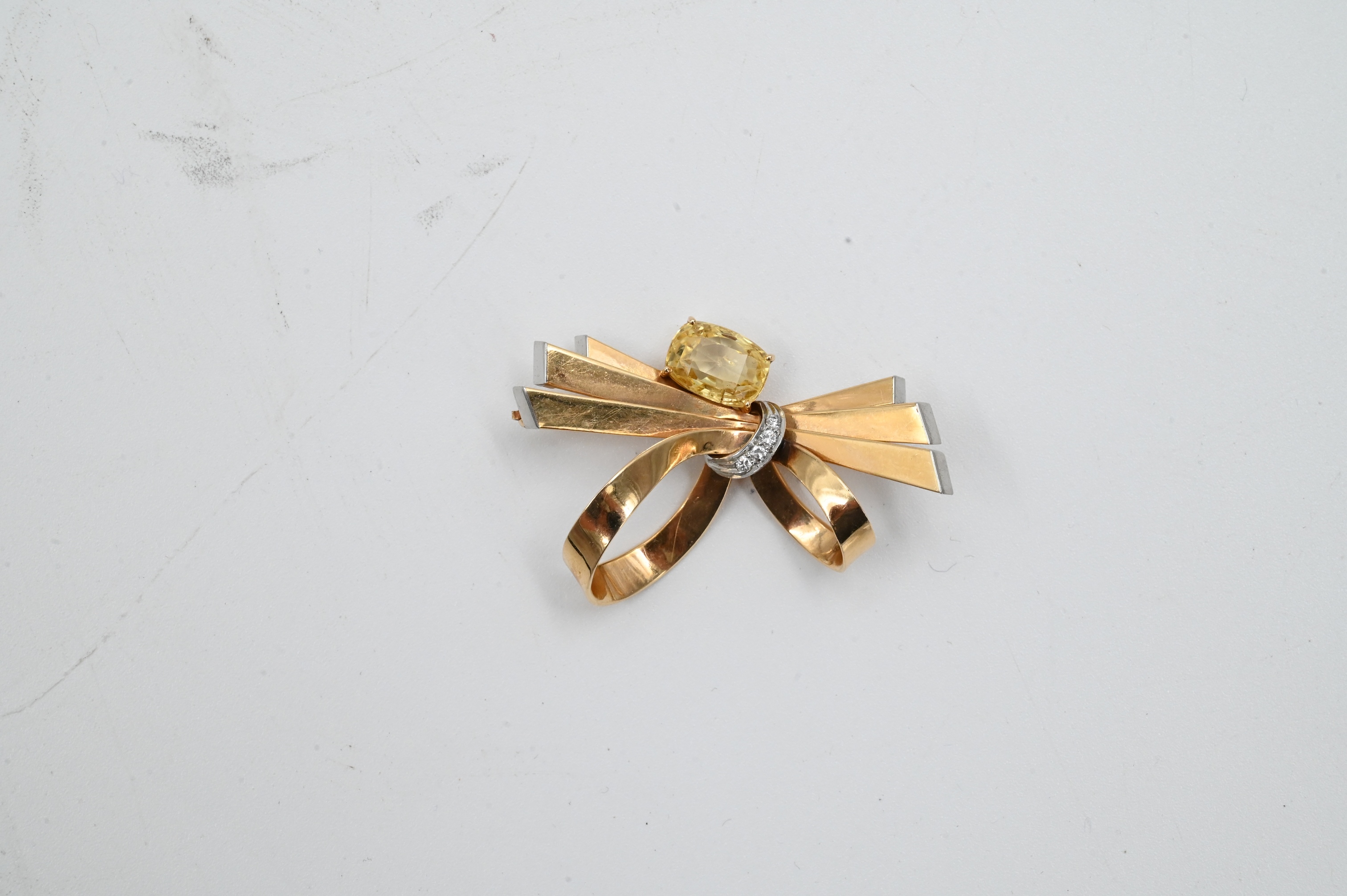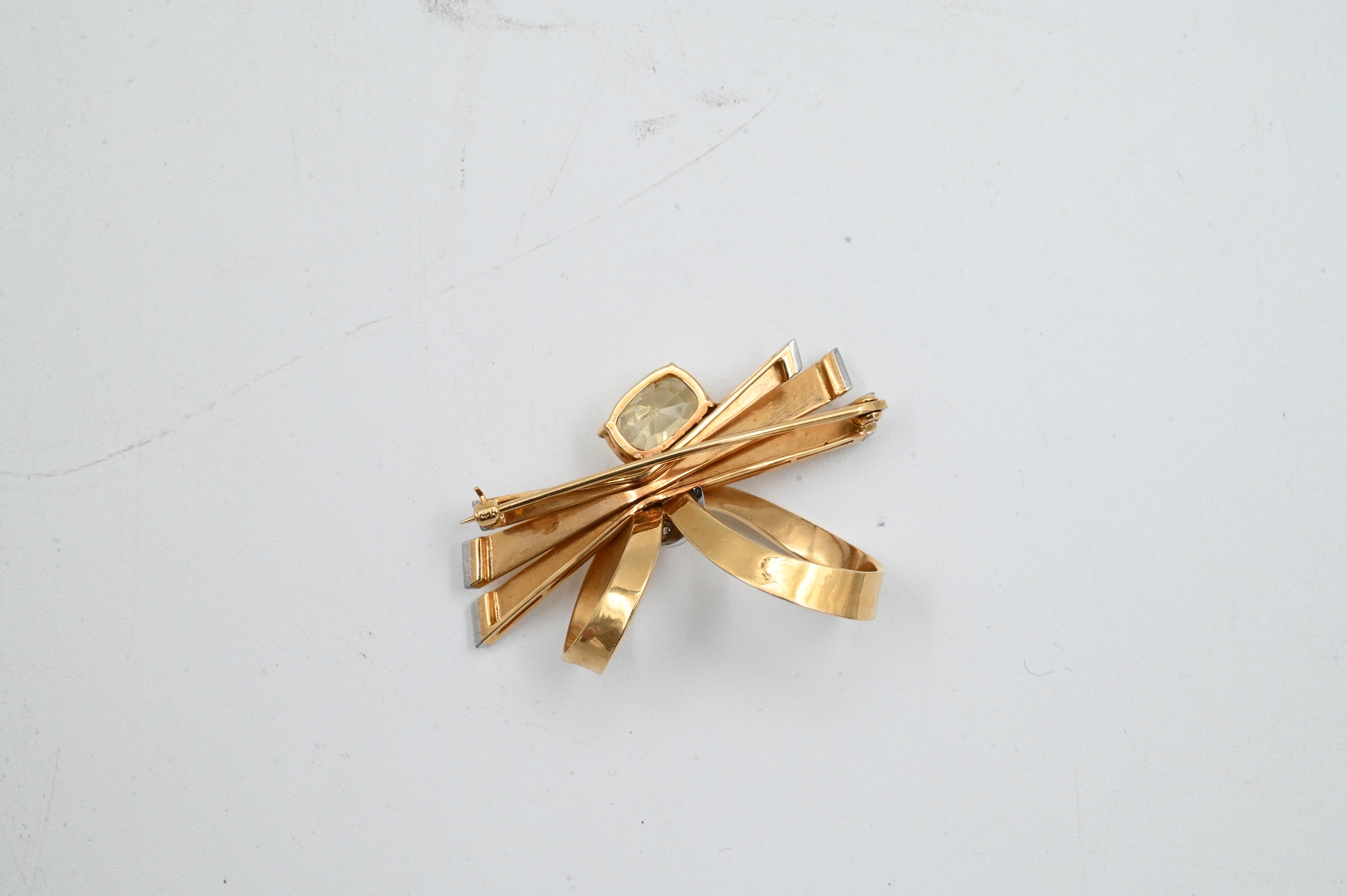 Lot 22: 14K Yellow Gold with White Gold Tips Bow Brooch
