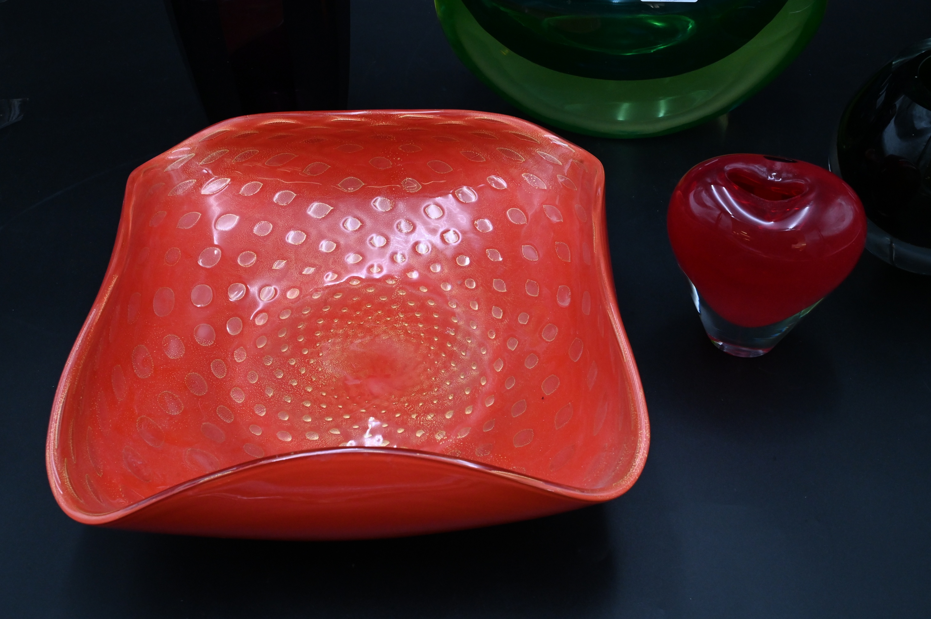 to include Murano glass platter circa 1960s, Salviati 1999 heart vase, along with two additional vases