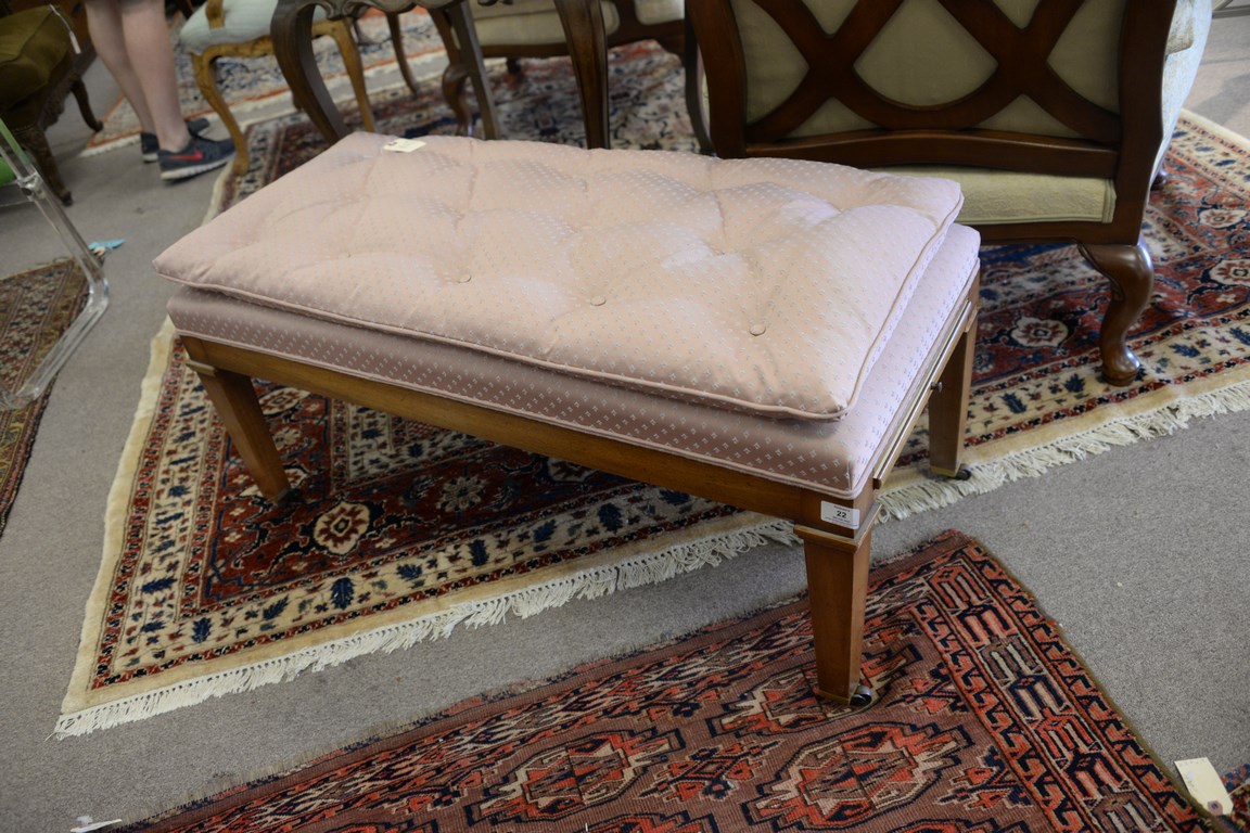 French style Mid-Century upholstered bench with pull out slide, lg. 40 in.
