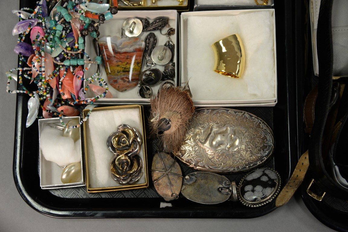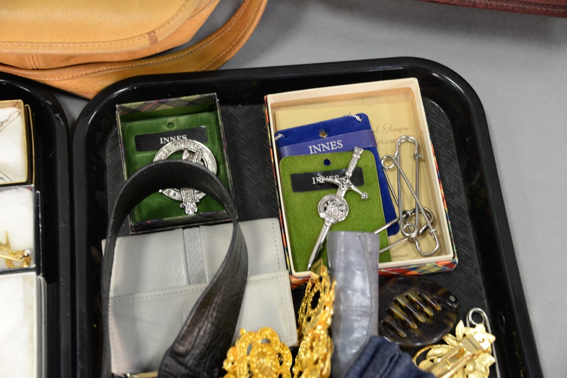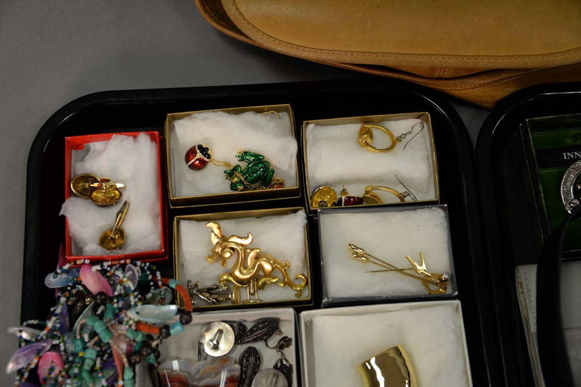 Group lot to include five leather purses, four are Coach, and two box lots with costume jewelry.
