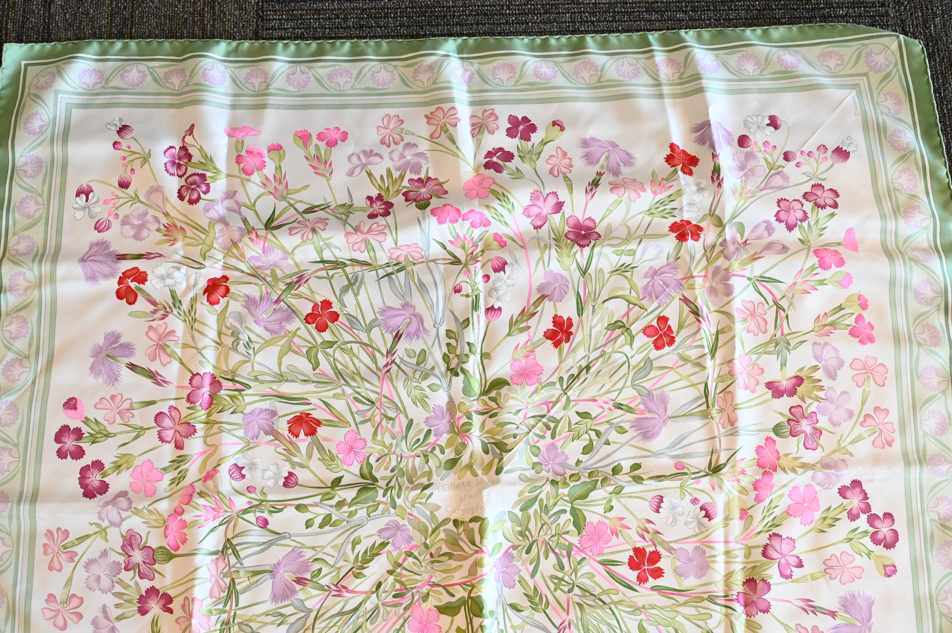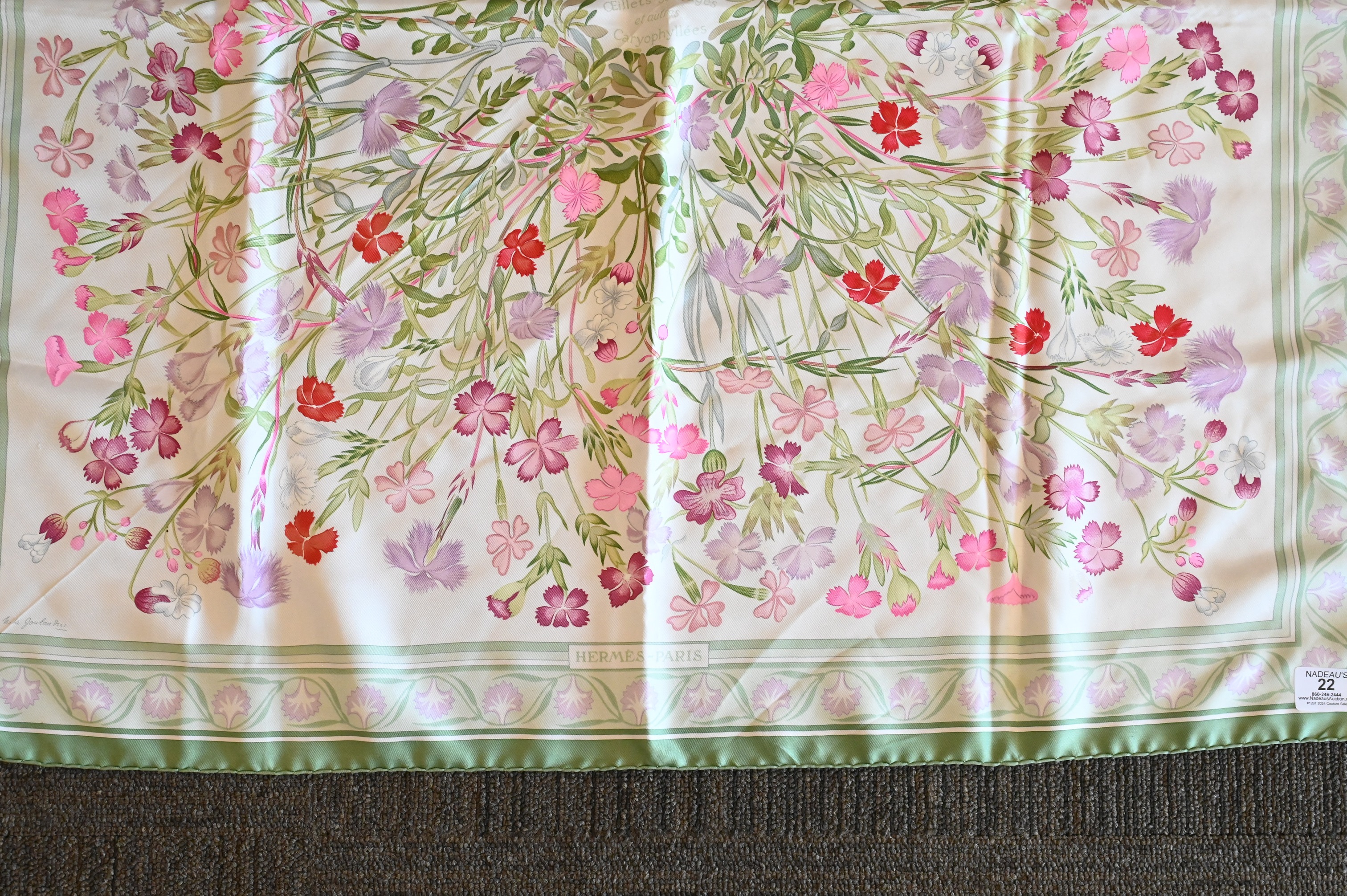 Lot 22: Hermes Paris “OEillets Sauvages et Autres Caryophyllees” Silk Scarf