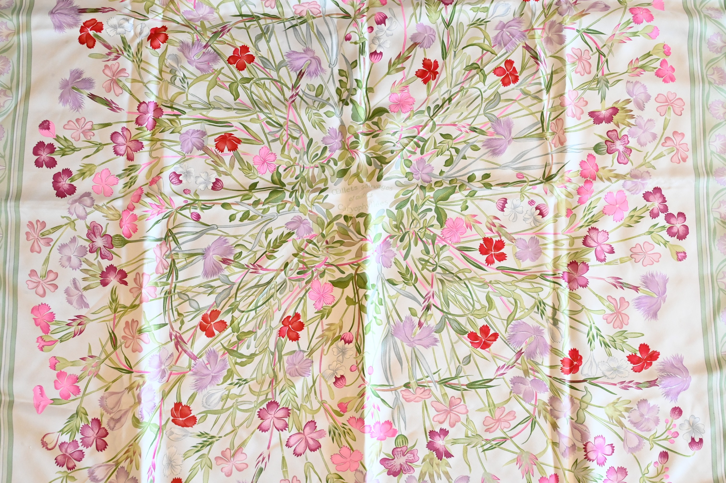 Hermes Paris “OEillets Sauvages et Autres Caryophyllees” Silk Scarf