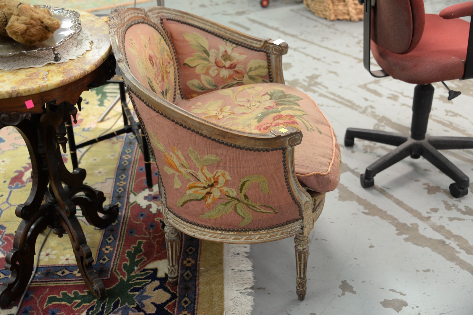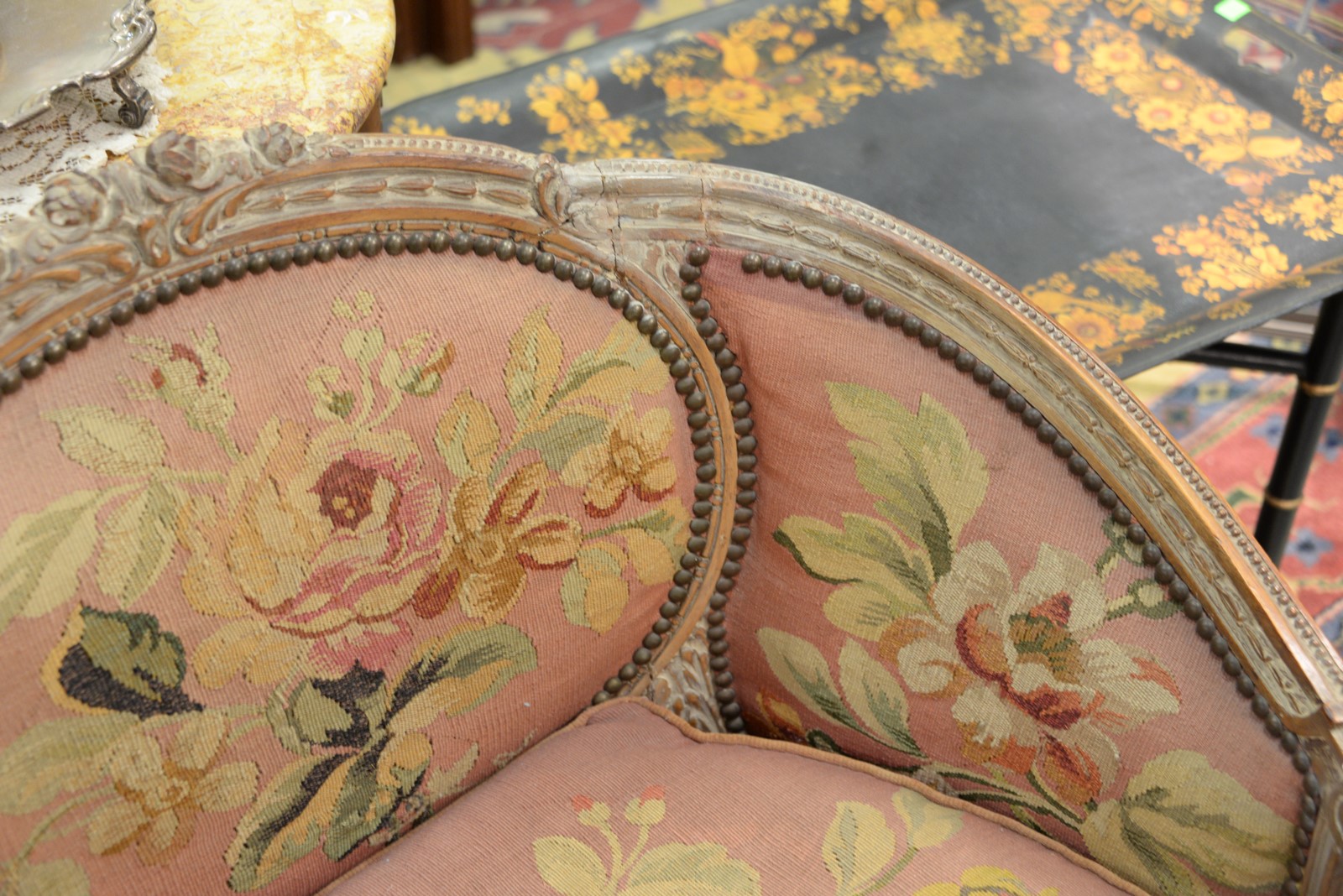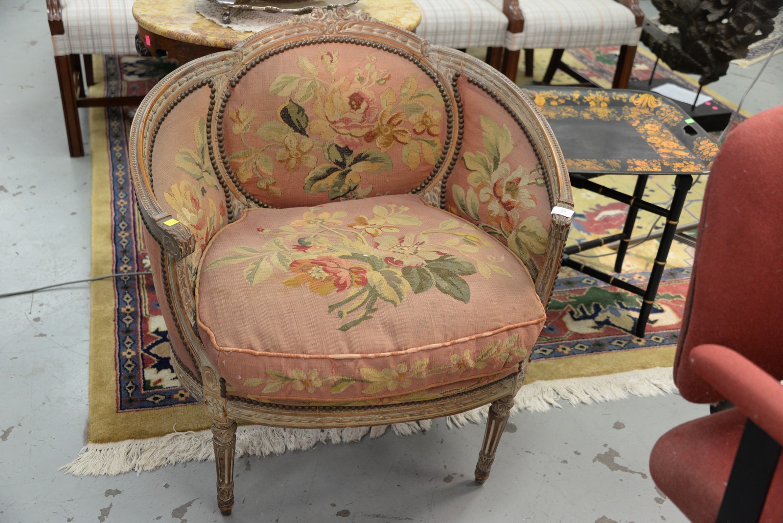 Louis XVI style chair upholstered with Aubusson tapestry. wd. 32 in.