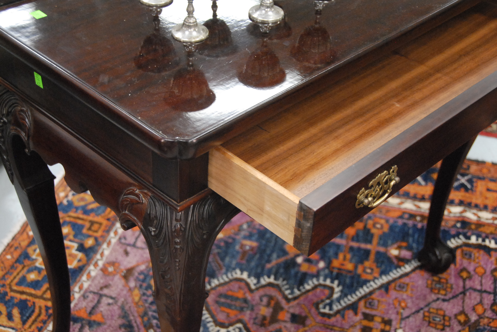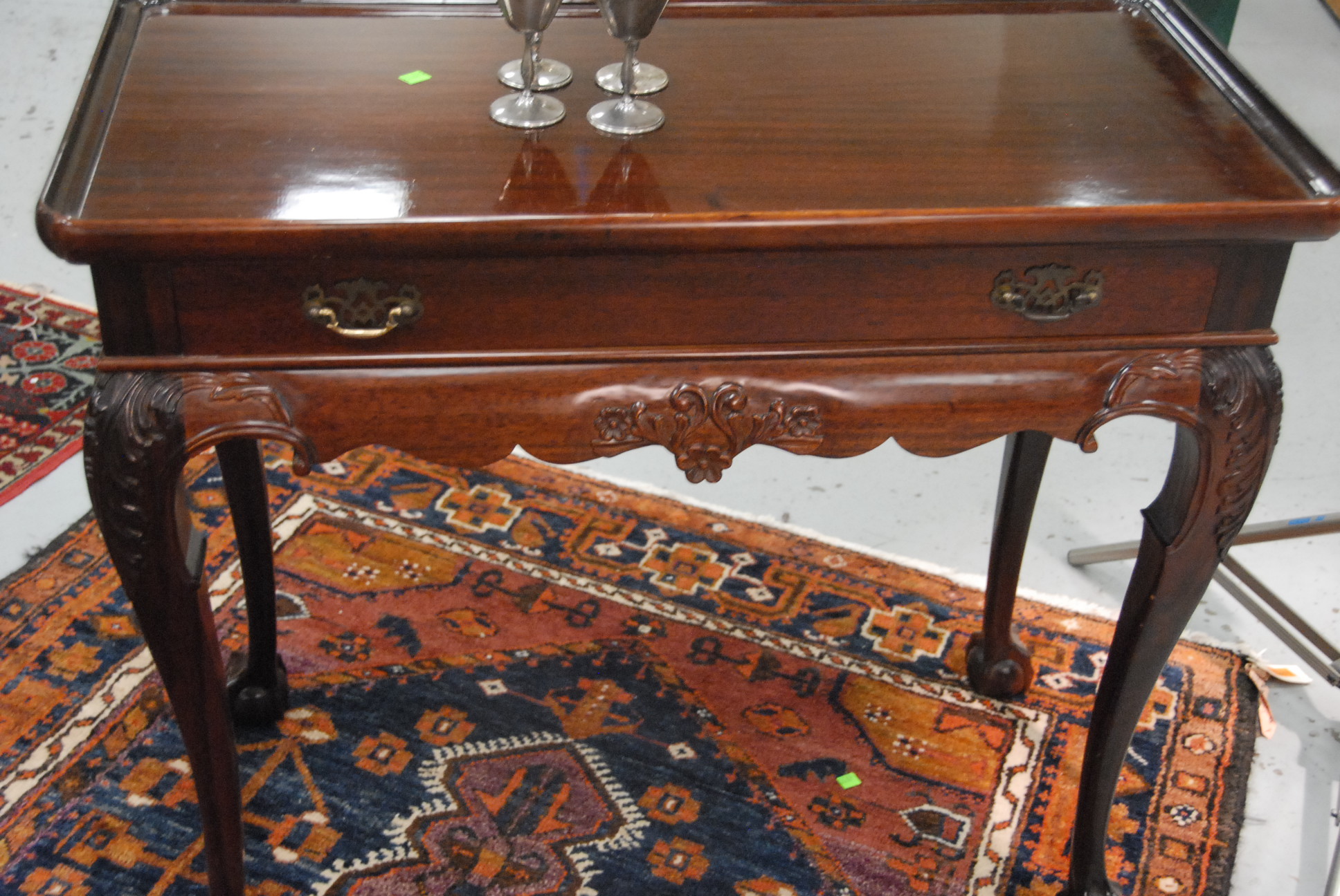 Lot 22: Pair of mahogany tea tables with ball and claw feet.