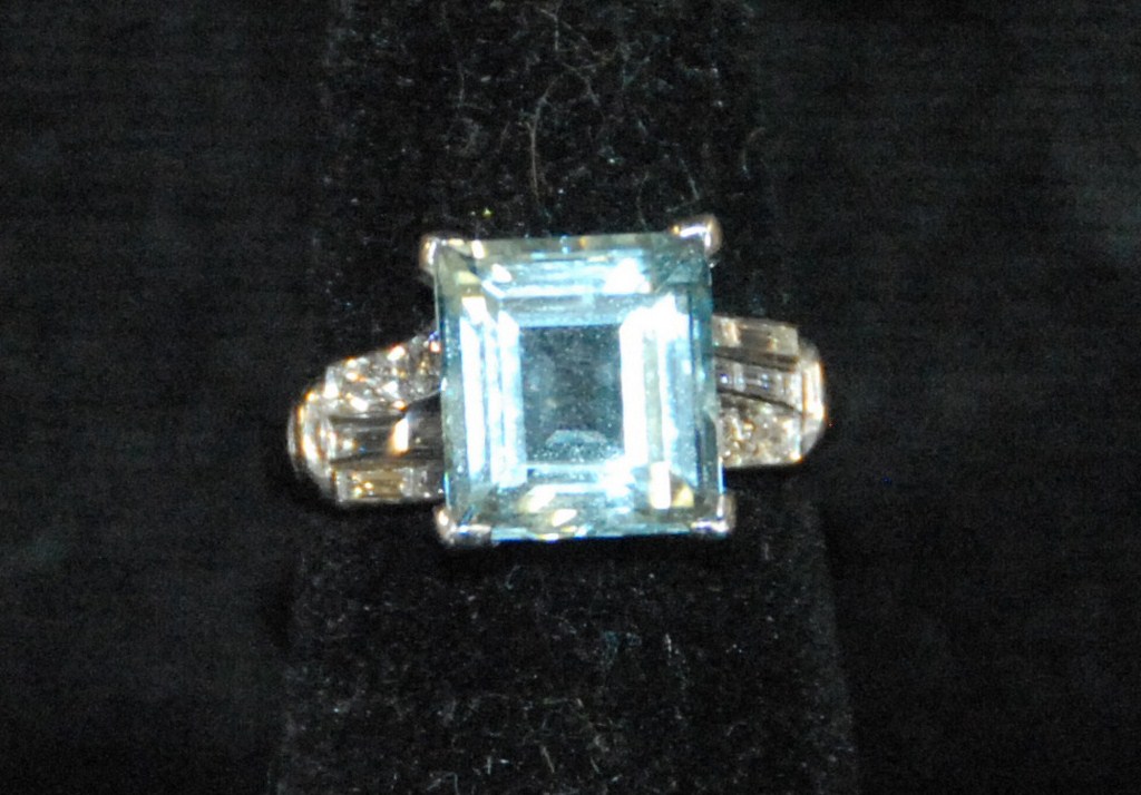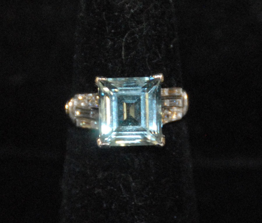 Lot 22: Platinum, aquamarine and diamond ring, center rectangular step-cut, faceted natural aquamarine having excellent brilliance and no ey…
