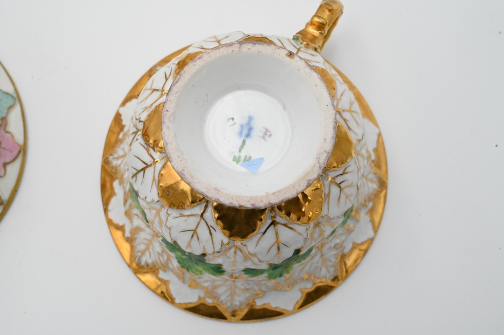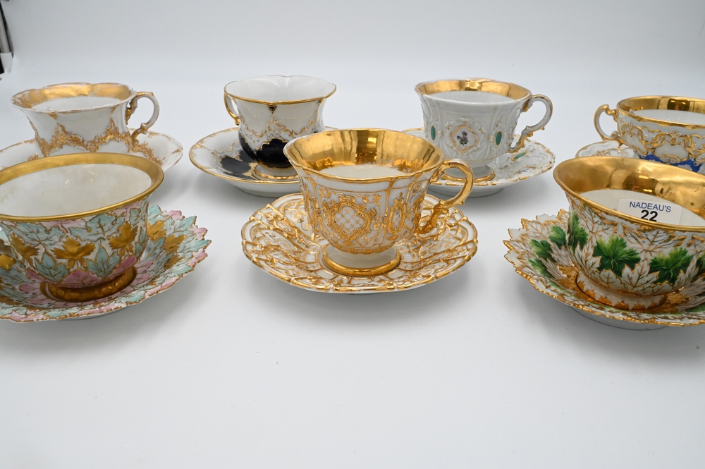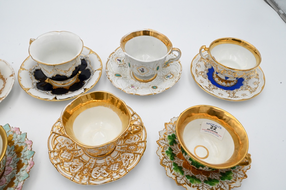 Lot 22: Seven Meissen Cups and Saucers, marked with crossed swords, cup height 2 3/4 inches, diameter 4 inches.