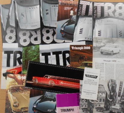 Triumph brochures – TR 2, TR 3, TR 4, TR 250, TR 6, TR 7, TR 8 and others, 37 items