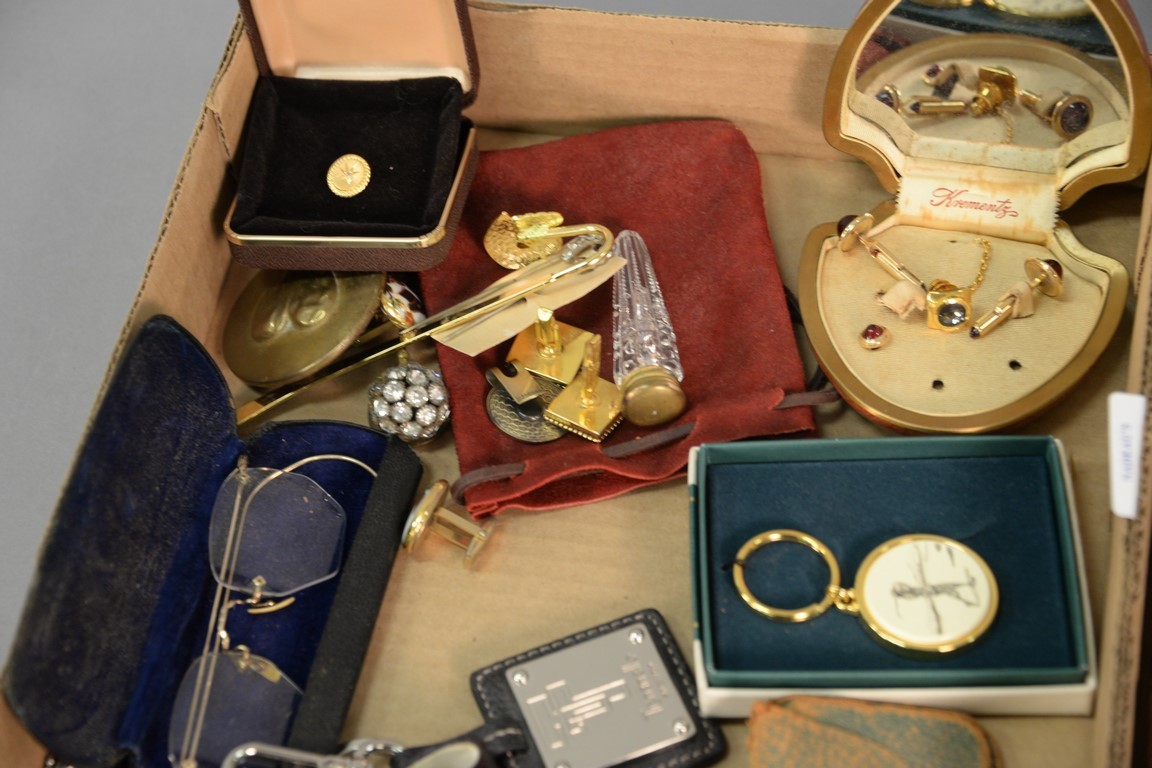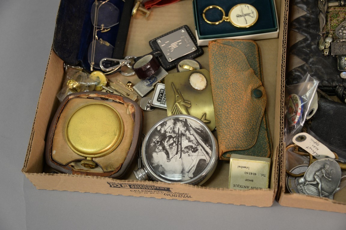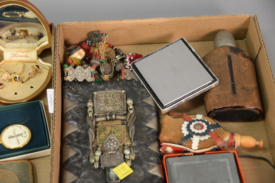 Two box lots of costume jewelry and miscellaneous items to include gold ring, purses, cufflinks, etc. Provenance: Estate of Arthur C. Pinto, MD