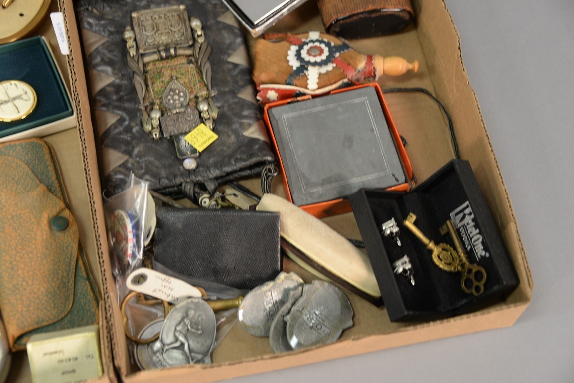 Lot 22: Two box lots of costume jewelry and miscellaneous items to include gold ring, purses, cufflinks, etc. Provenance: Estate of Arthur C…