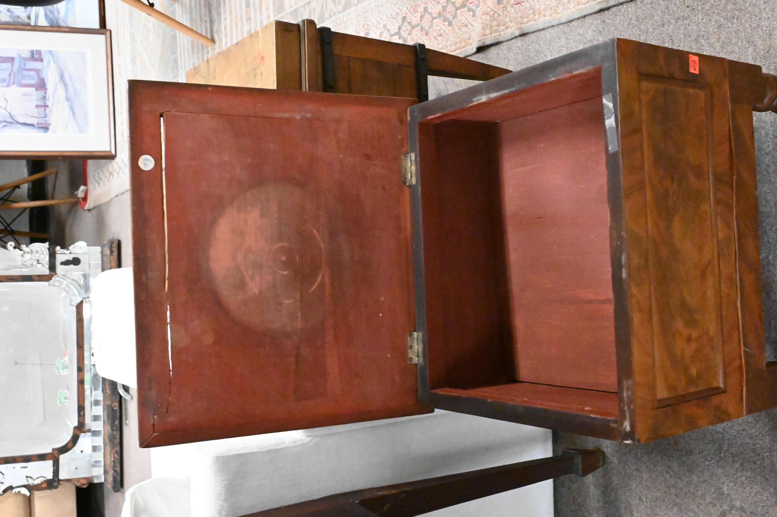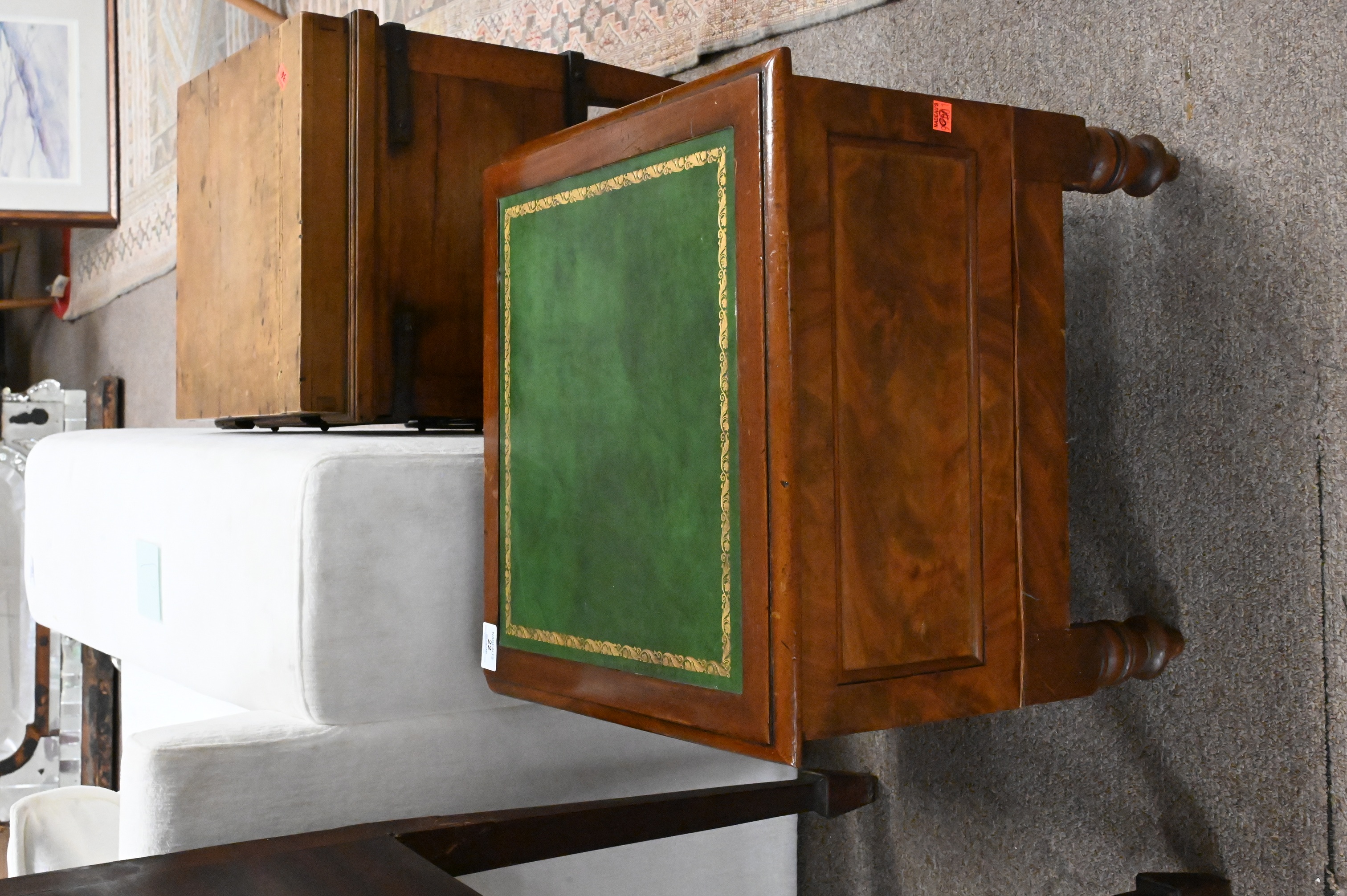 to include mahogany lift top commode having leather top, 19th century, along with a rustic pine sewing box set on stand