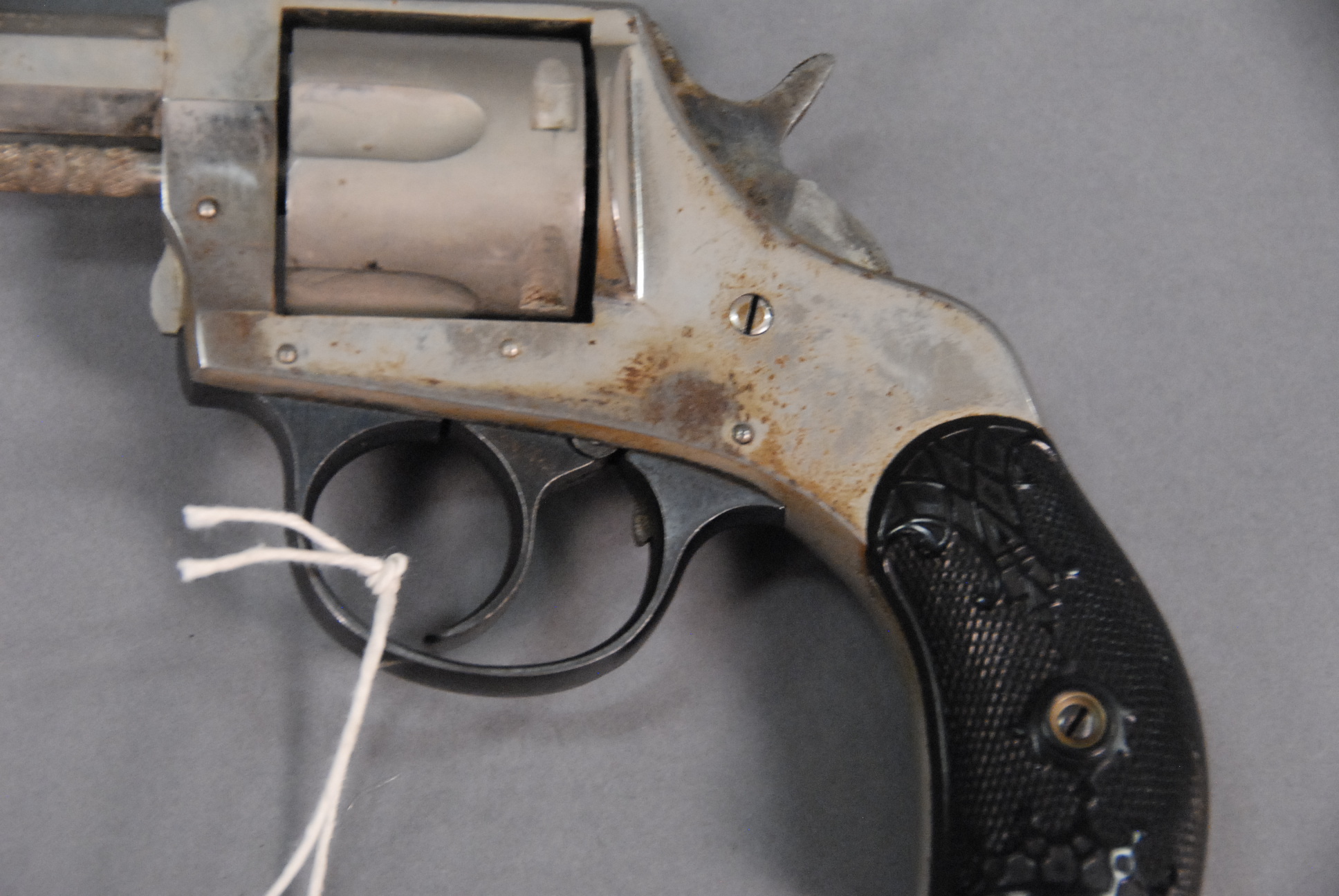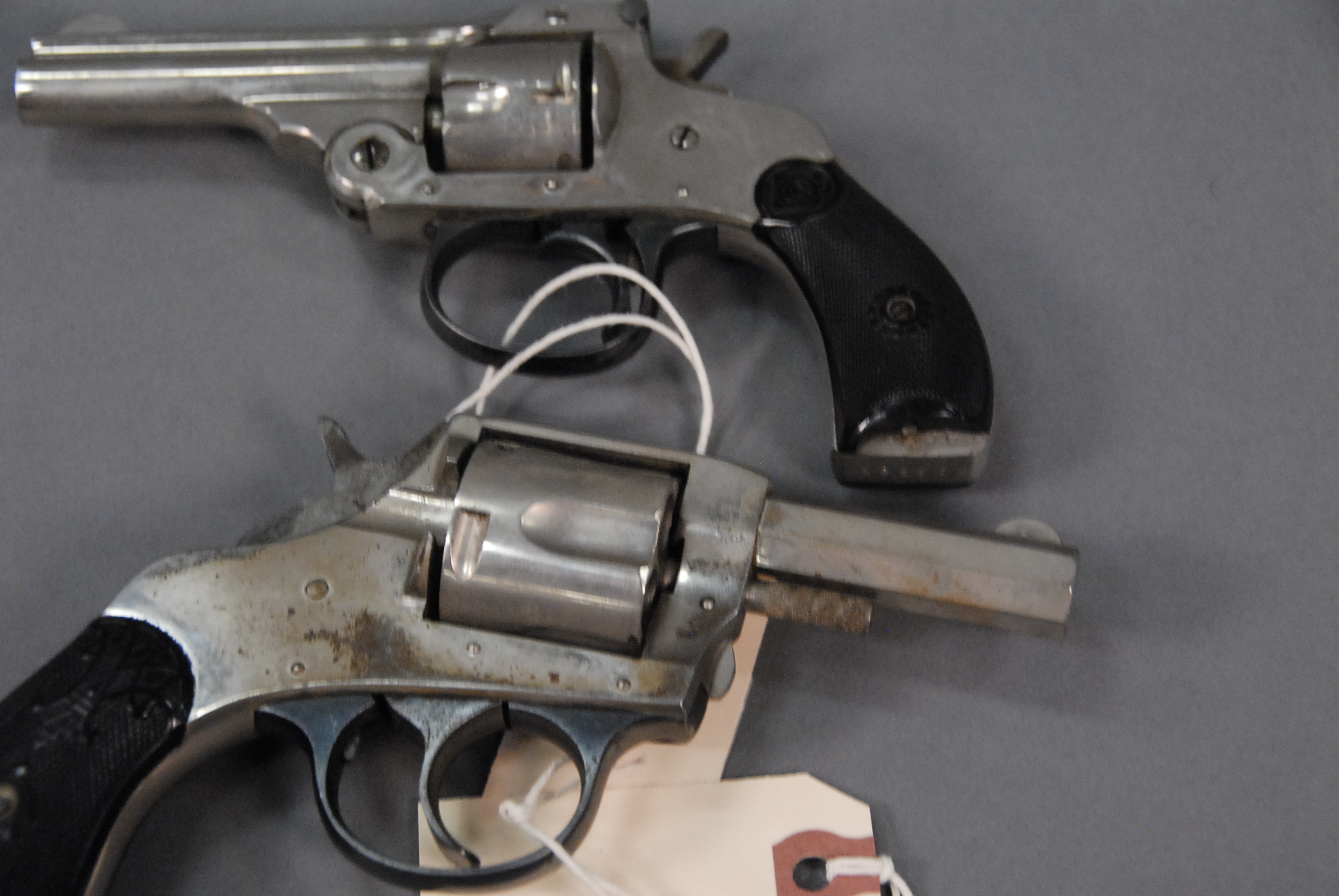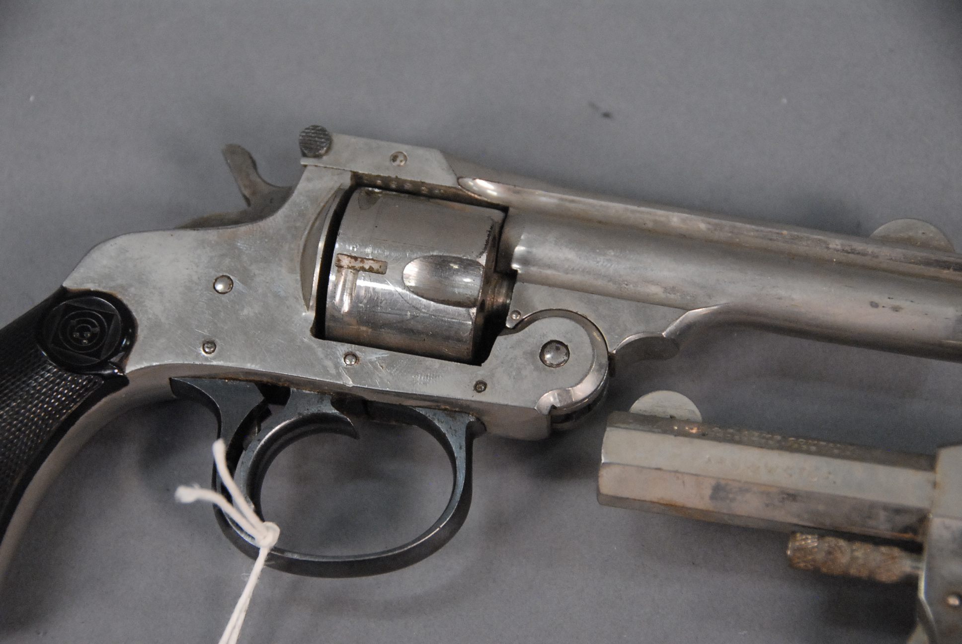 Lot 22: Two piece lot H & R The American double action revolver, 38 cal., barrel lg. 2 1/2, sn 183667, 314 and H & R Tip Up revolver, …