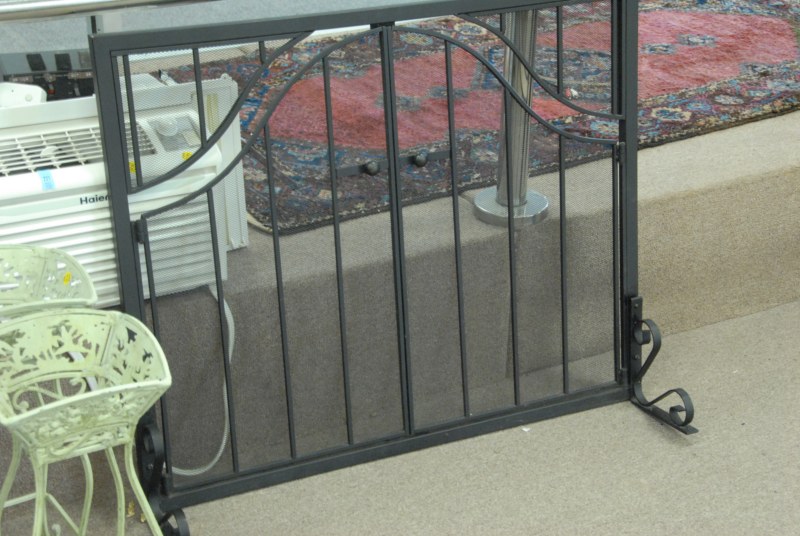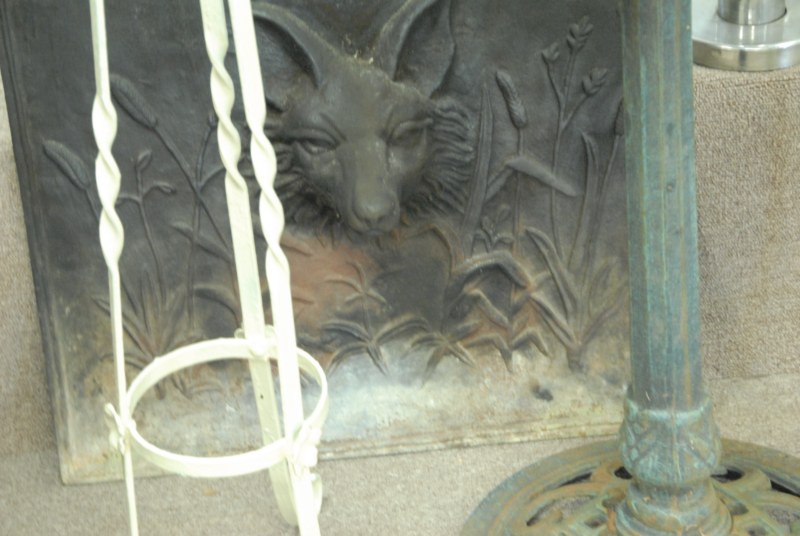 6 pc lot to include birdbath, fireback, fire screen, 3 metal plant stands.
