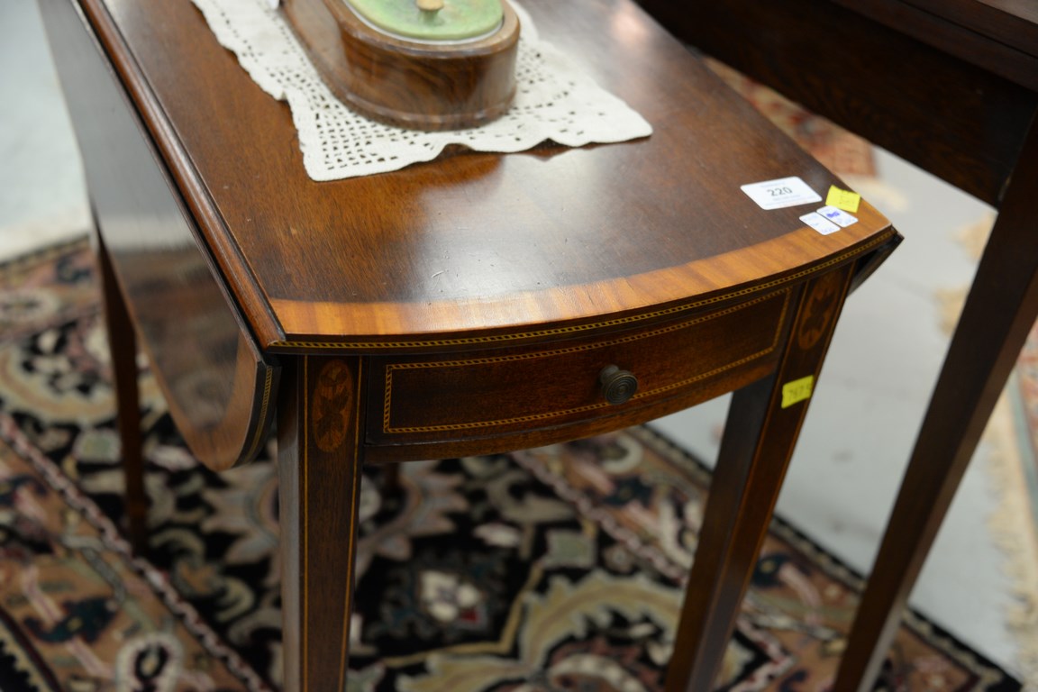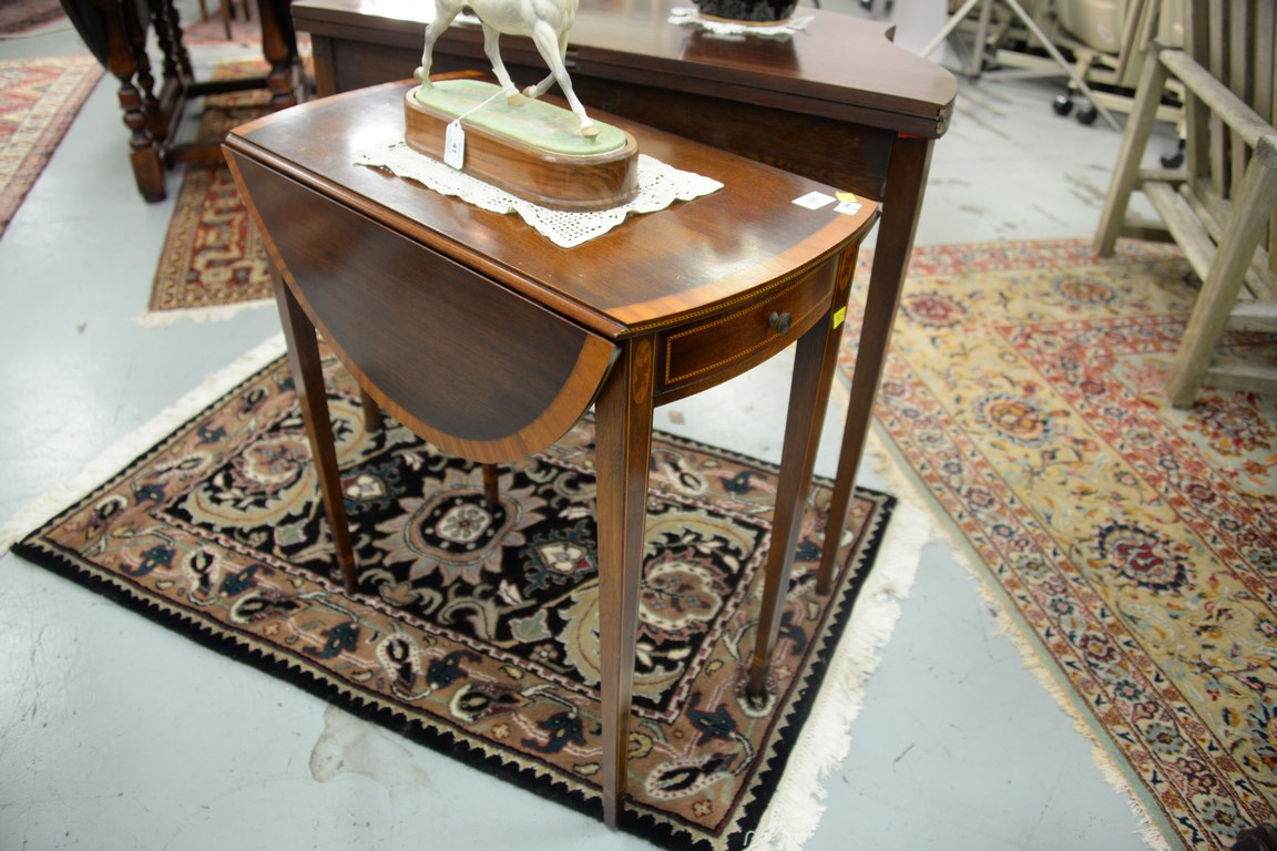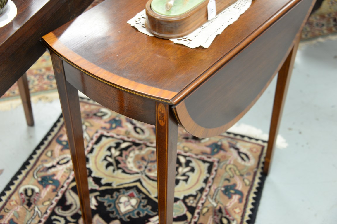 Charak mahogany inlaid Pembroke table, ht. 27 in. top: 13 x 26.