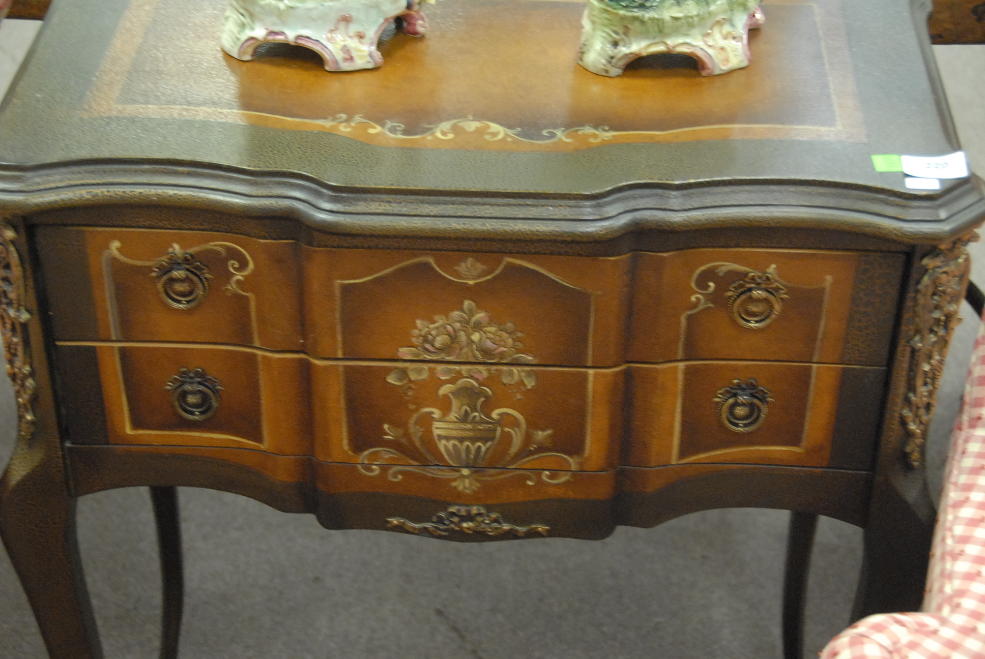 Contemporary two drawer commode with paint decoration, wd. 26 1/2in.
