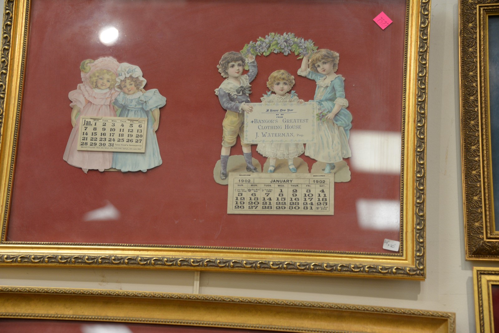 Eleven piece lot including framed advertising paper fans and Heinz pickle ads plus two fans and two vintage Valentines unframed. framed 12 x 13 to 15 x 22