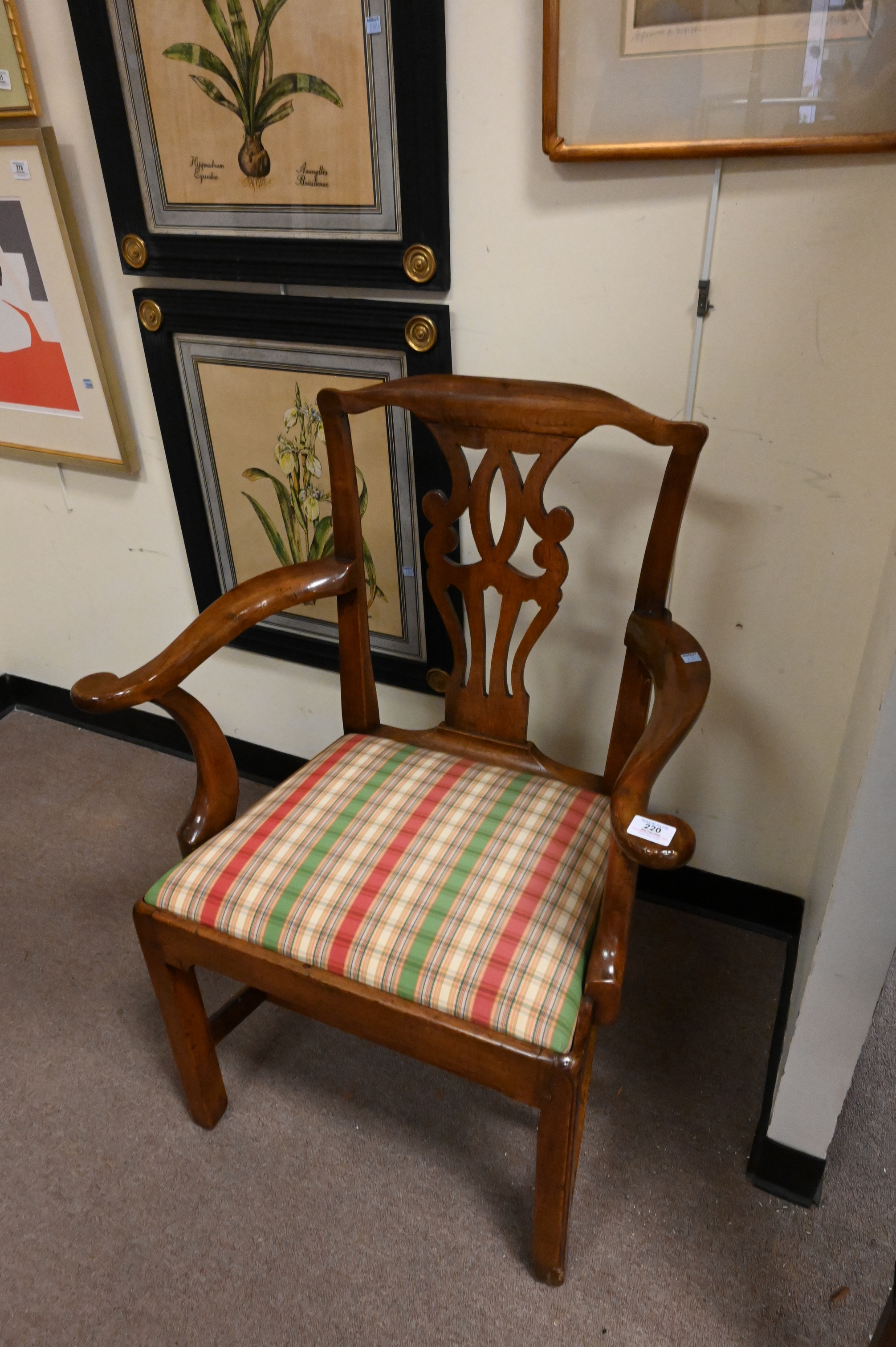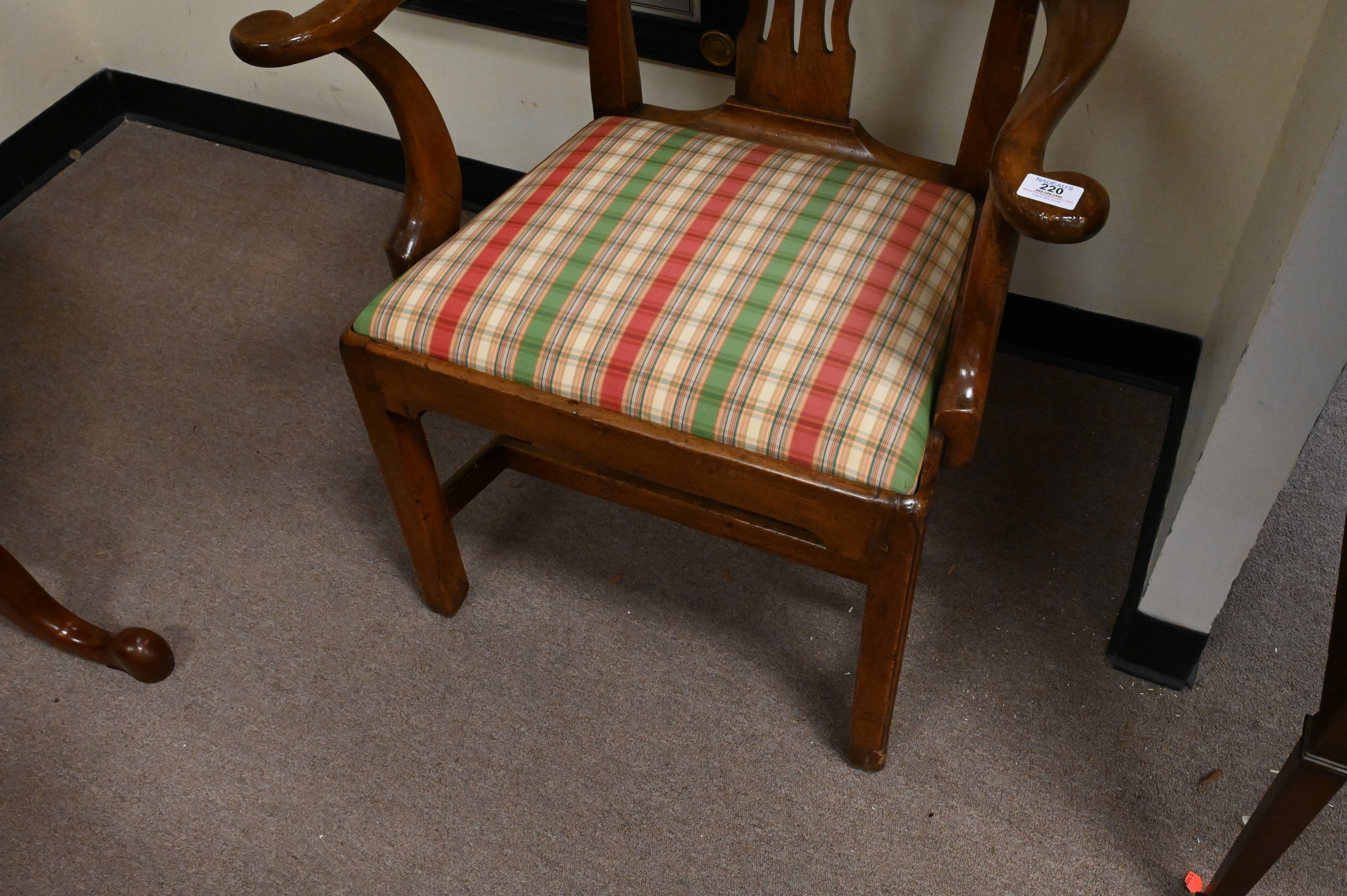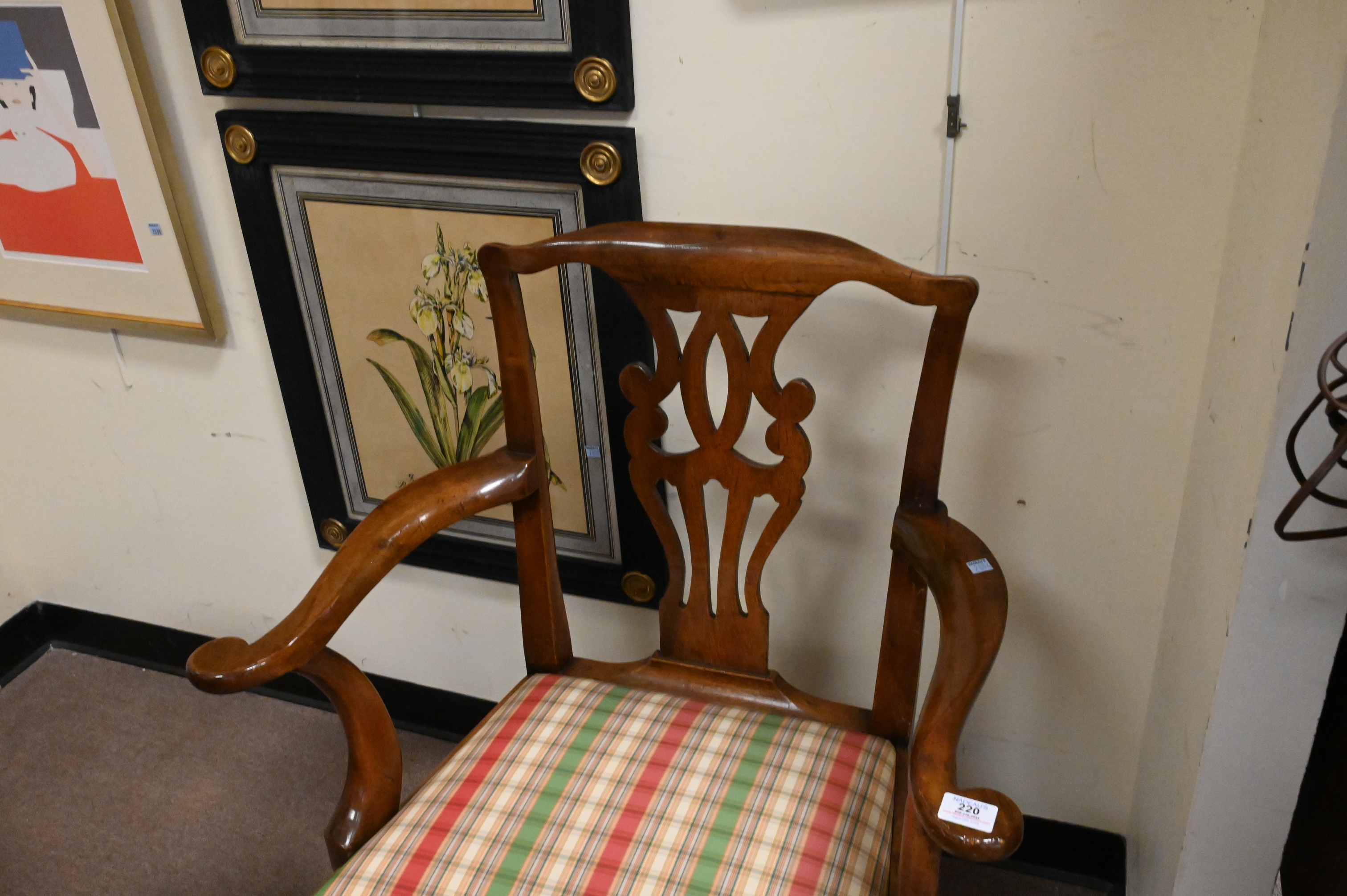 Georgian Mahogany Arm Chair, height 39 inches, width 28 inches.