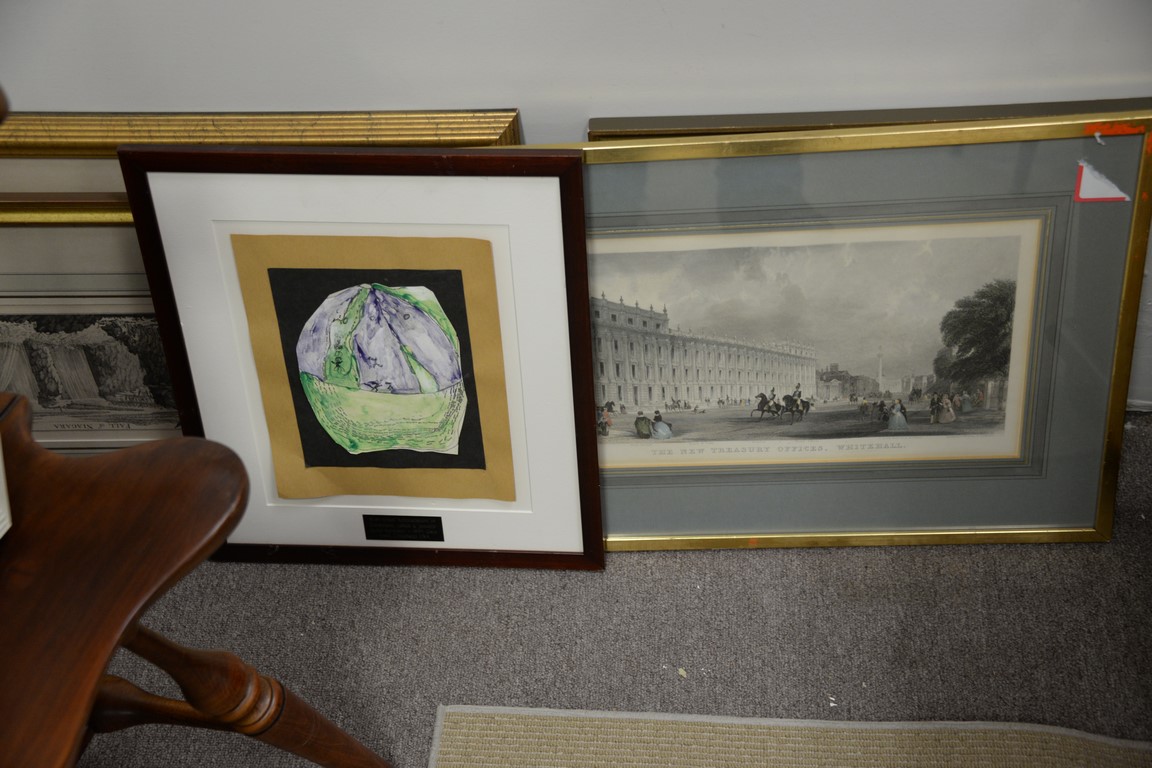 Group of eighteen lithographs and engravings including City of Cleveland, Funeral of Marshal Concha, New York Fish Market, View of Hell Gates, Upper Mississippi, View Near Conway New Hampshire, St. Joseph, New York Telephone Exchange, two spy prints, poster of Currier & Ives, Fall of Niagara, print of American Homestead Winter, Friendly Greetings, watercolor, NY Treasury Offices, and two photos of Curriers, sight size 5 1/2 x 6 to 13 x 17. Provenance: Property from Credit Suisse’s Americana Collection