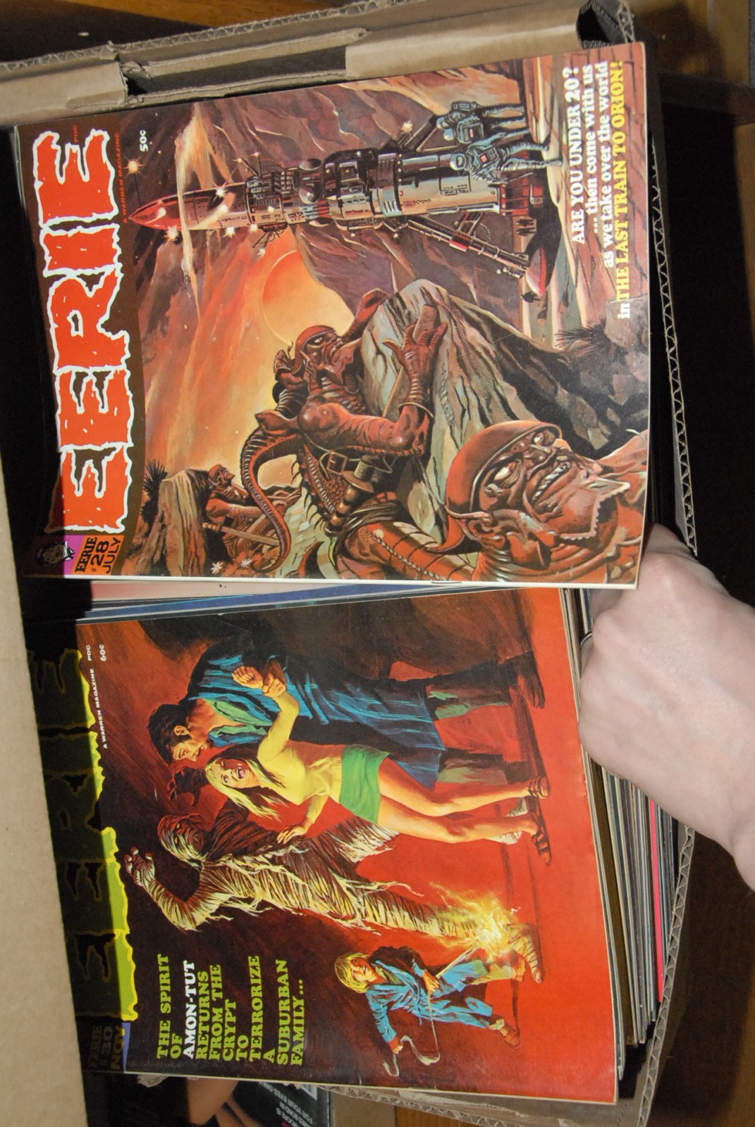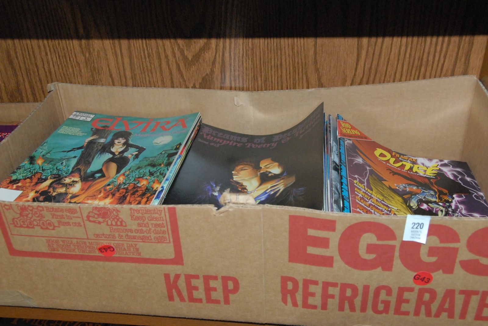 Group of magazines including Elvira, Dreams of Decadence, Chiller Theatre, Cult Movies, Dark side, Mankind, Twilight Zone, and Eerie.