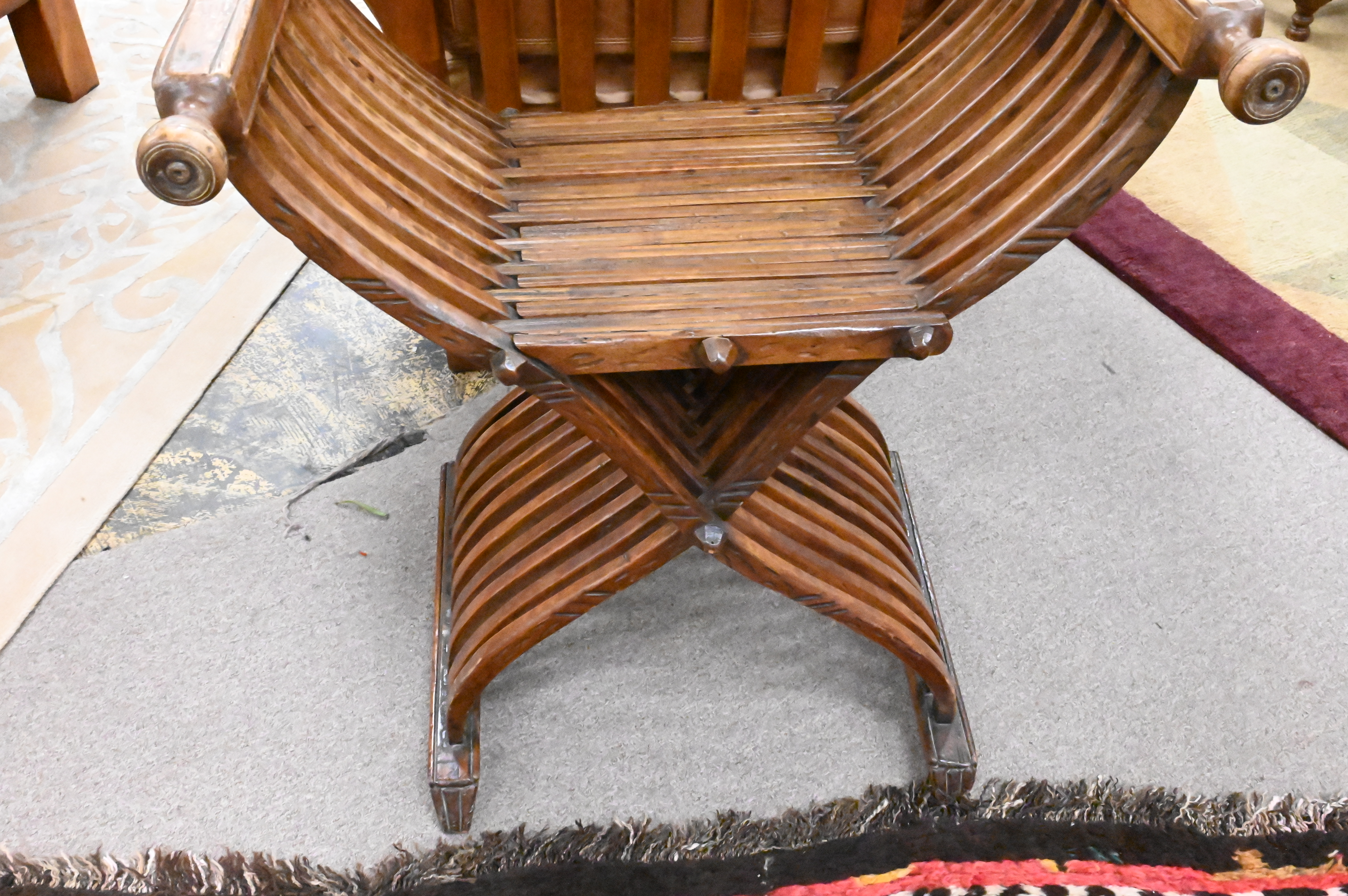 Italian Renaissance Style Oak Savonarola Chair, 19th century or earlier, height 28 1/2 inches, width 26 1/4 inches.