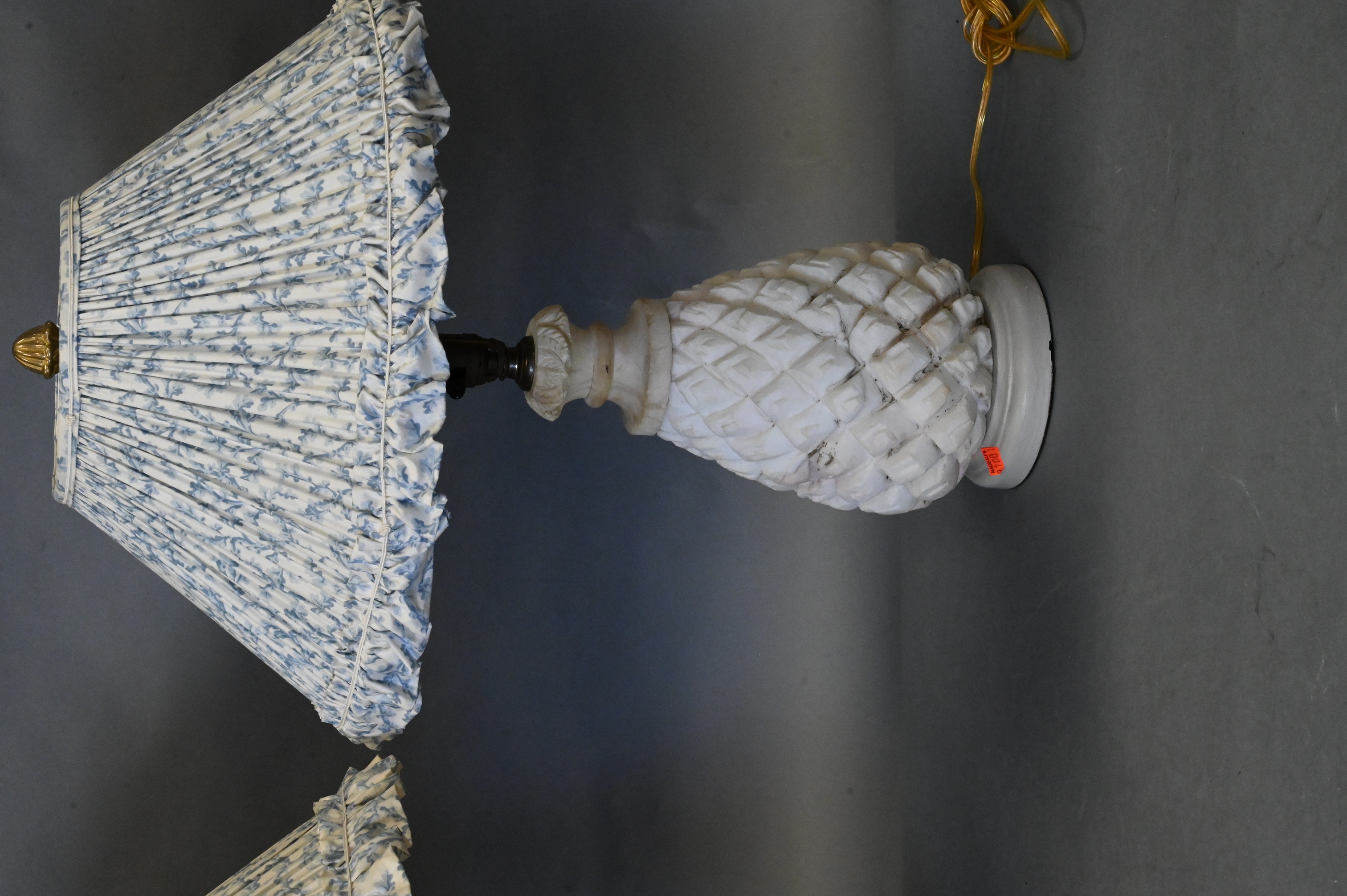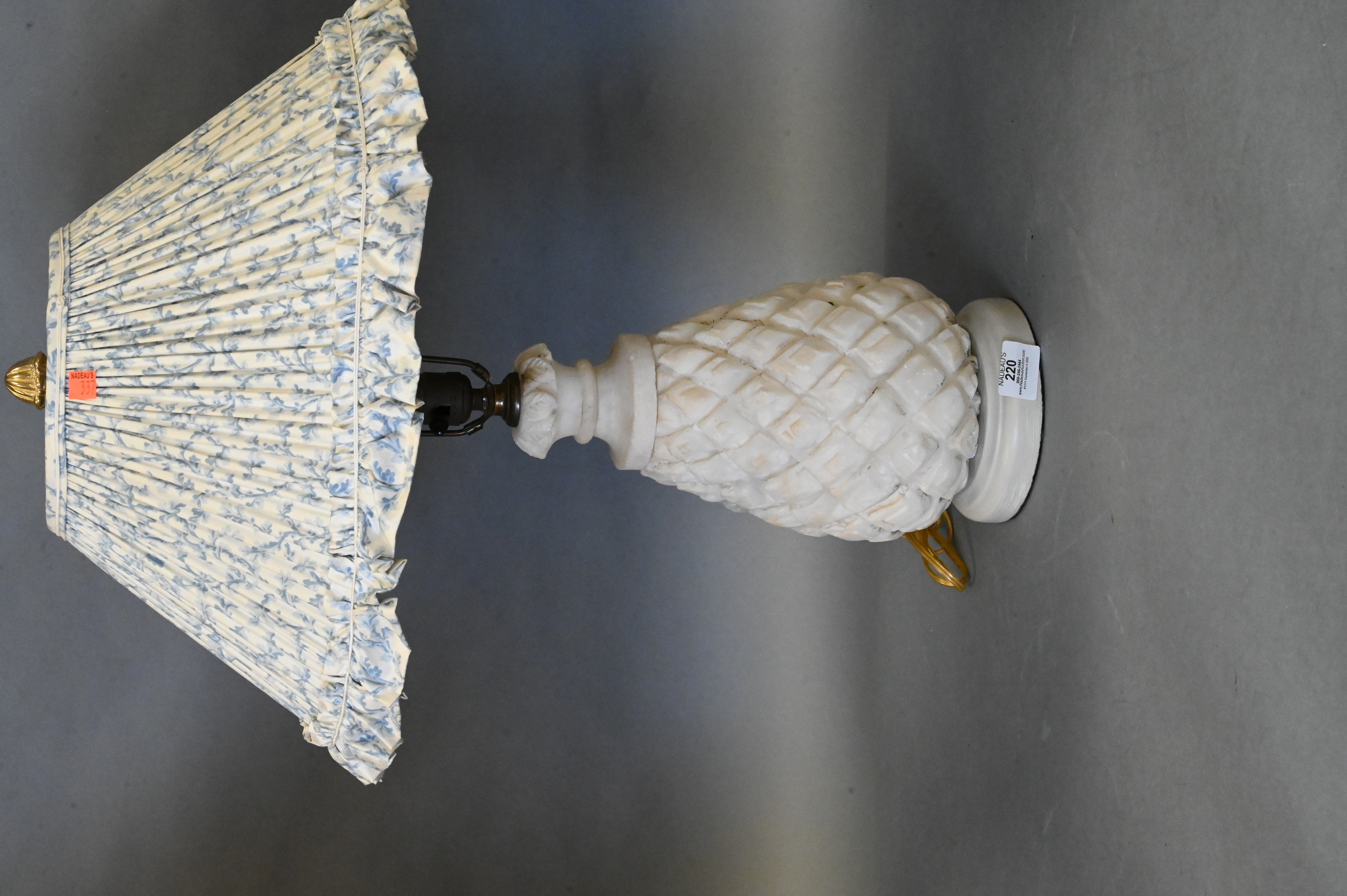 Lot 220: Pair of Carved Alabaster Lamps in the Form of Pineapples or Pine Cones