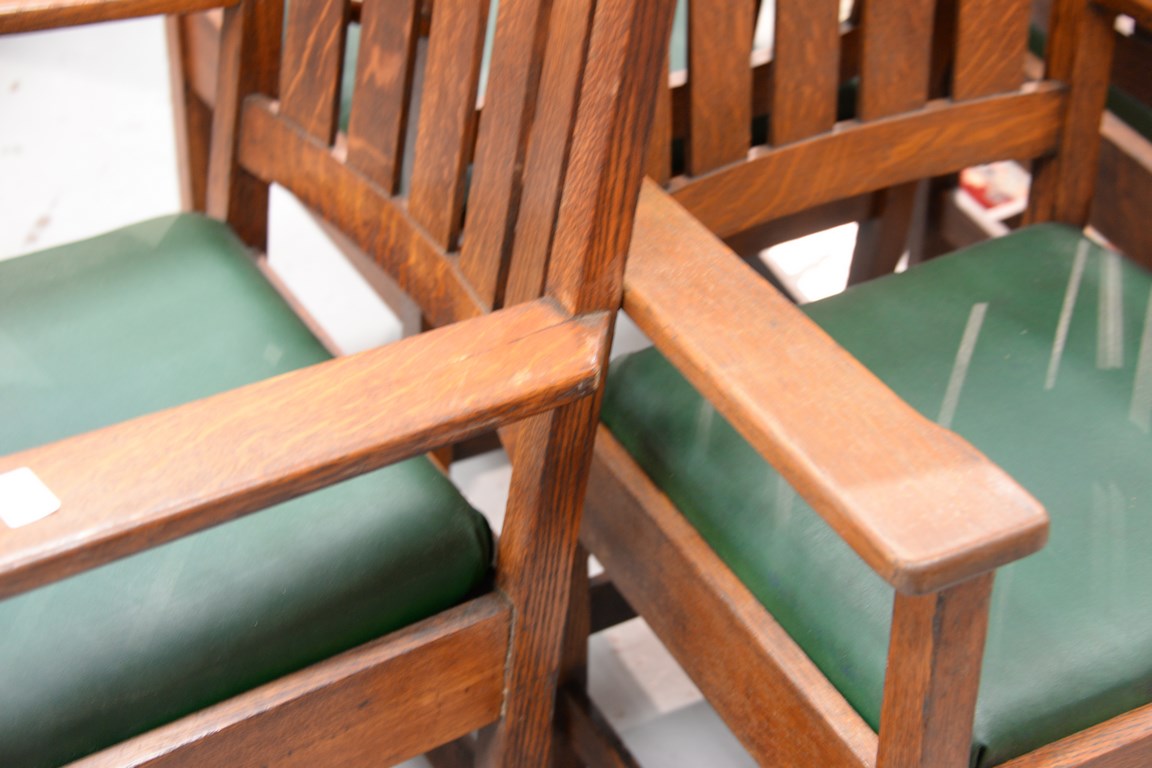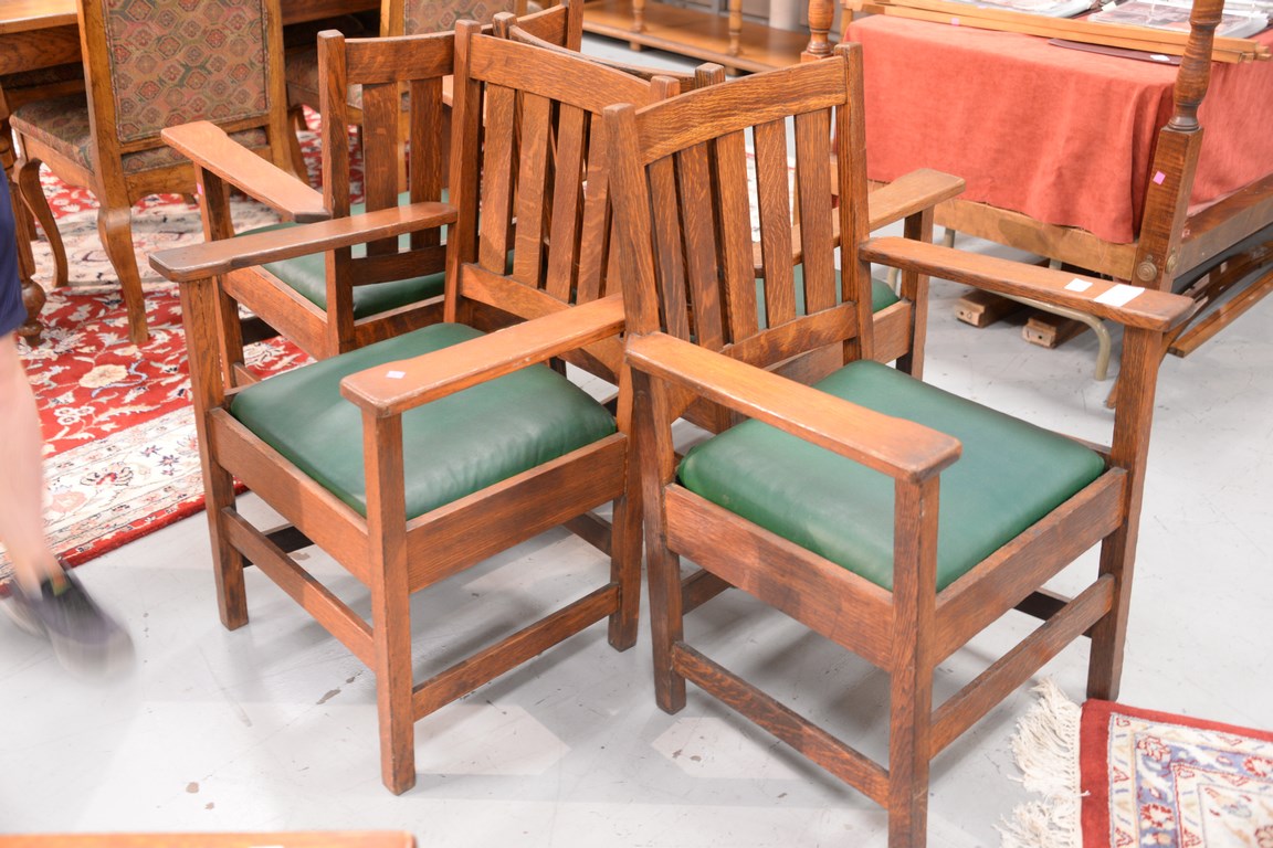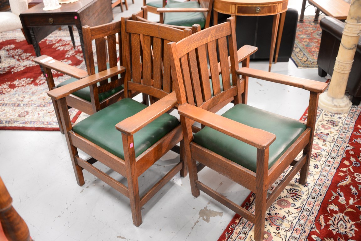 Set of four Mission oak armchairs signed Quaint Stickley Bros.