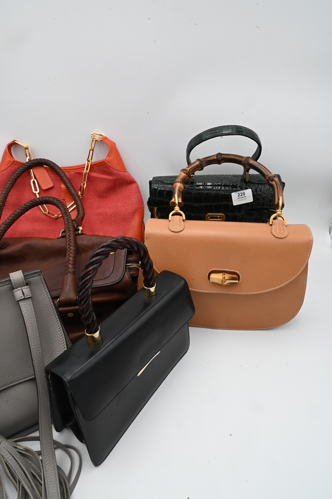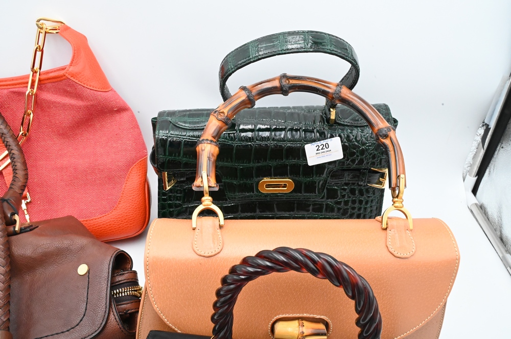 Lot 220: Six Leather Handbags/Purses, to include Stubbs & Wootton, Genny, Cole Haan, Gucci, J. McLaughlin, along with Muska.