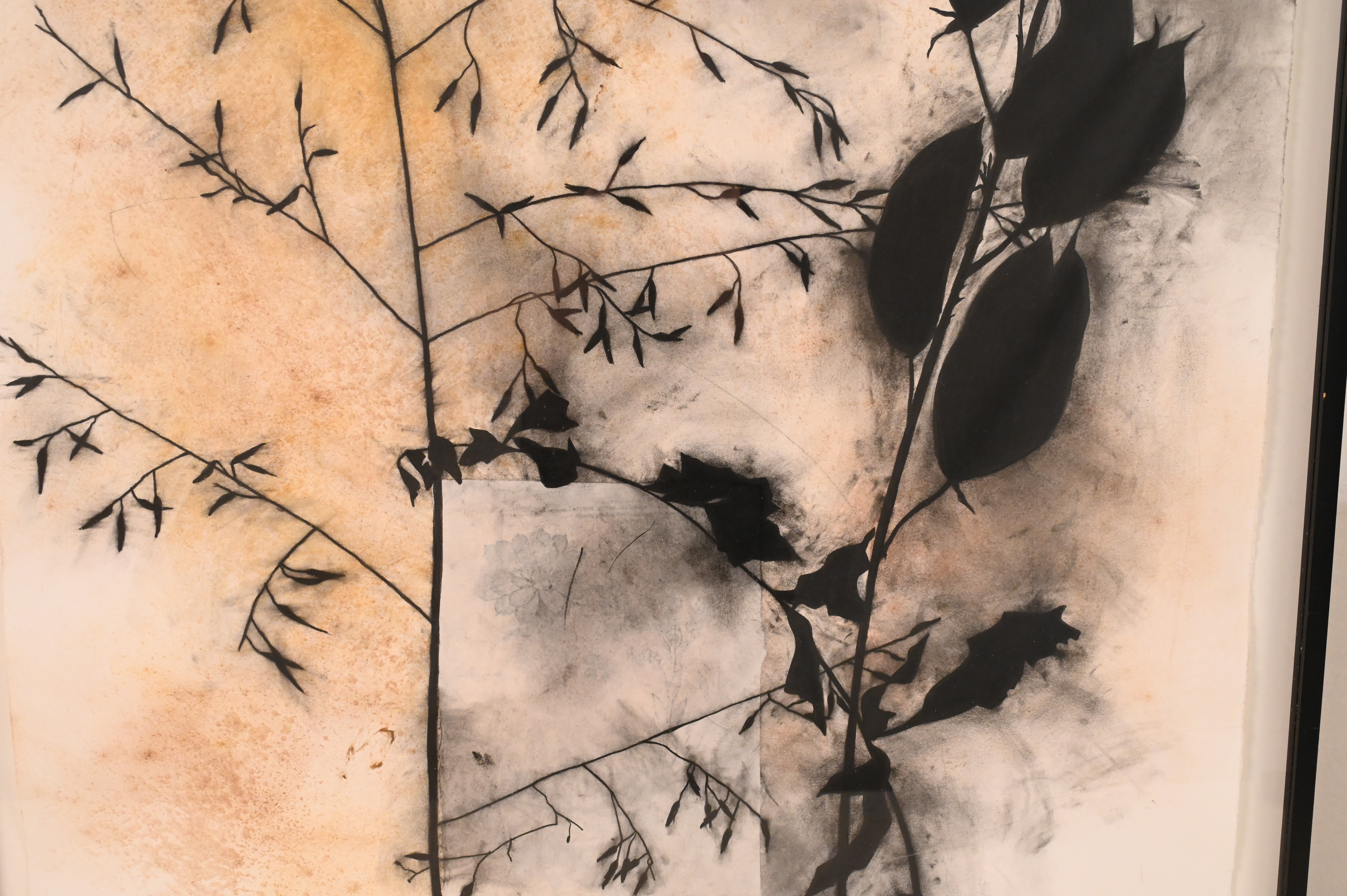Mixed media collage, charcoal, earth, moss on paper