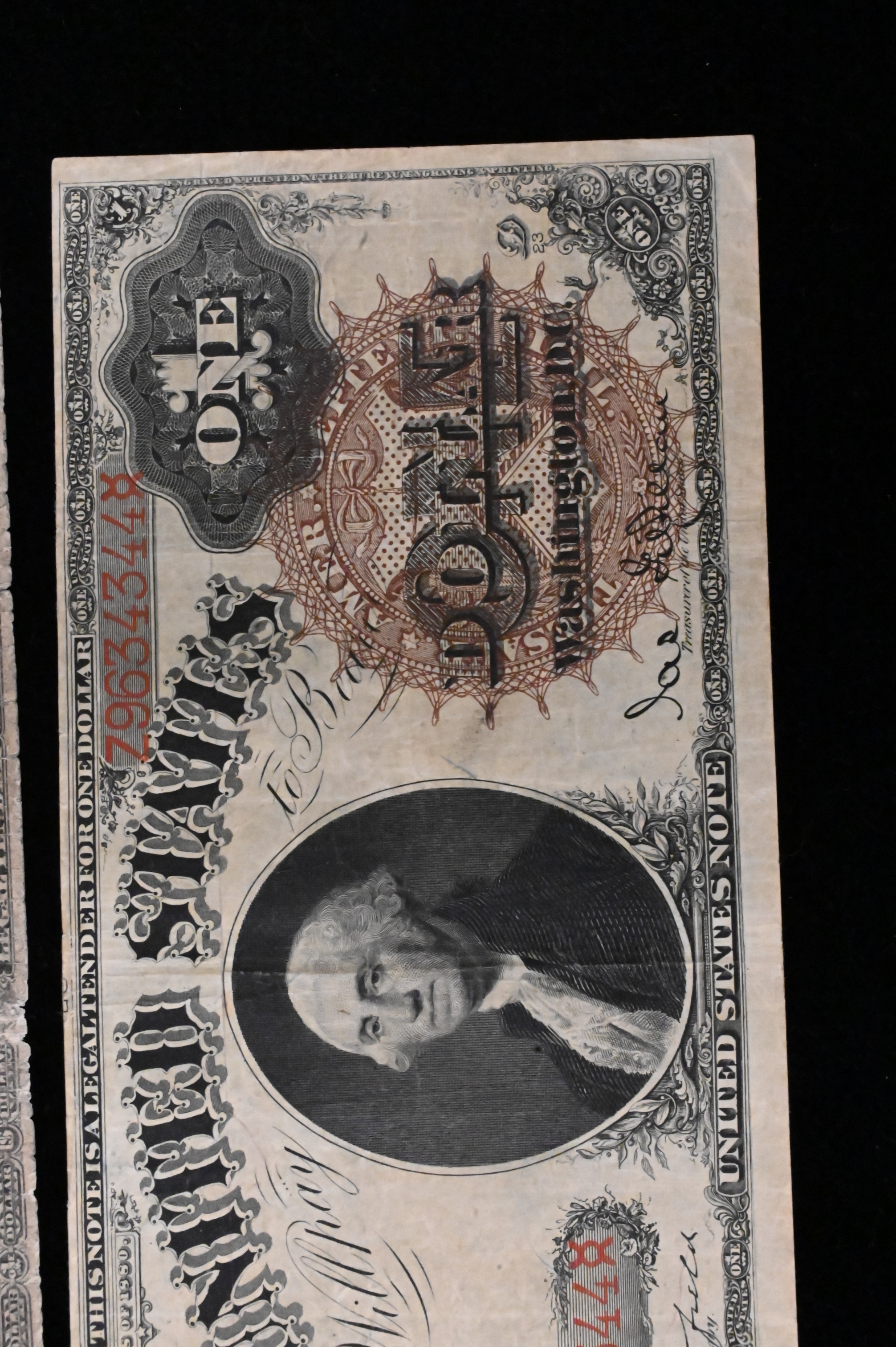 Two Notes, to include one treasury note FR349 and one legal note FR28, both are $1 dollar denomination