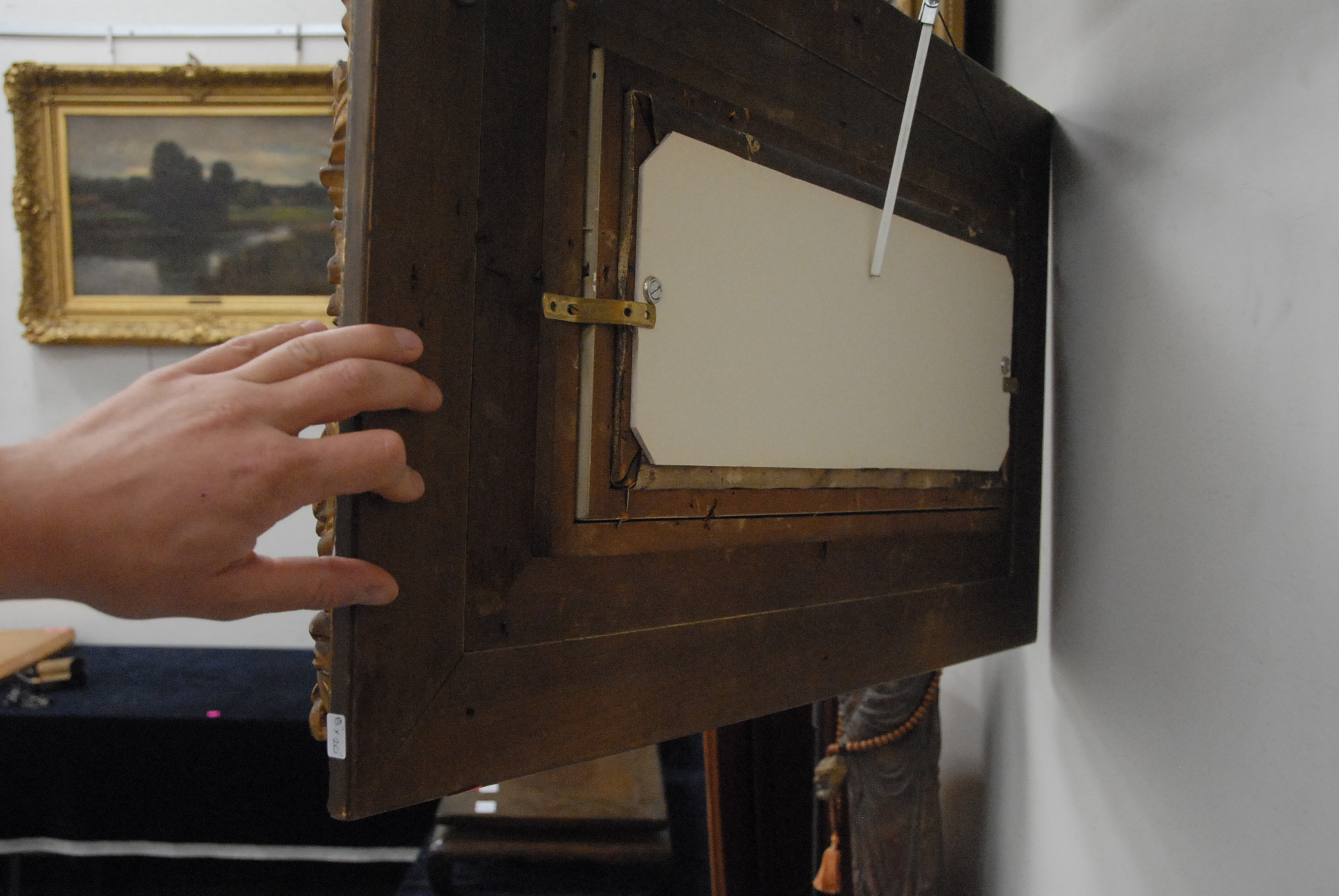 Lot 220: Walter Clark 1848-1917 HOUSE ON LAKE’S EDGE oil on canvas signed lower right Walter Clark 8 x 20