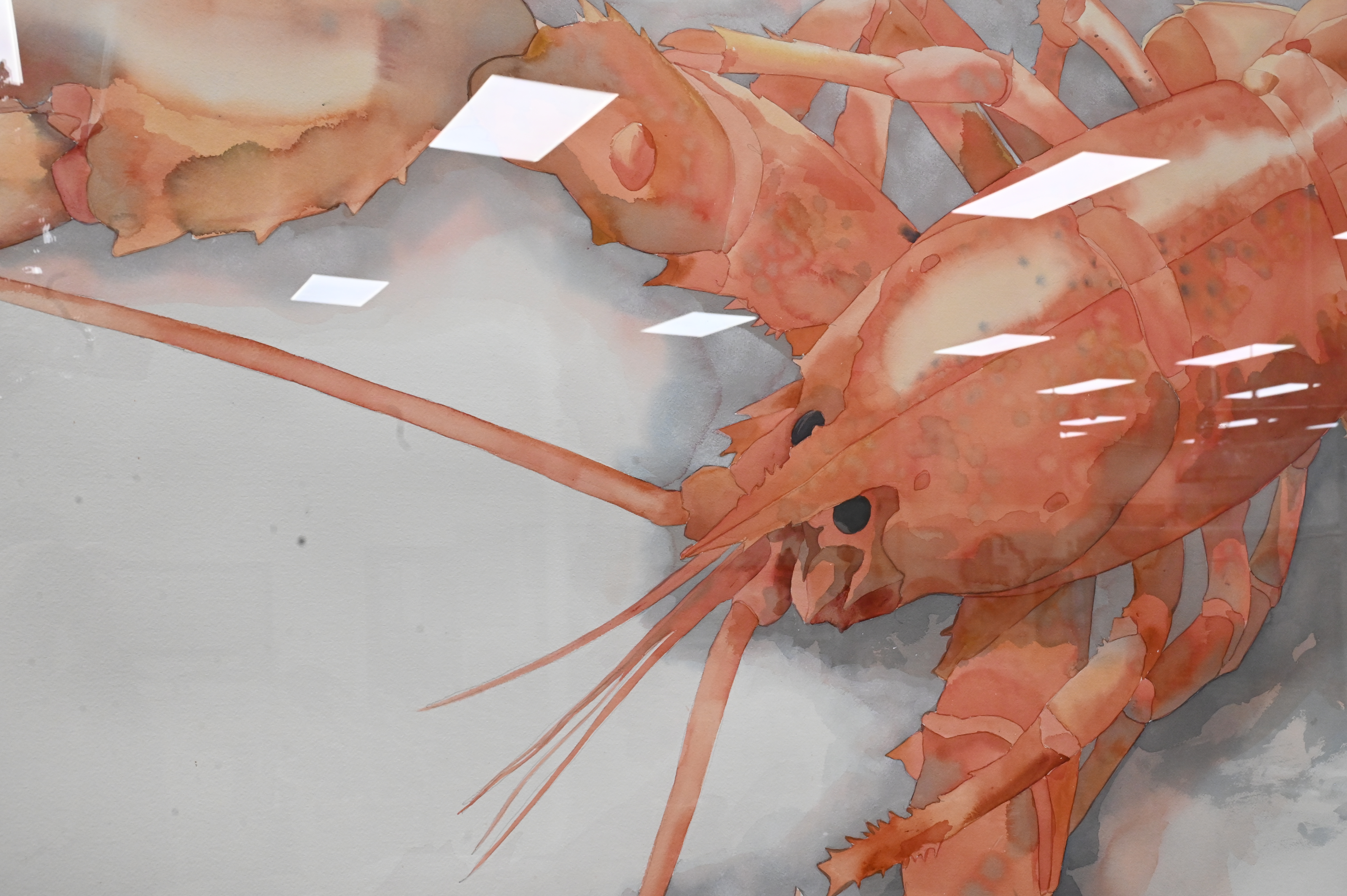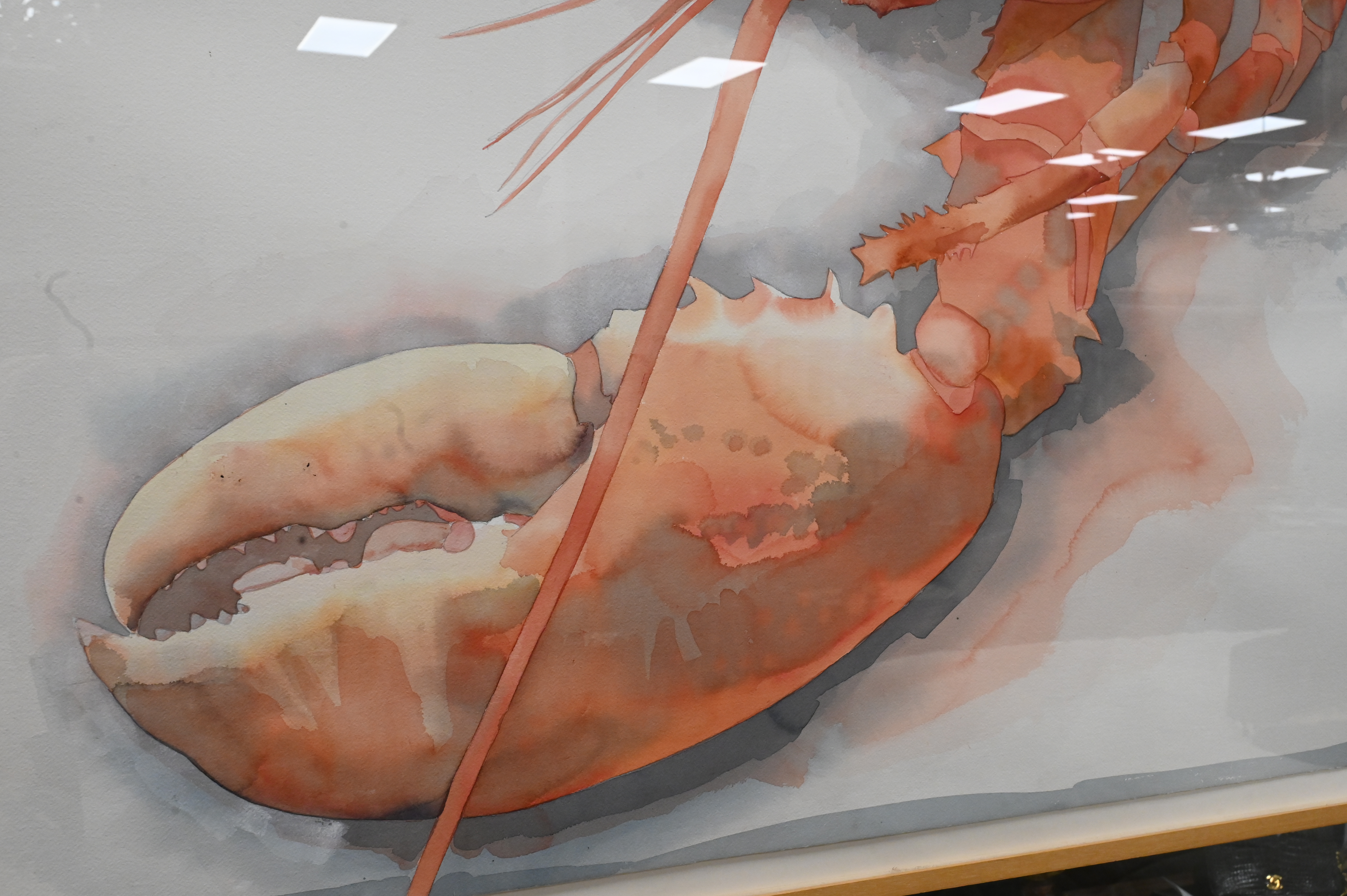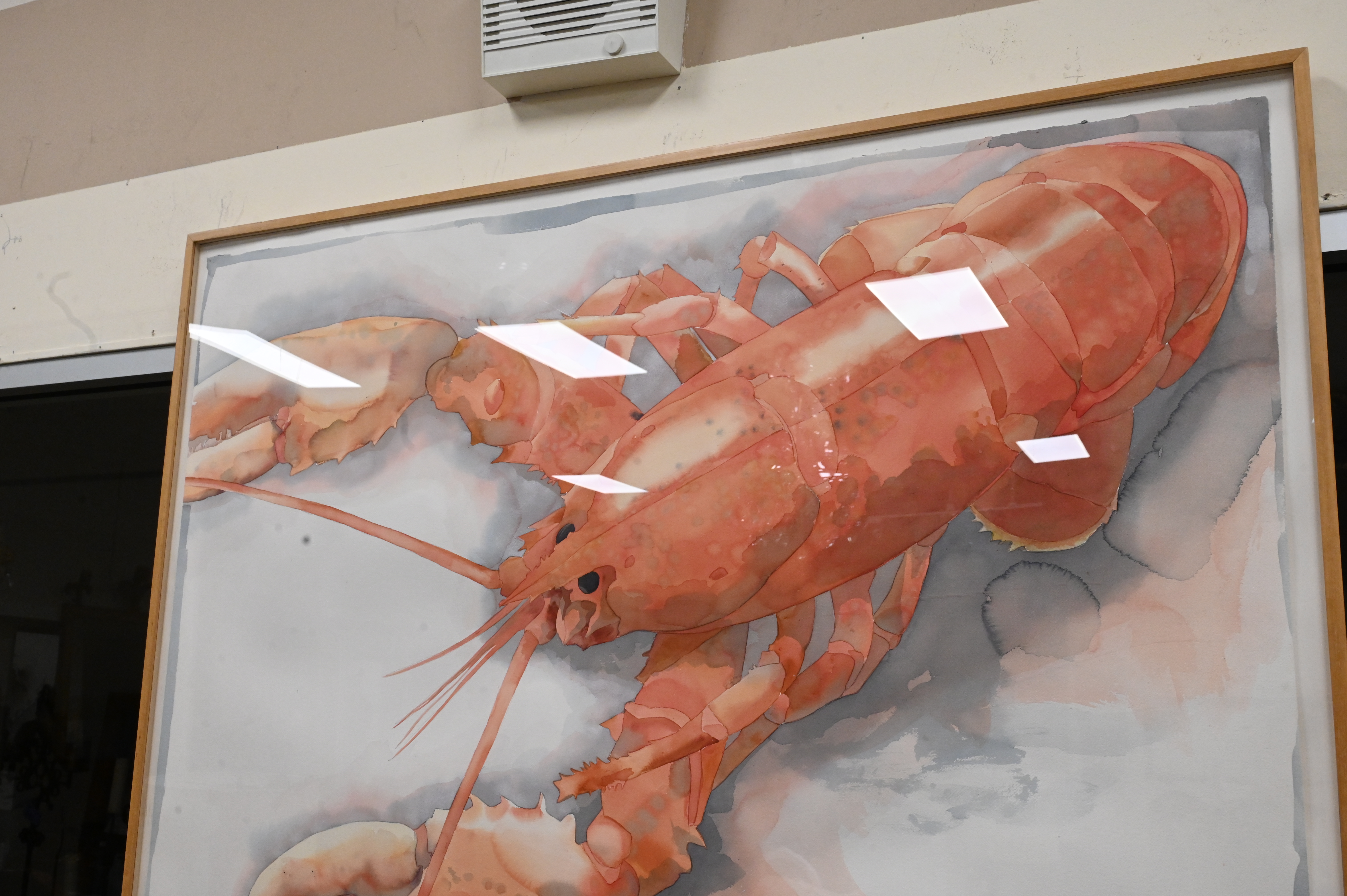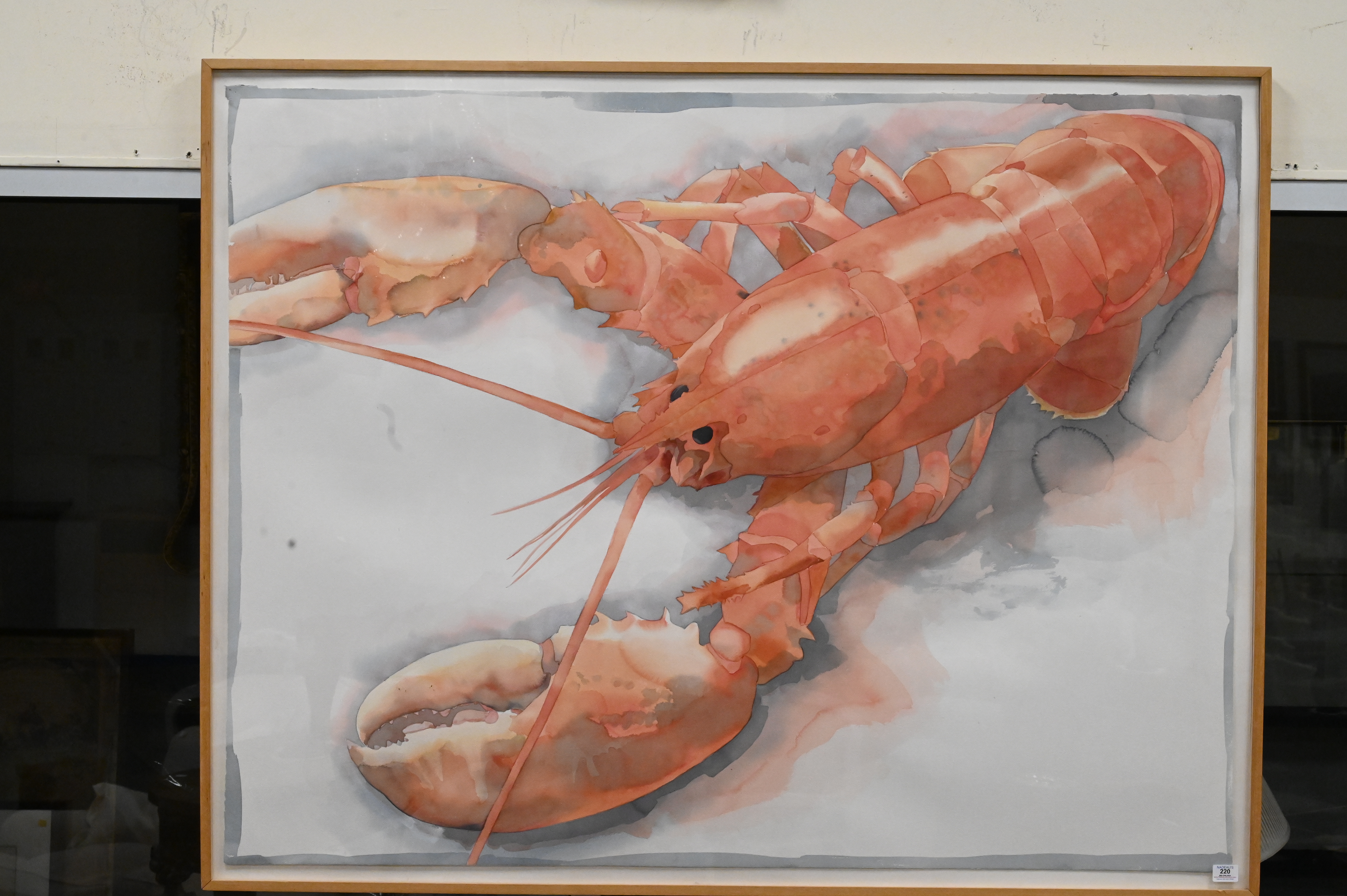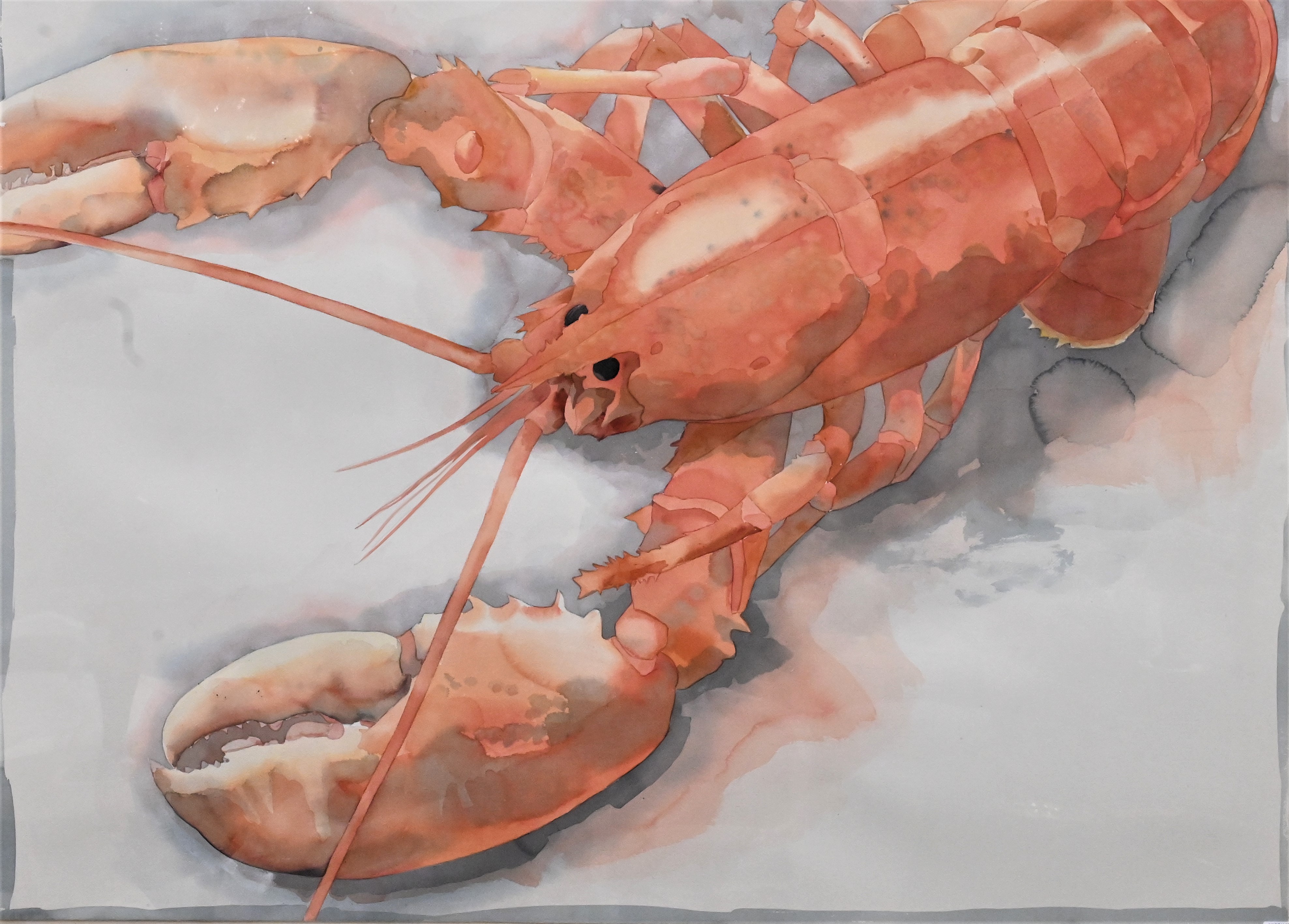 William G. Garbe (American, 1948 – 1989), watercolor on paper, red lobster, untitled, labels on back, 39 1/2″ x 59 3/4″.