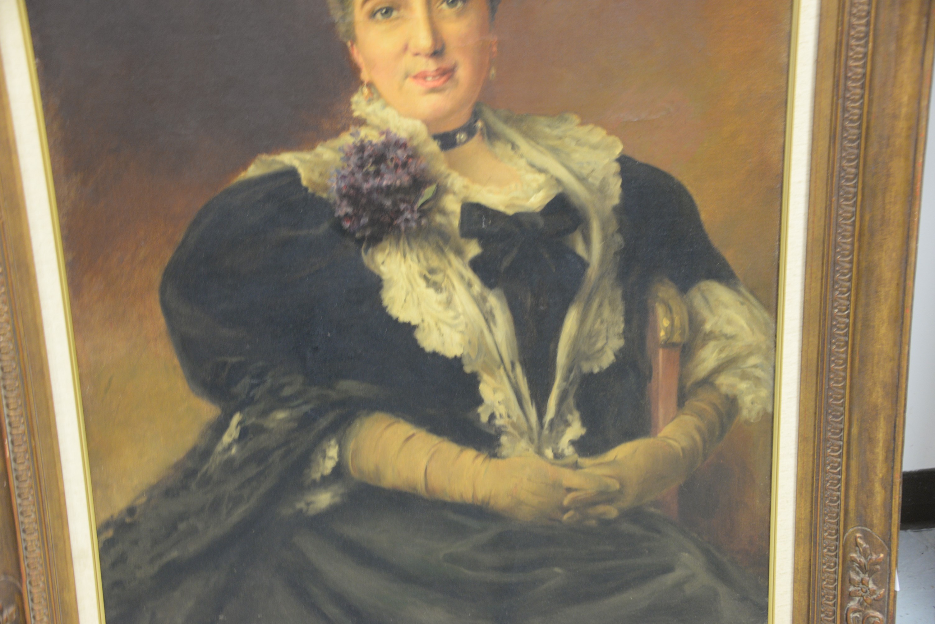 Lot 220A: Theobald Chartran 1849-1907 Portrait of a Woman oil on canvas signed top right C.J.B. d’apres Chartran 1895 40 x 30
