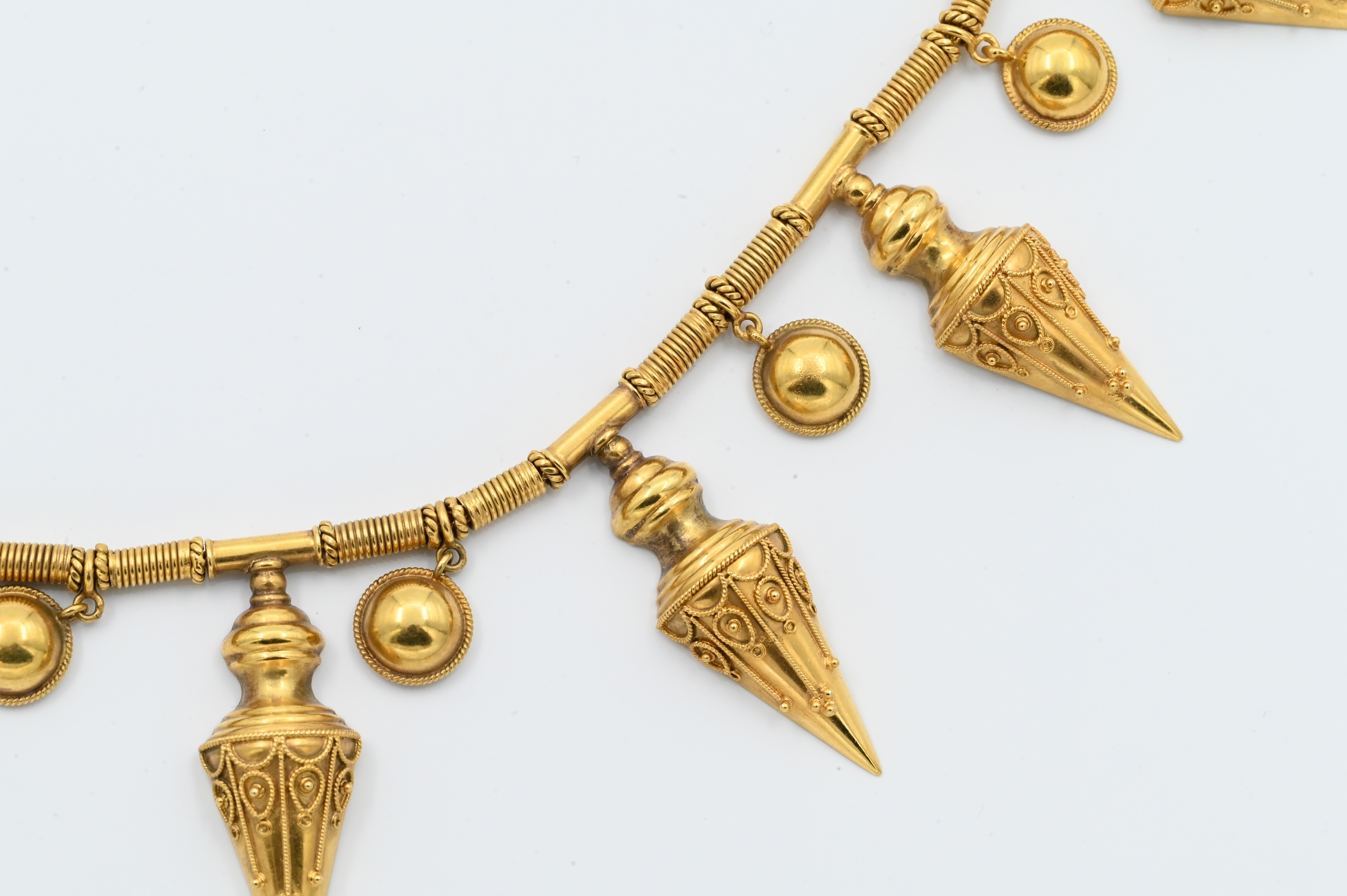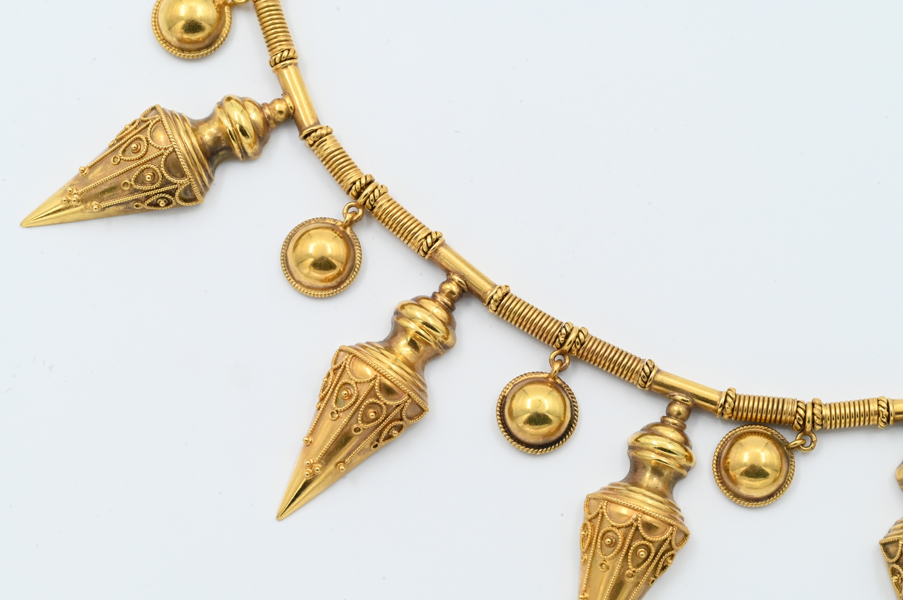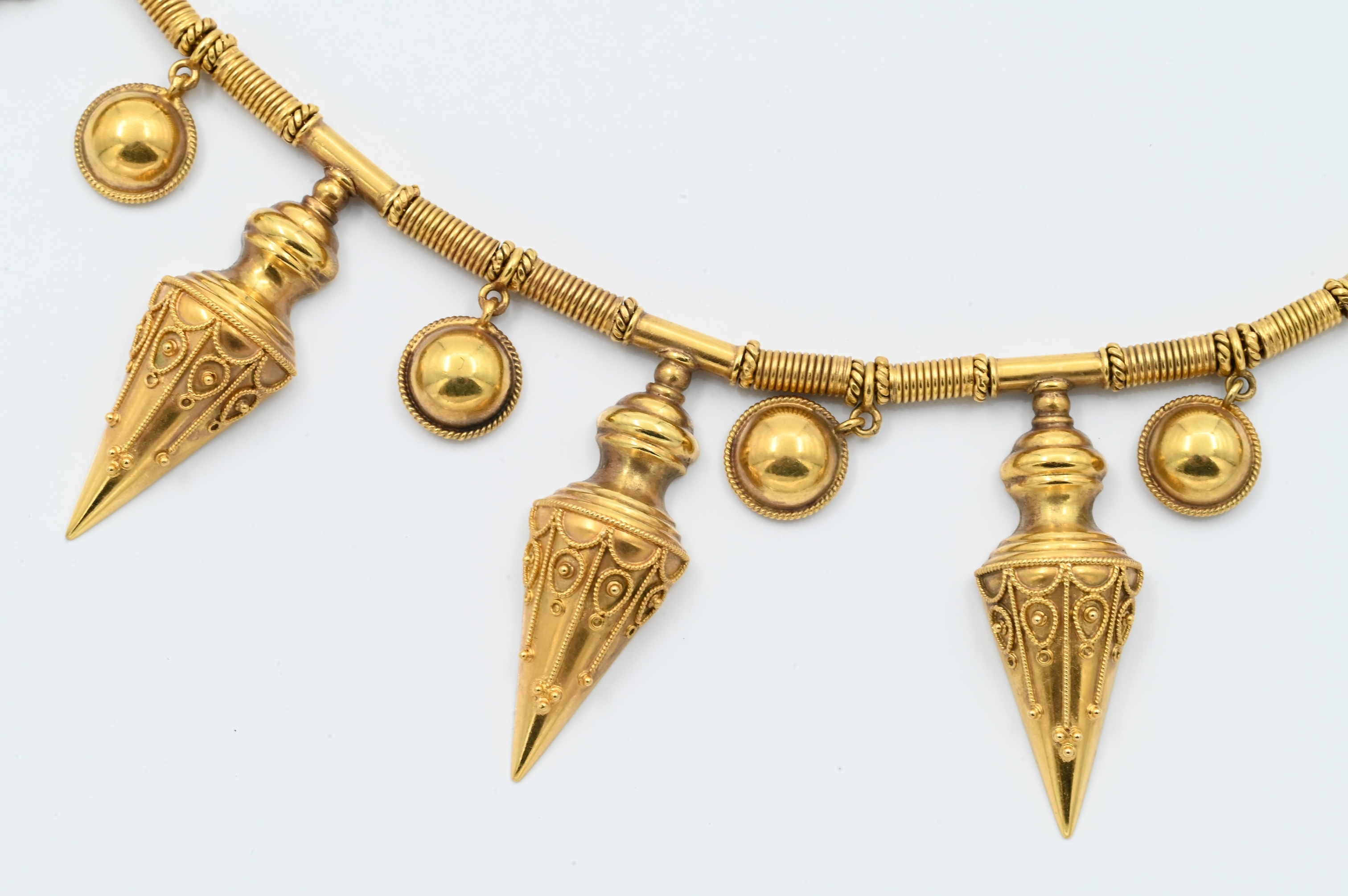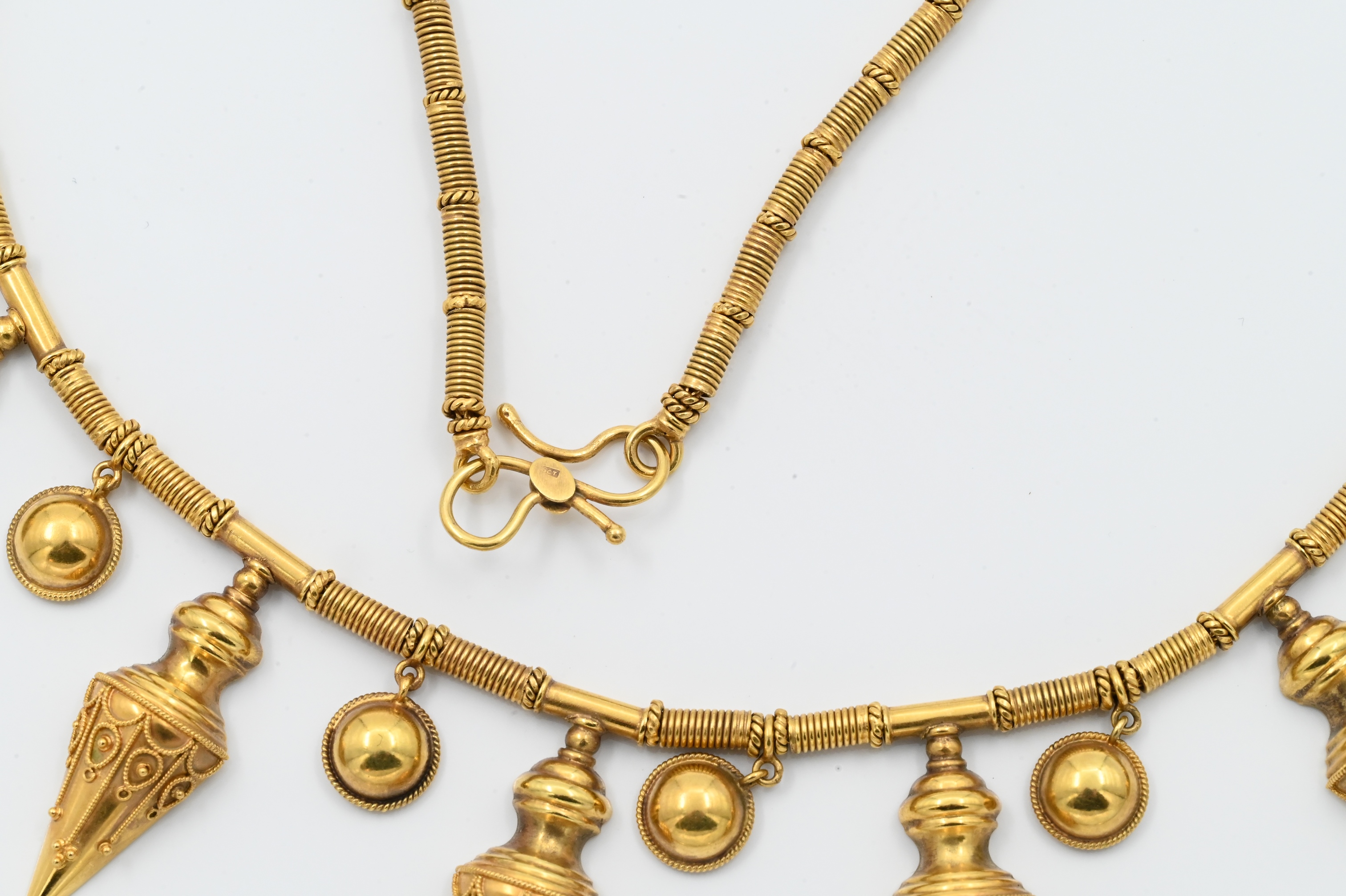 Lot 221: 15K Yellow Gold Necklace having Circles and Spears